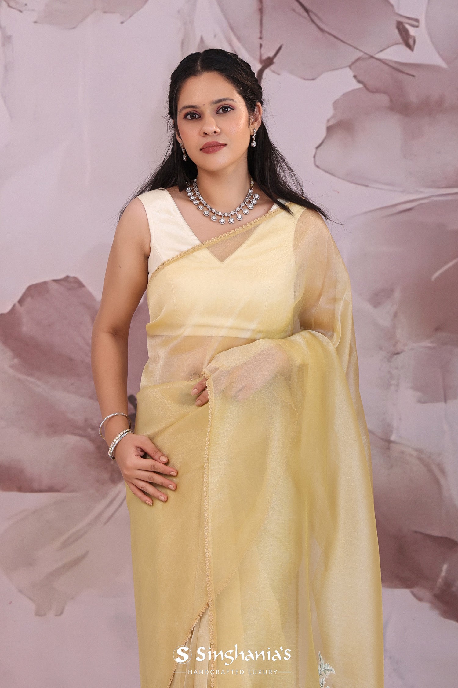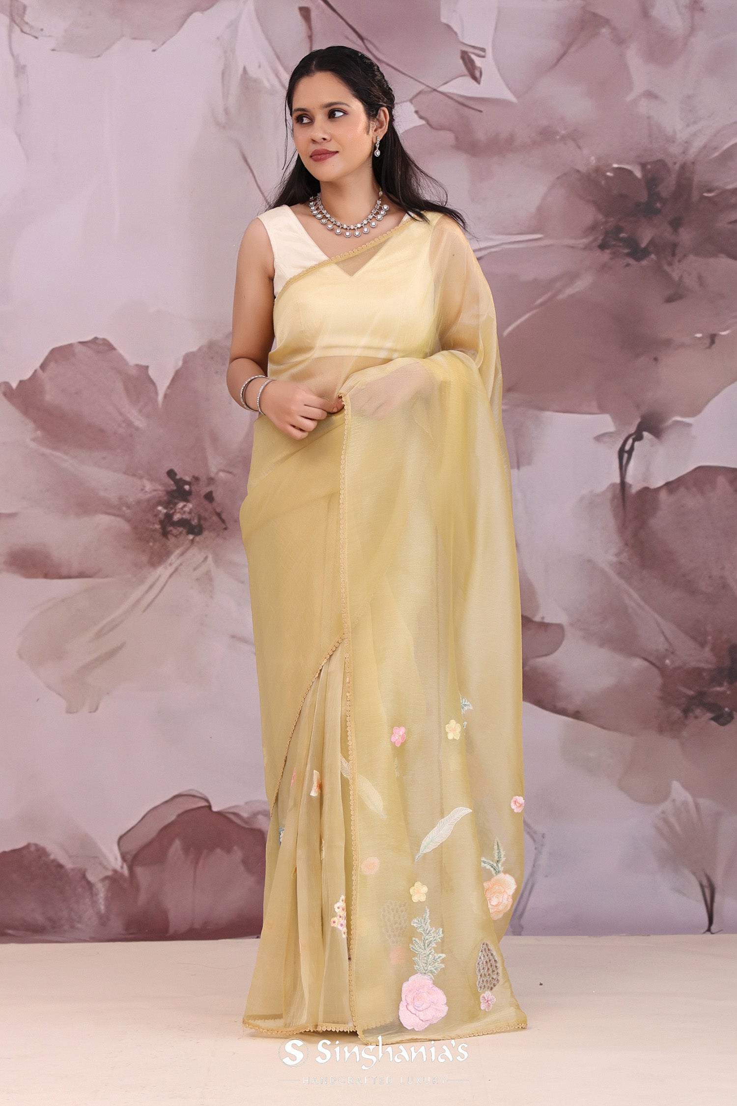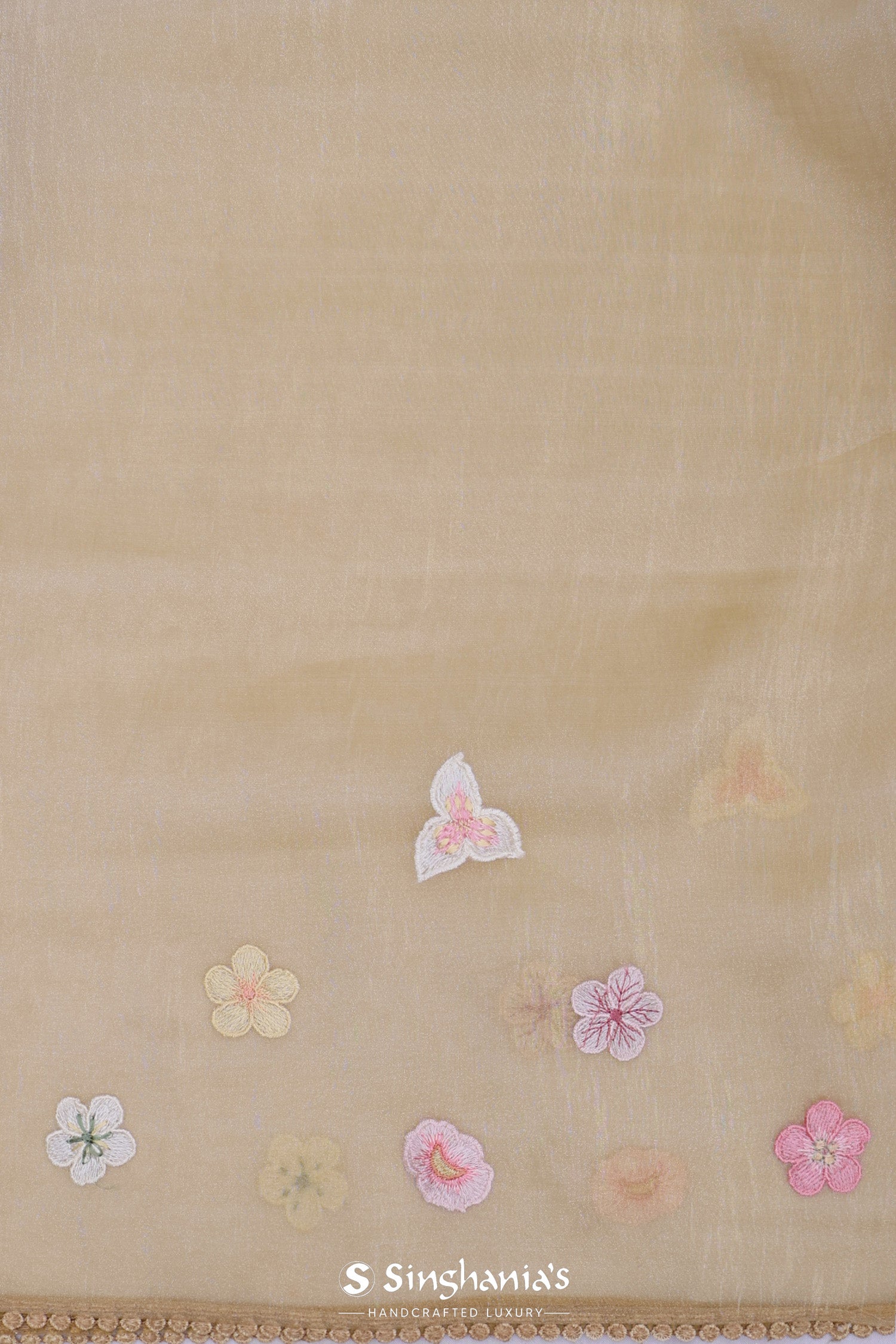 Light french beige organza saree embroidery work forming various floral pattern which is adding the charm to overall look.