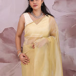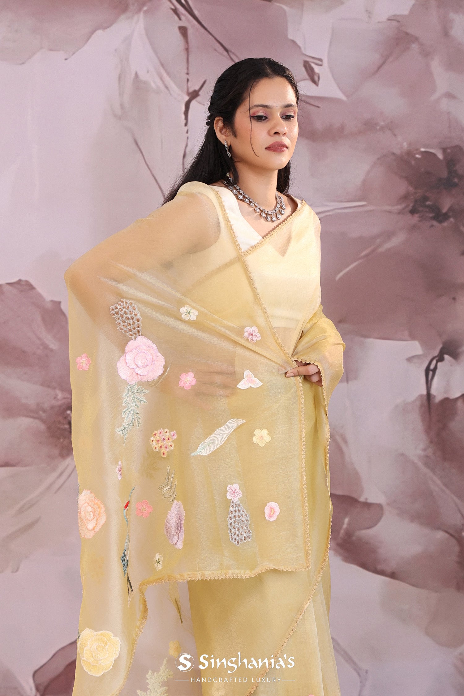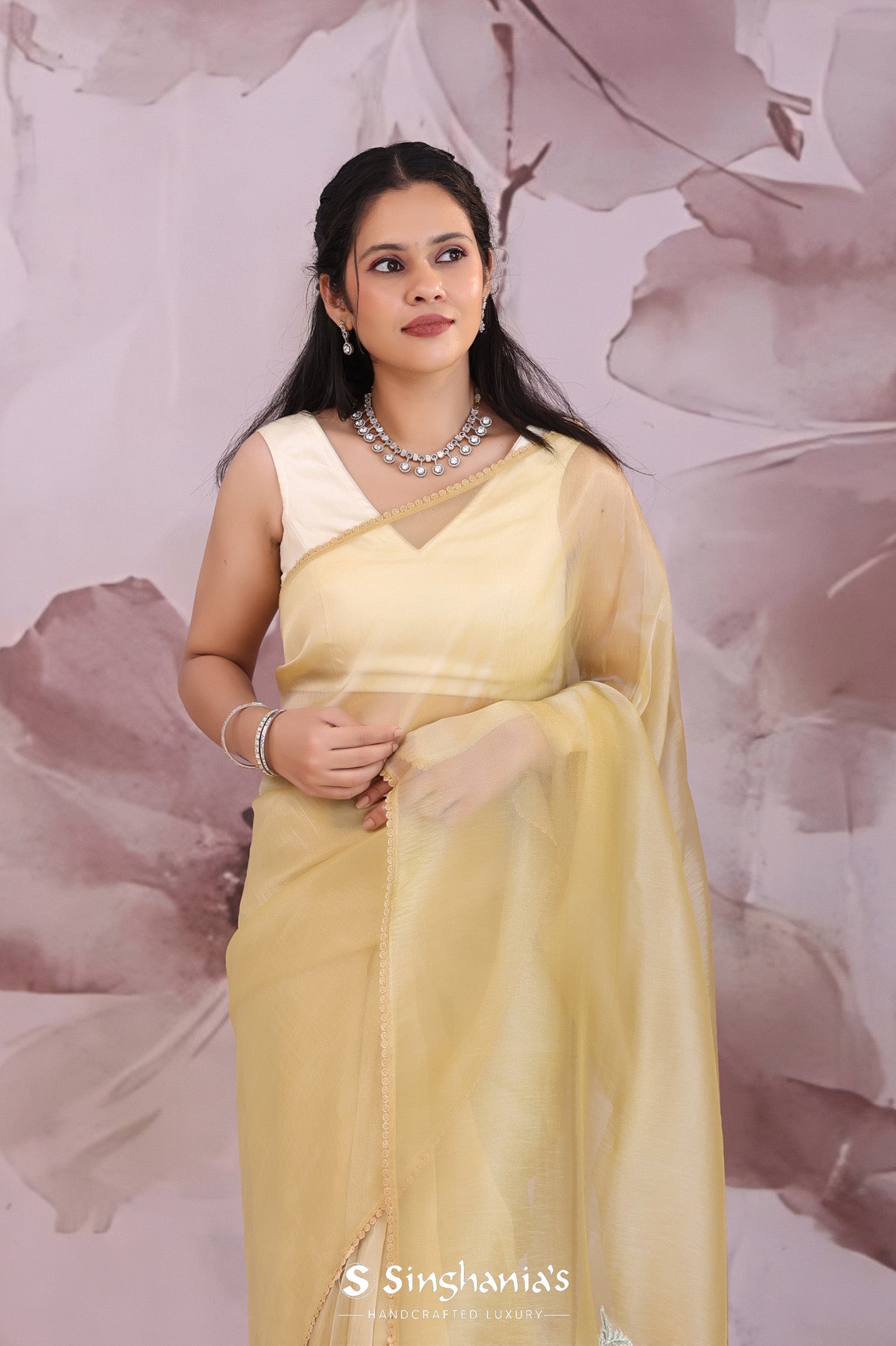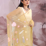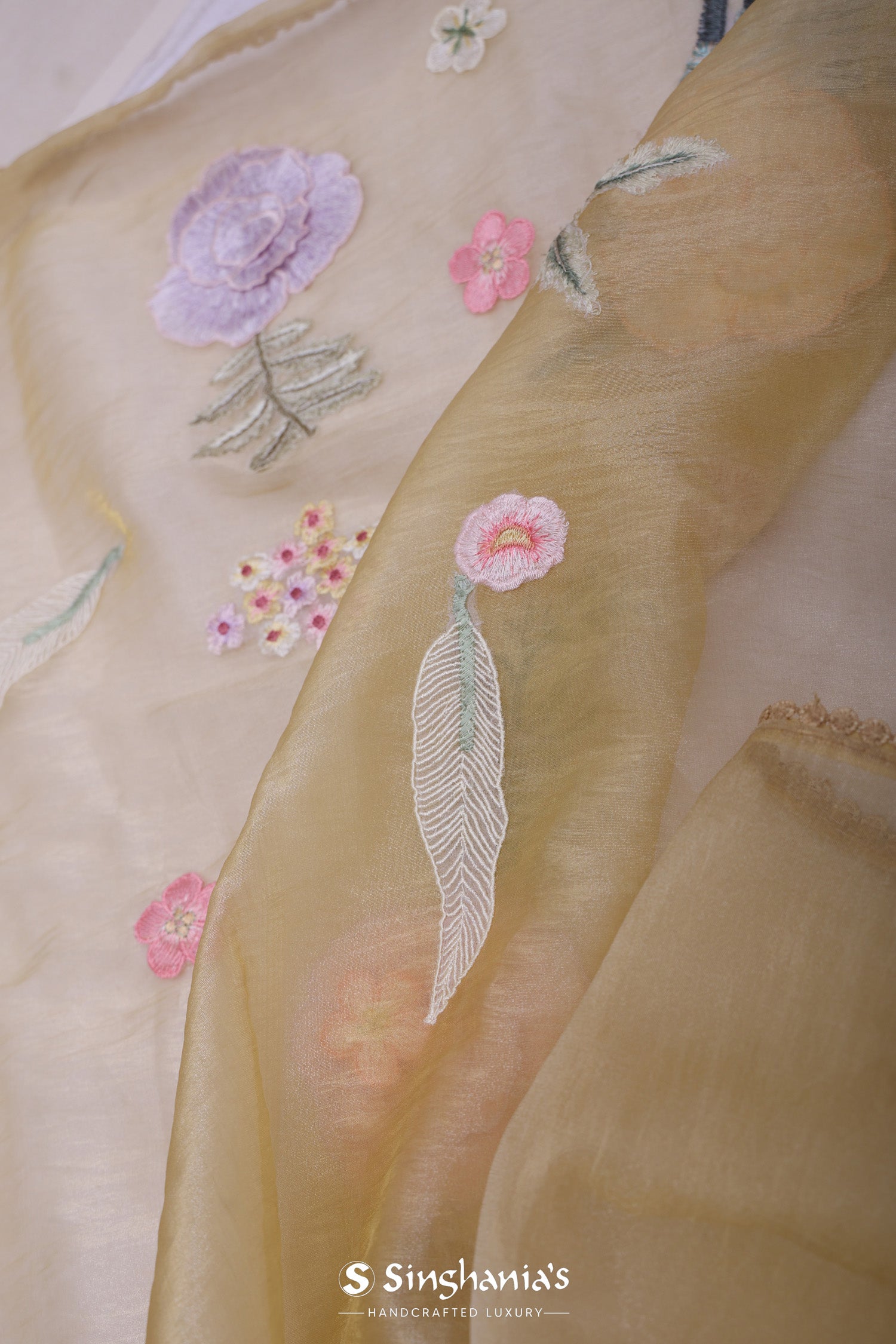 Light french beige organza saree embroidery work forming various floral pattern which is adding the charm to overall look.