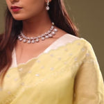Macaroon Yellow Organza Embroidery Saree With Scallop Border