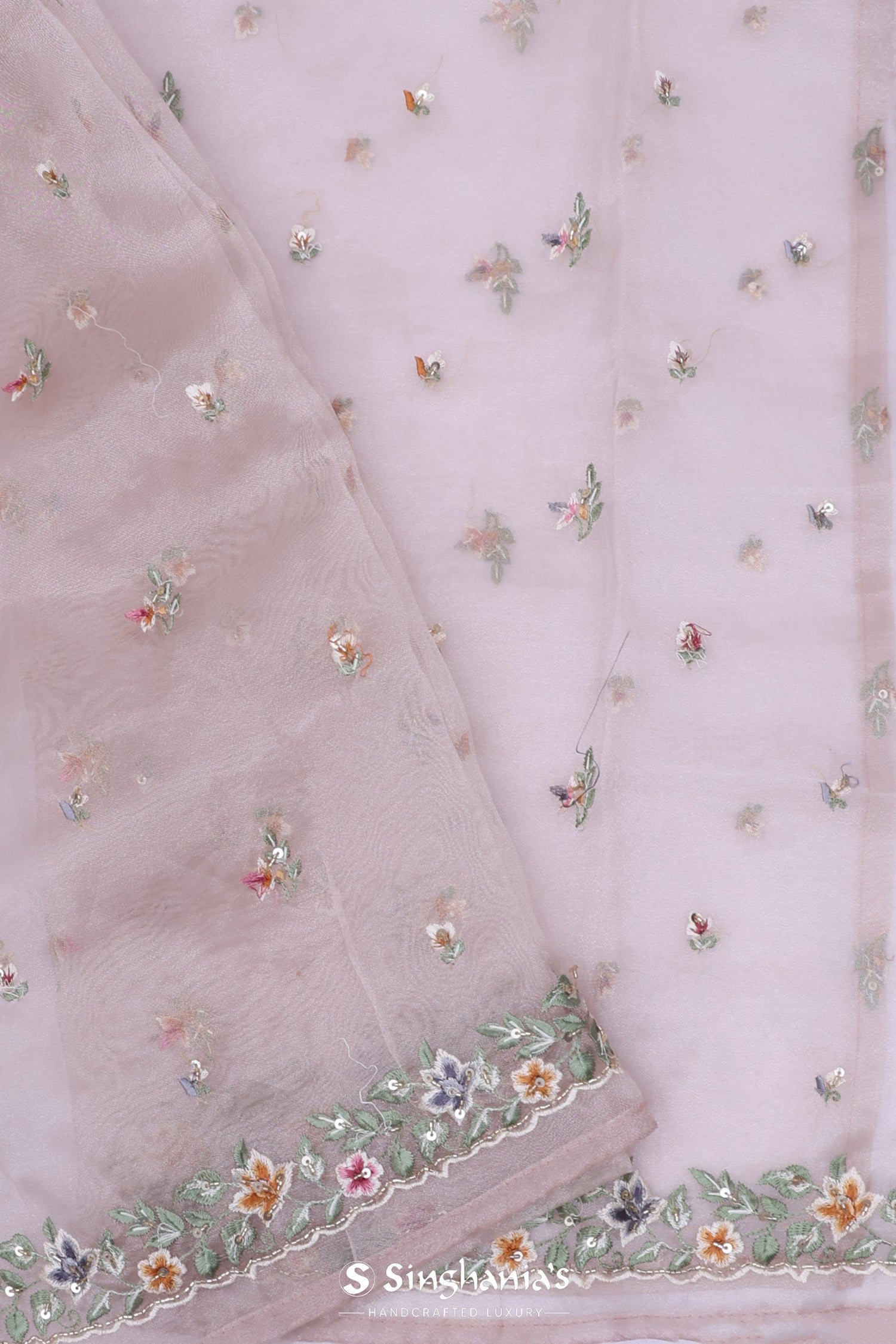This Organza saree features sequins work along with fancy border embellished with parsi embroidery forming a floral design in vibrant colors which is adding the charm to overall look.