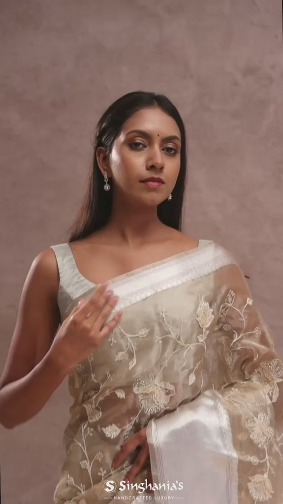 Soft Beige Organza Embroidery Saree With Silver Zari Work