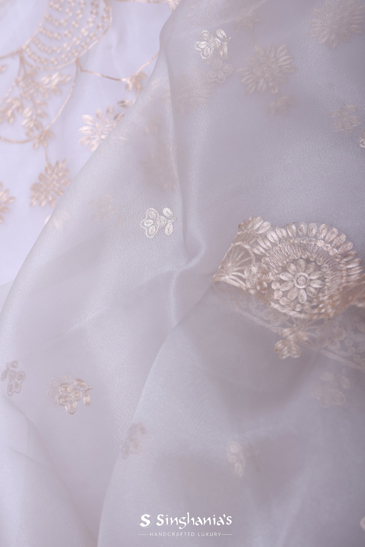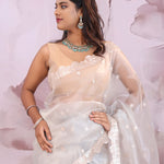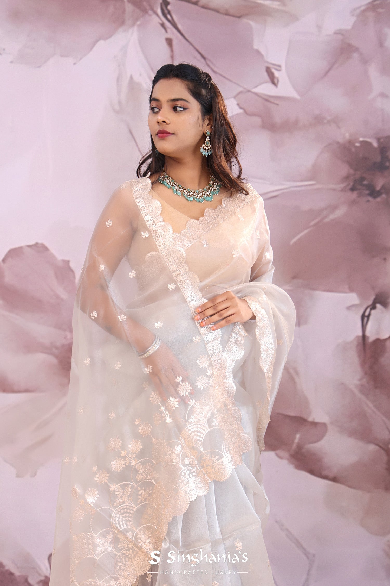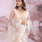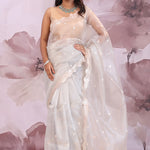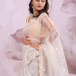This White organza saree presents butti's along with scallop border embellished with gota patti which would light up every moment when you drape yourself with this.