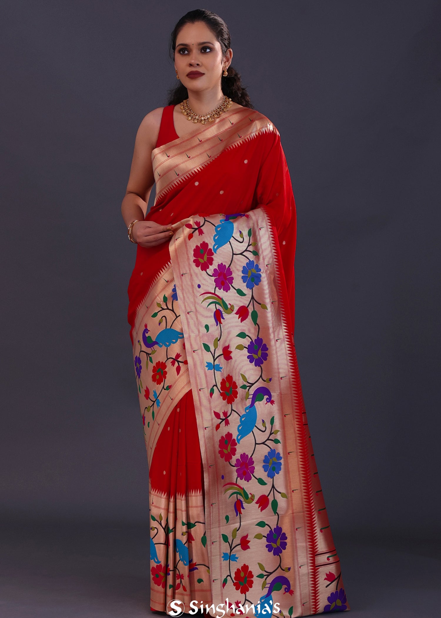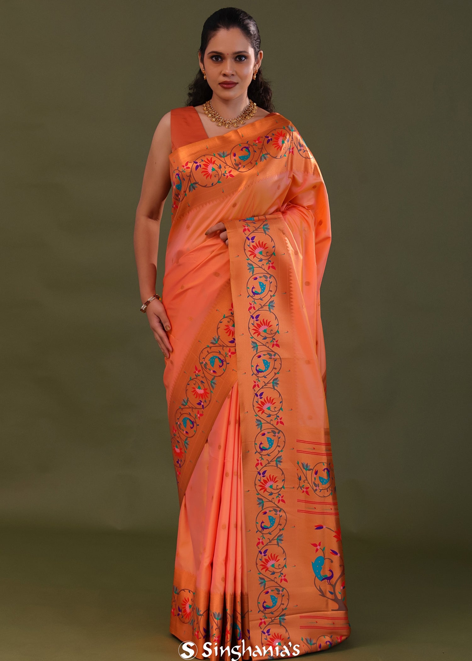 Paithani sarees have been cherished for centuries, tracing their roots to the heartland of Maharashtra, India. These exquisite garments are not just pieces of fabric but are timeless heirlooms that encapsulate the essence of Maharashtrian culture. The name ‘Paithani’ itself is derived from the town of Paithan, where this art form was born and has thrived for generations.