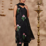 Black Organza Floral Painted Kurti Set