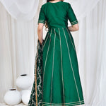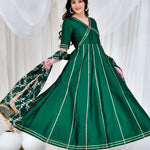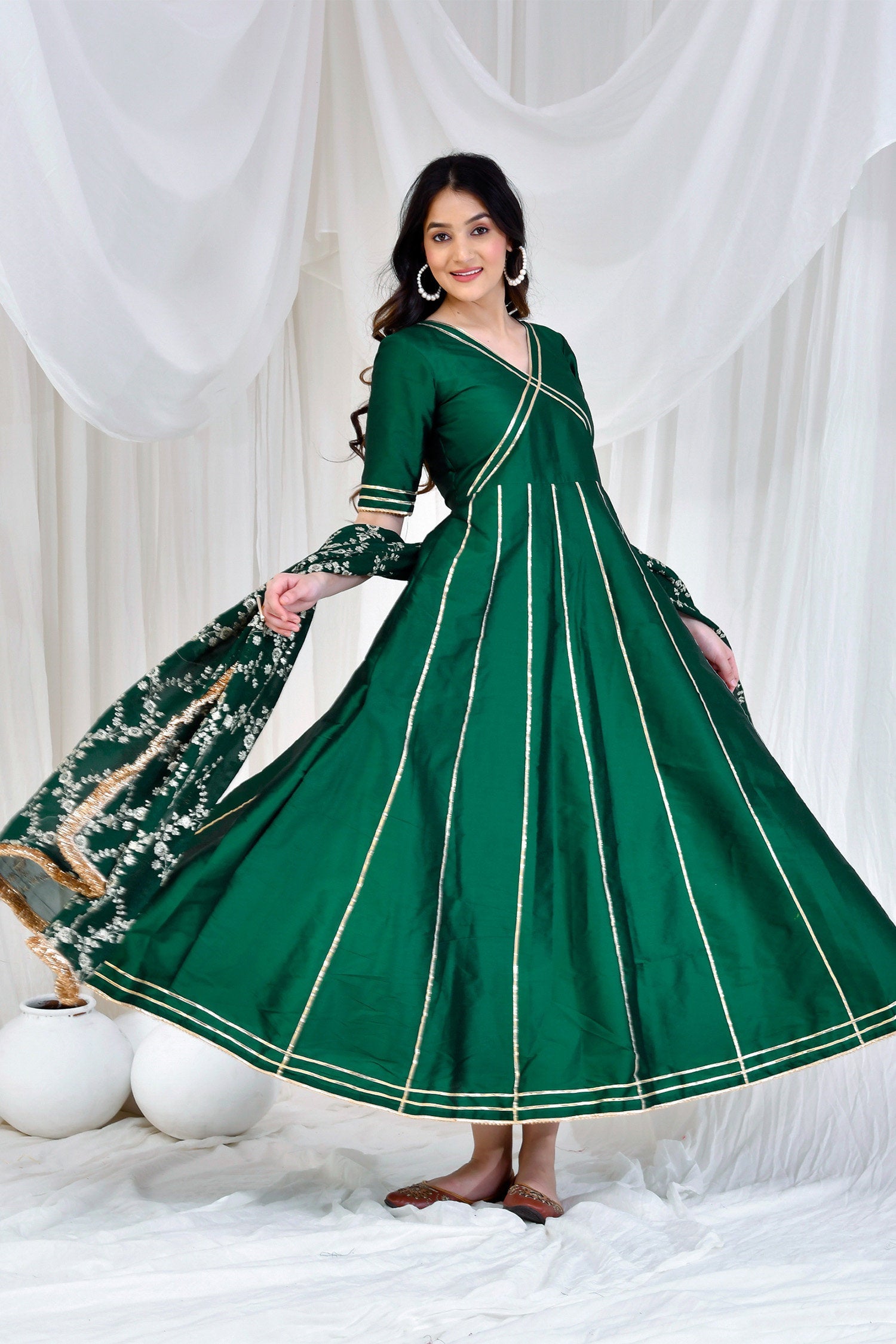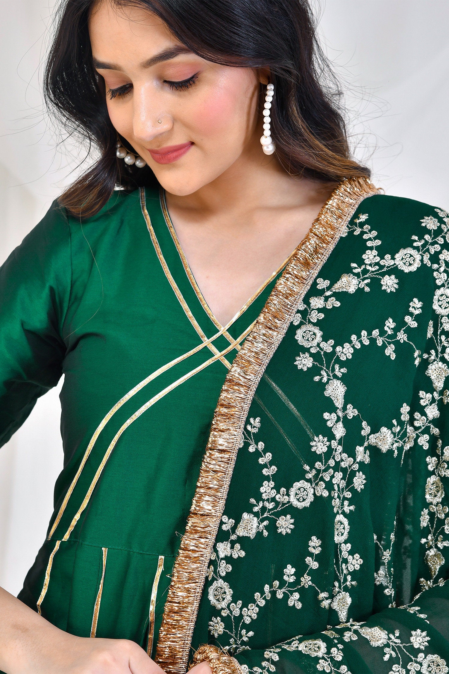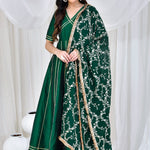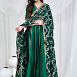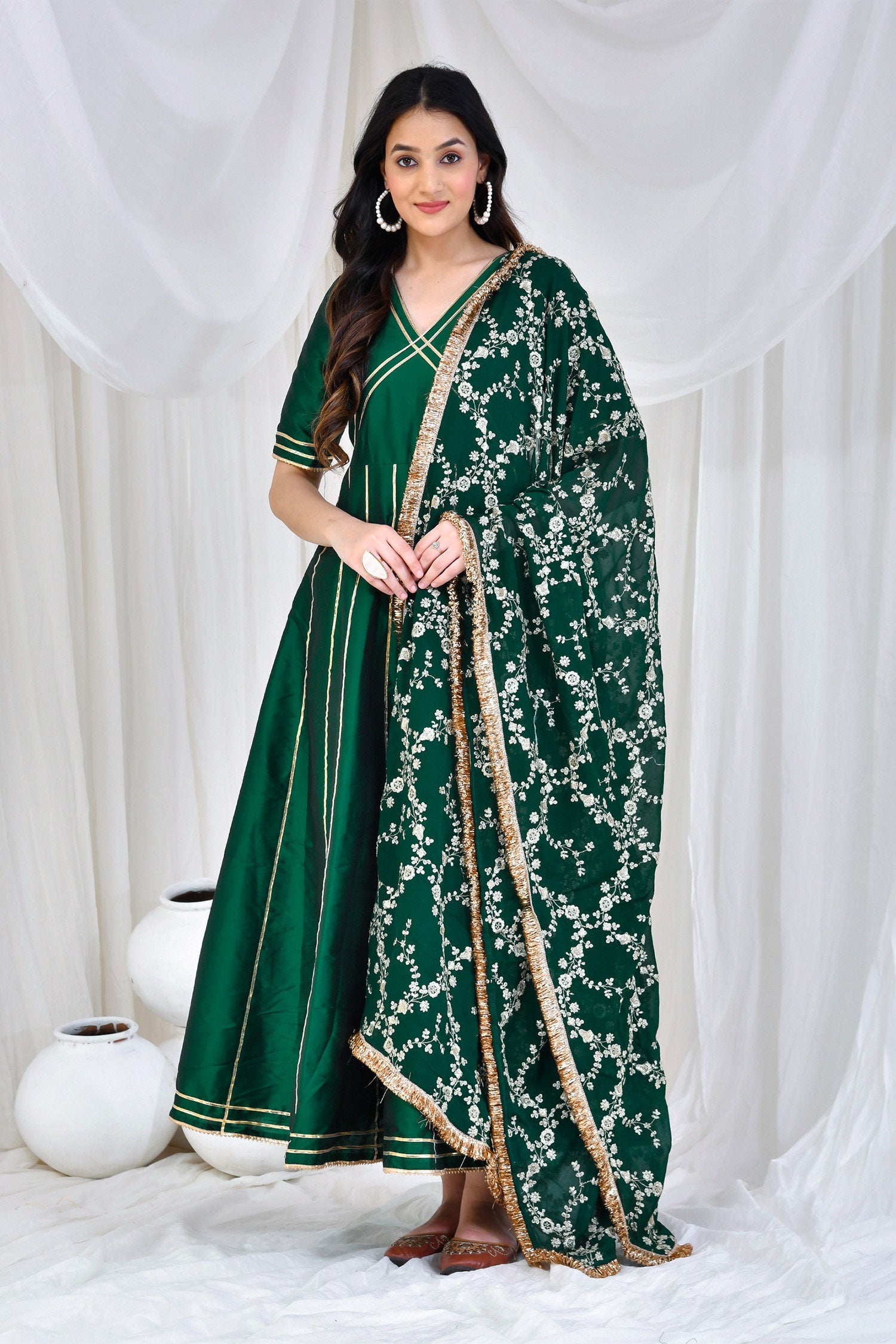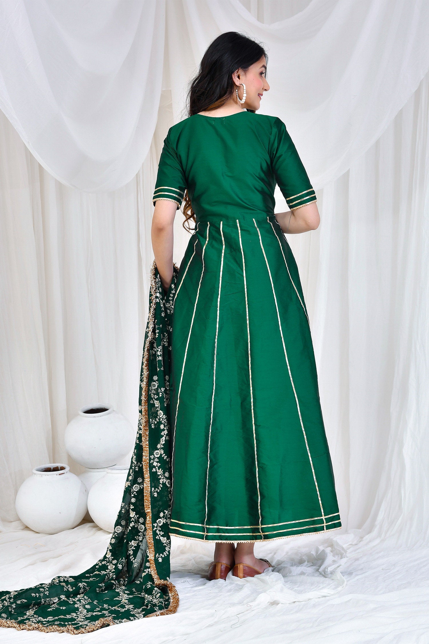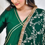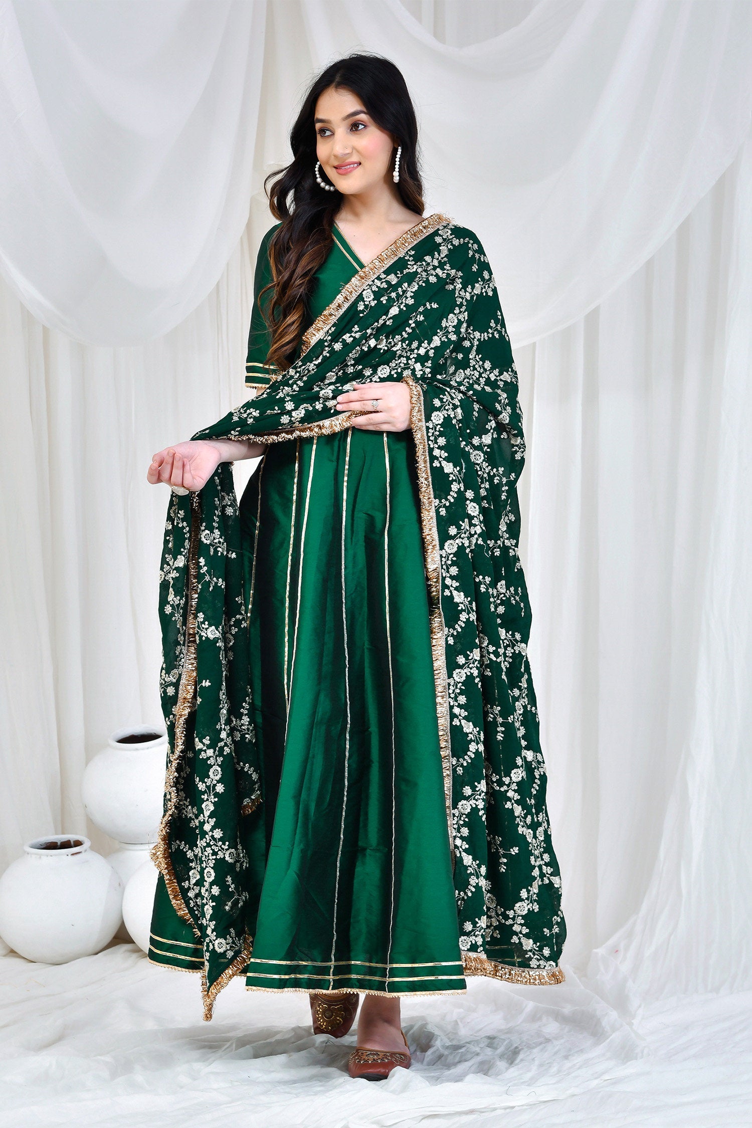 Bottle Green Silk Anarkali Set With Embroidered Dupatta