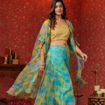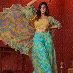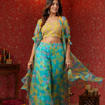 Cerulean Blue Organza Printed Indo-Western Co-Ord Set