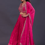 Dark Pink Banarsi Silk Embroidered Lehenga Set