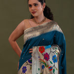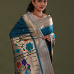 Elephant Bluish Cyan Paithani Saree With Butti'S