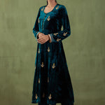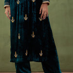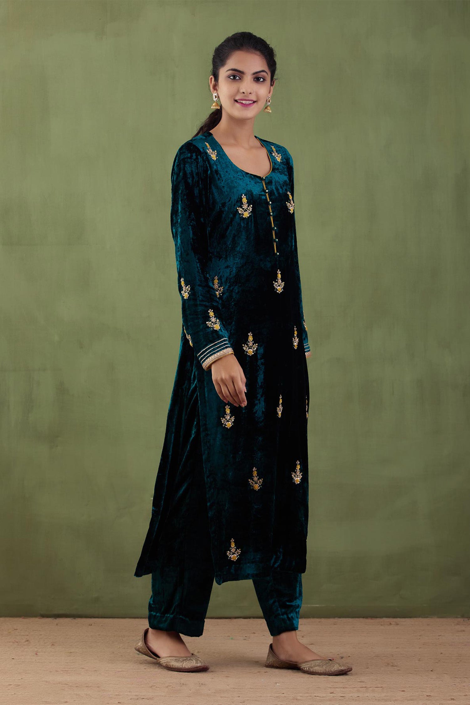 Emerald Green Velvet Straight Kurta Set And Pant With Gotta Dupatta