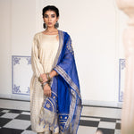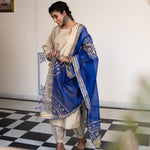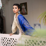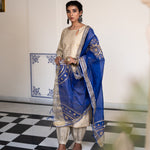 Gold Blue Cotton Suit Hand Blocked In Antique Gold