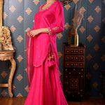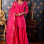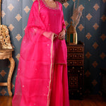 Hand Embroidery Bright Pink Cotton Silk Sharara Set