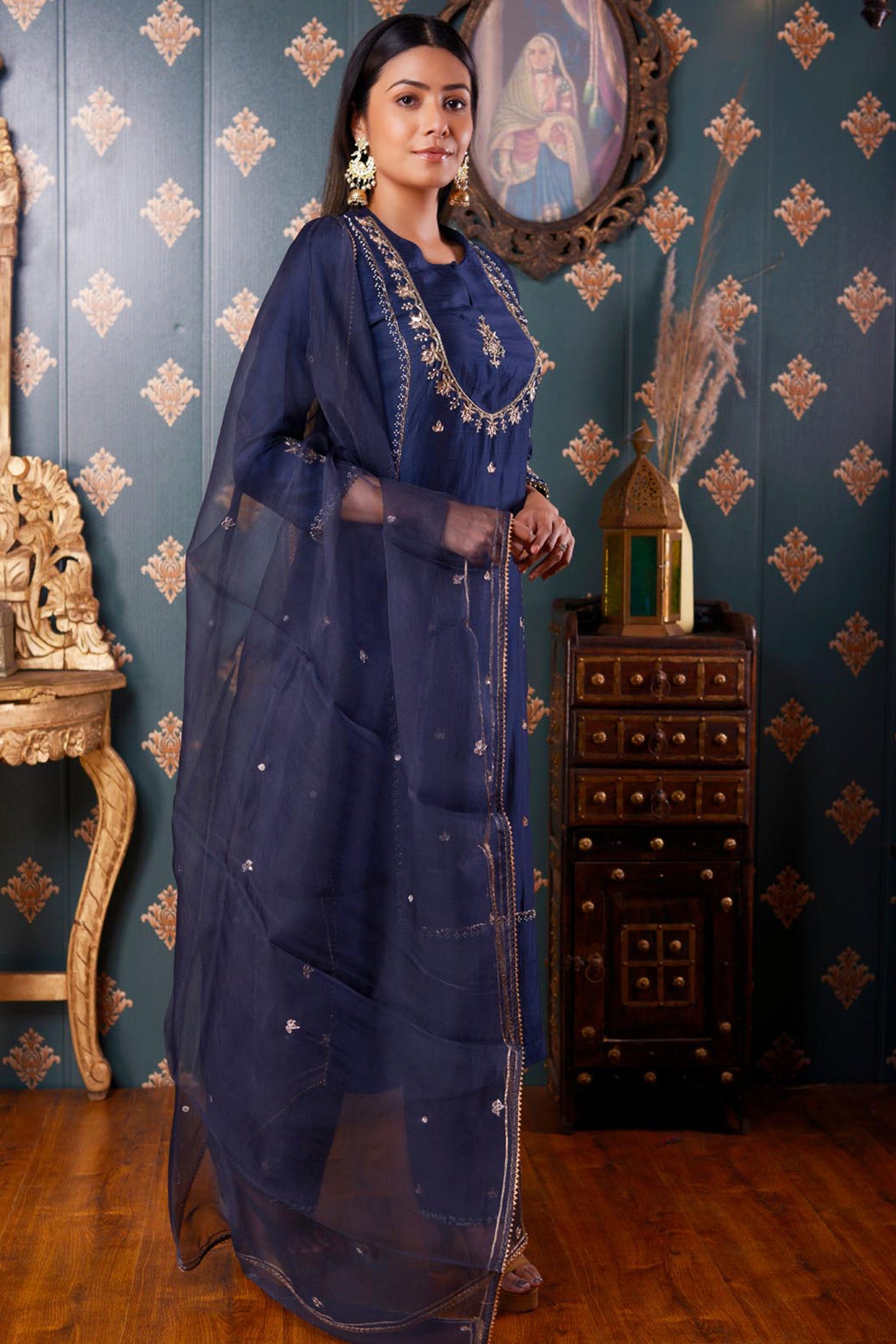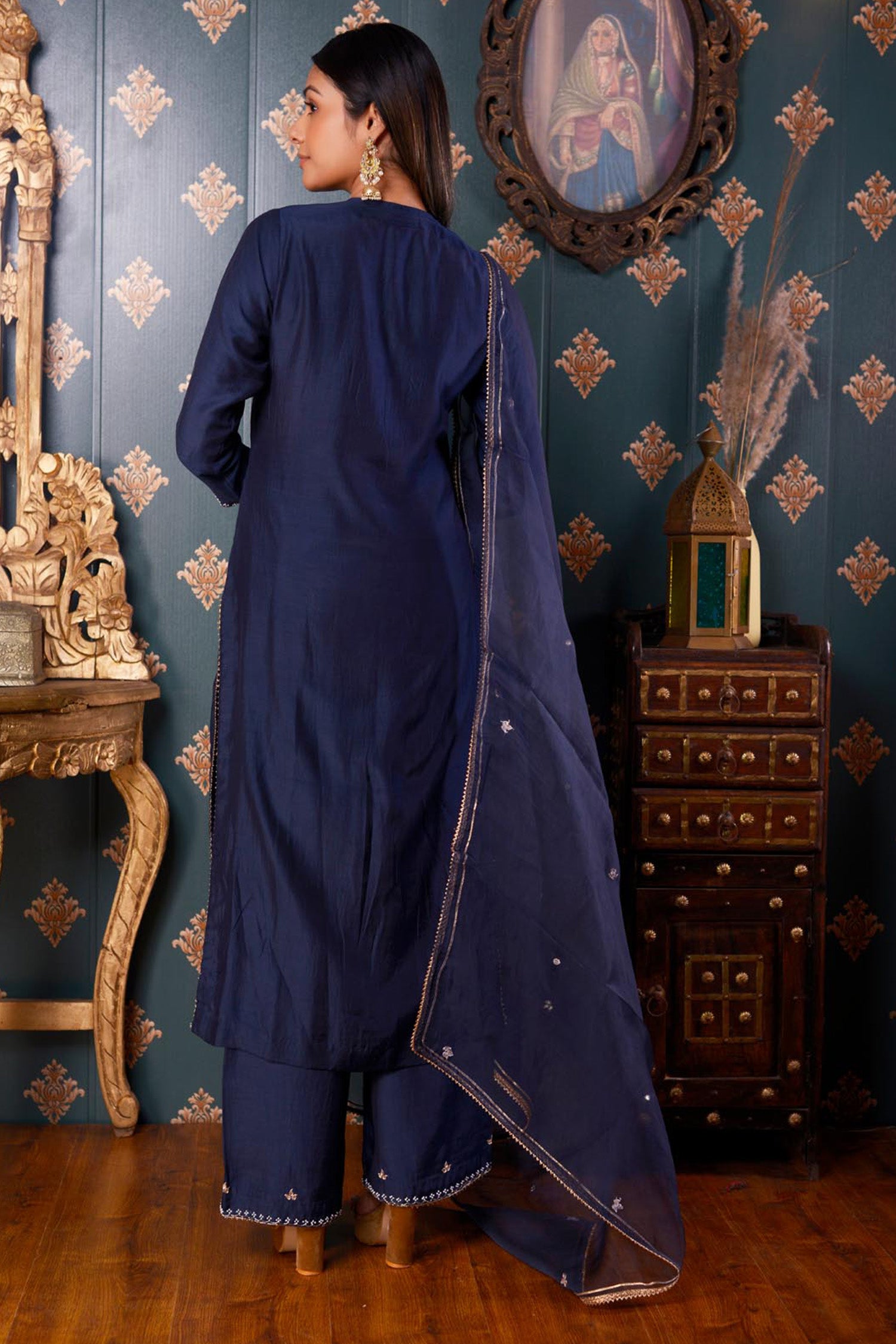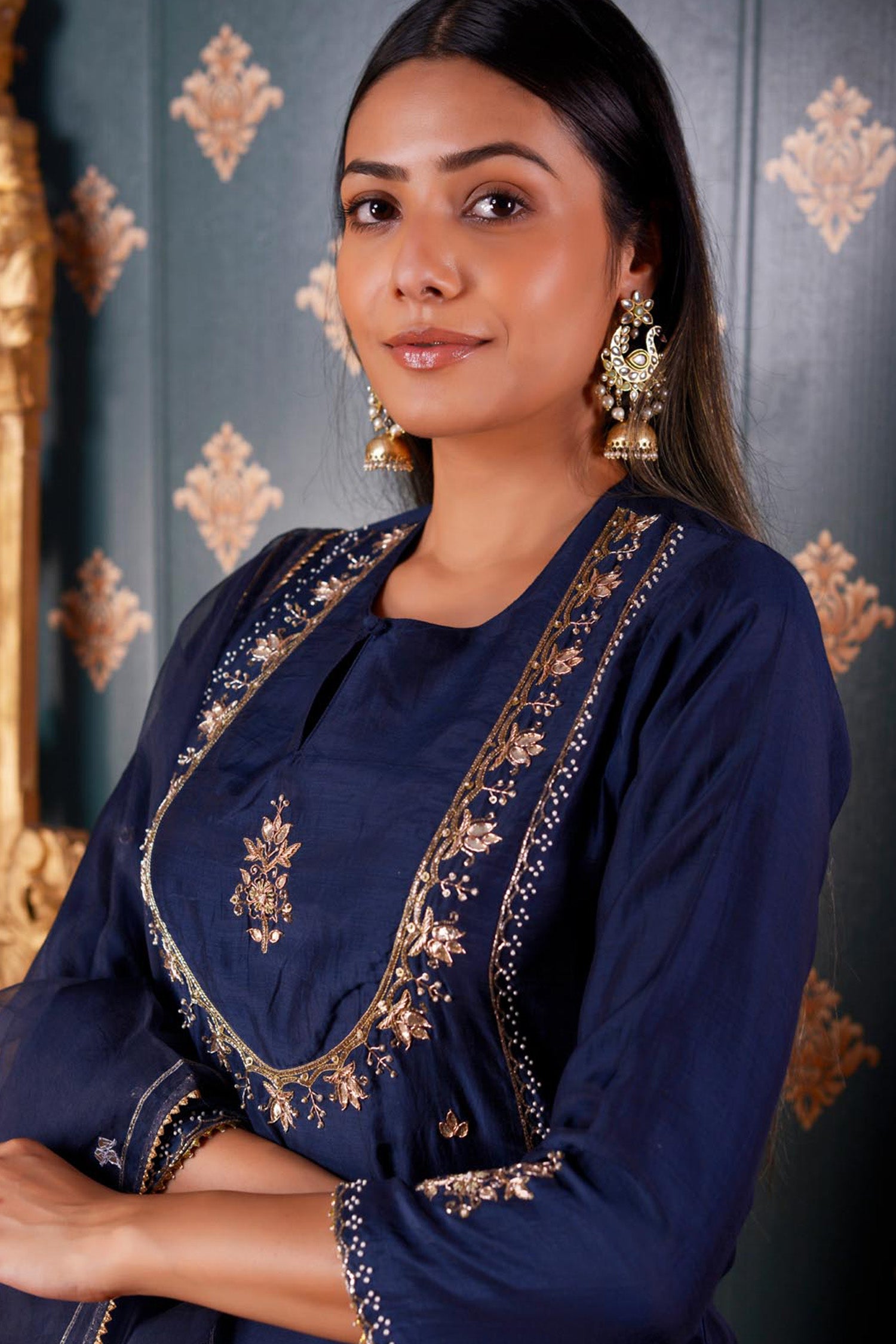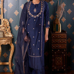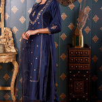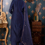 Hand Embroidery Navy Blue Cotton Silk Kurta Set