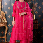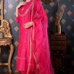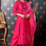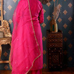 Hand Embroidery Rani Pink Cotton Silk Kurta Set