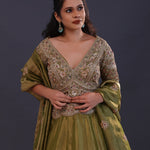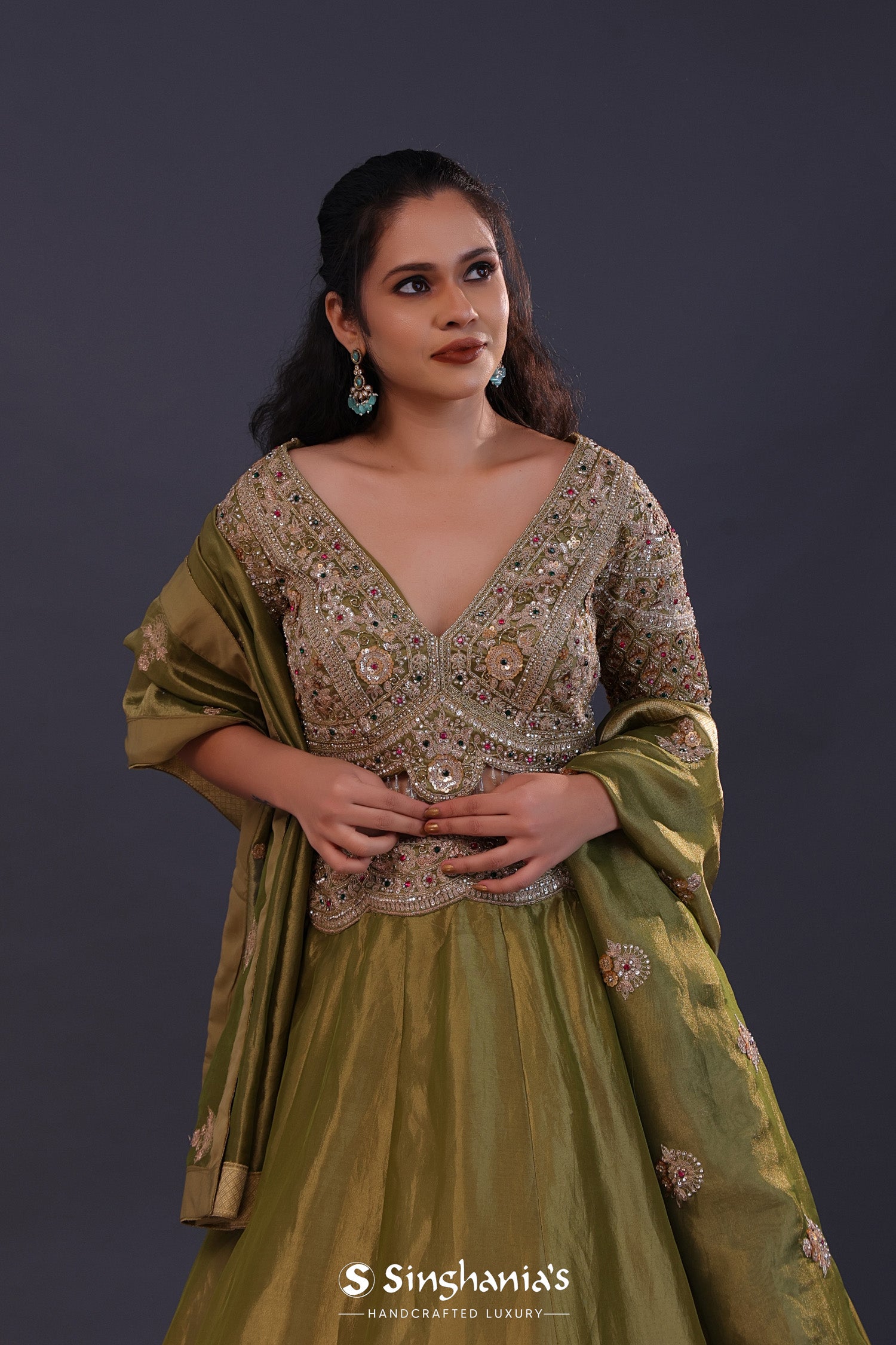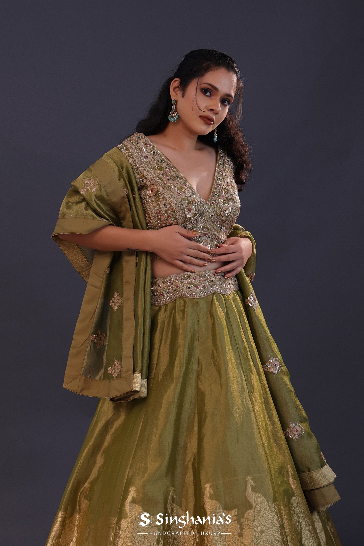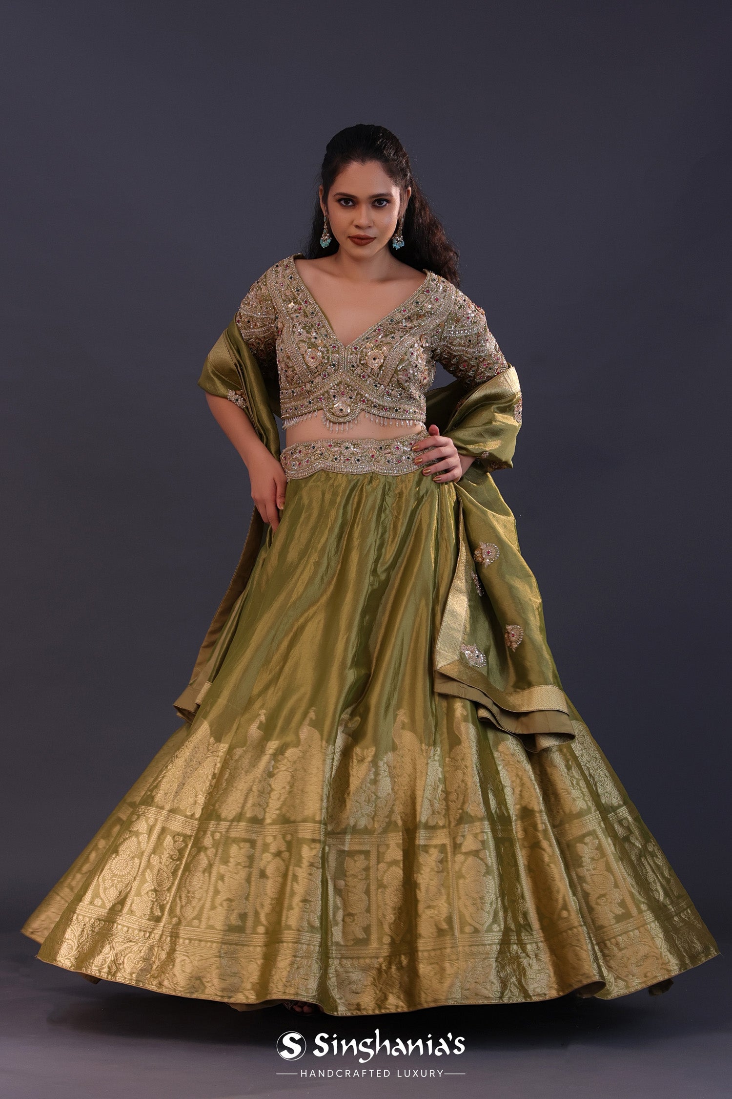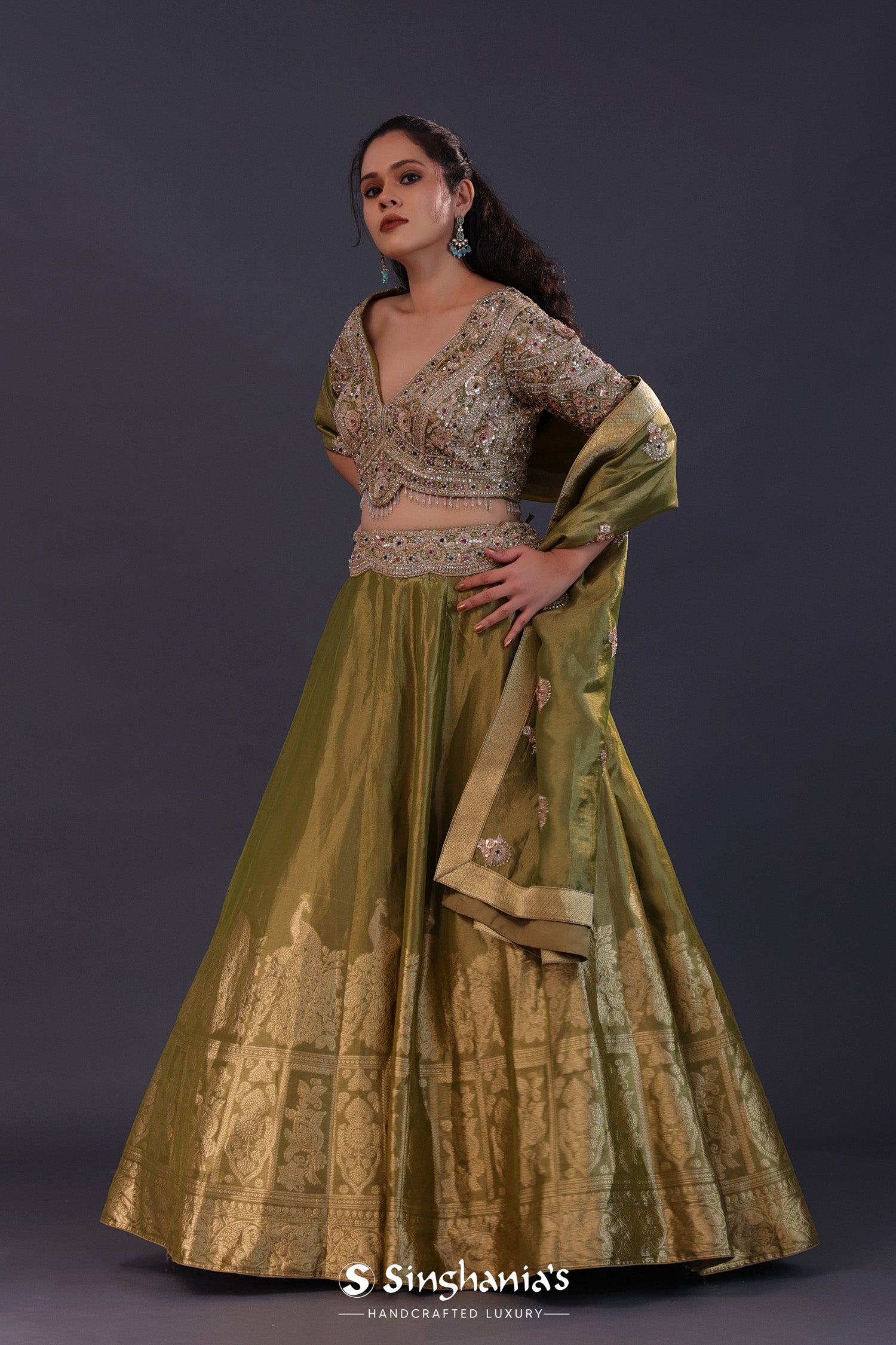 Mehendi Green Tissue Banarasi Embroidered Lehenga Set