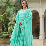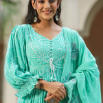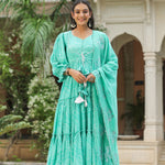Mint Blue Silk Bandhani Printed Anarkali Set