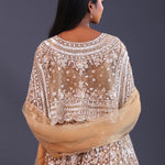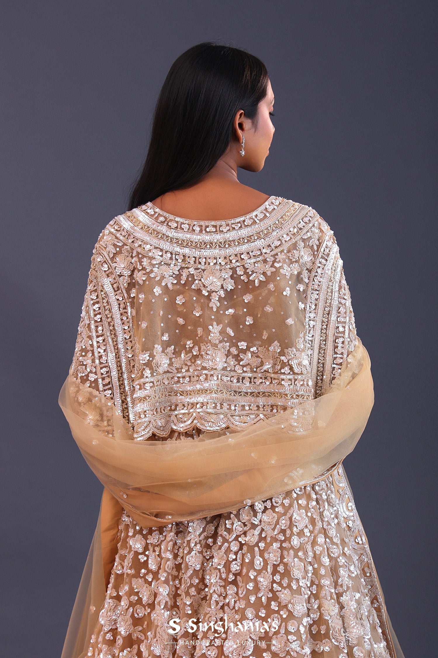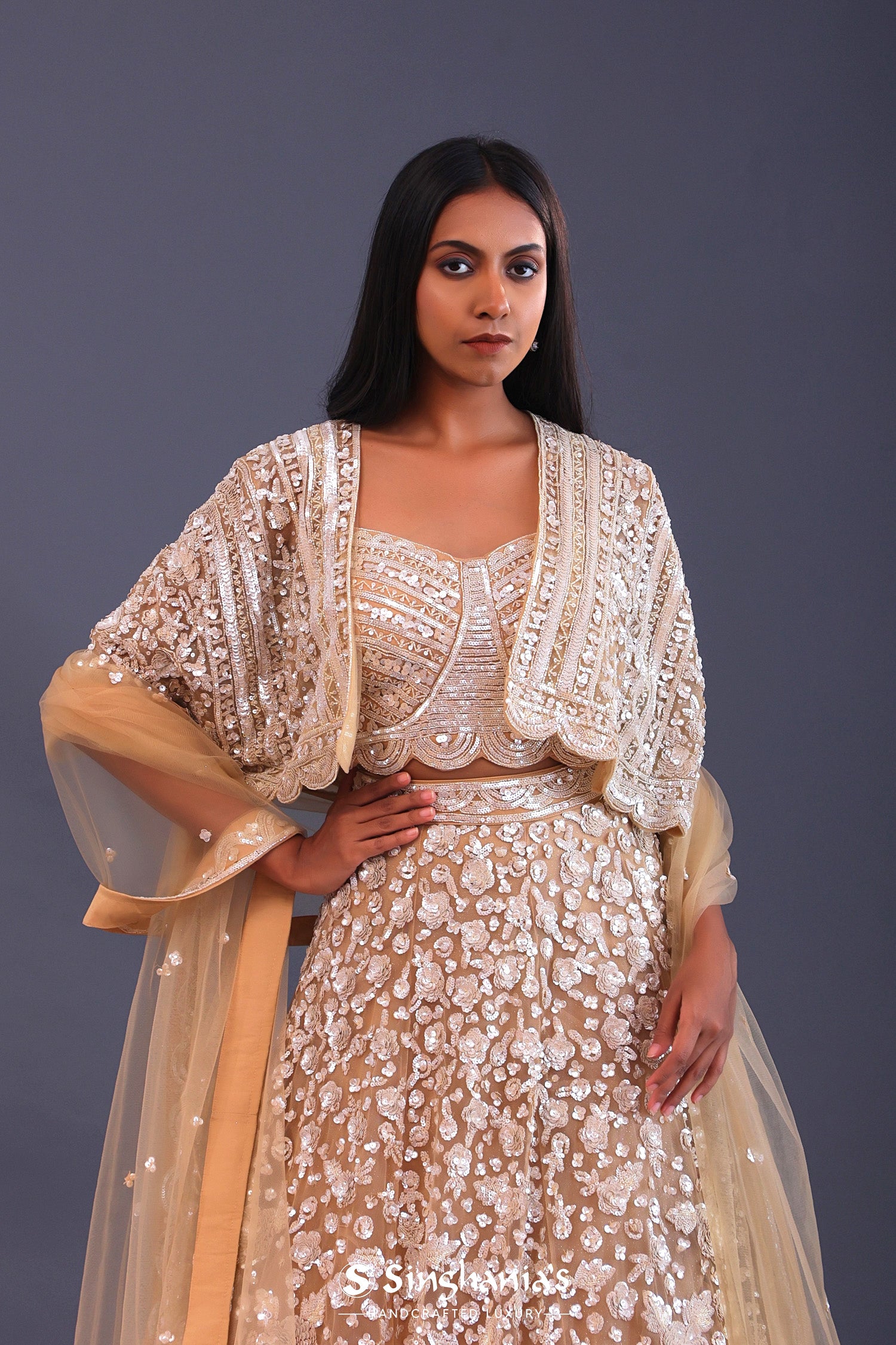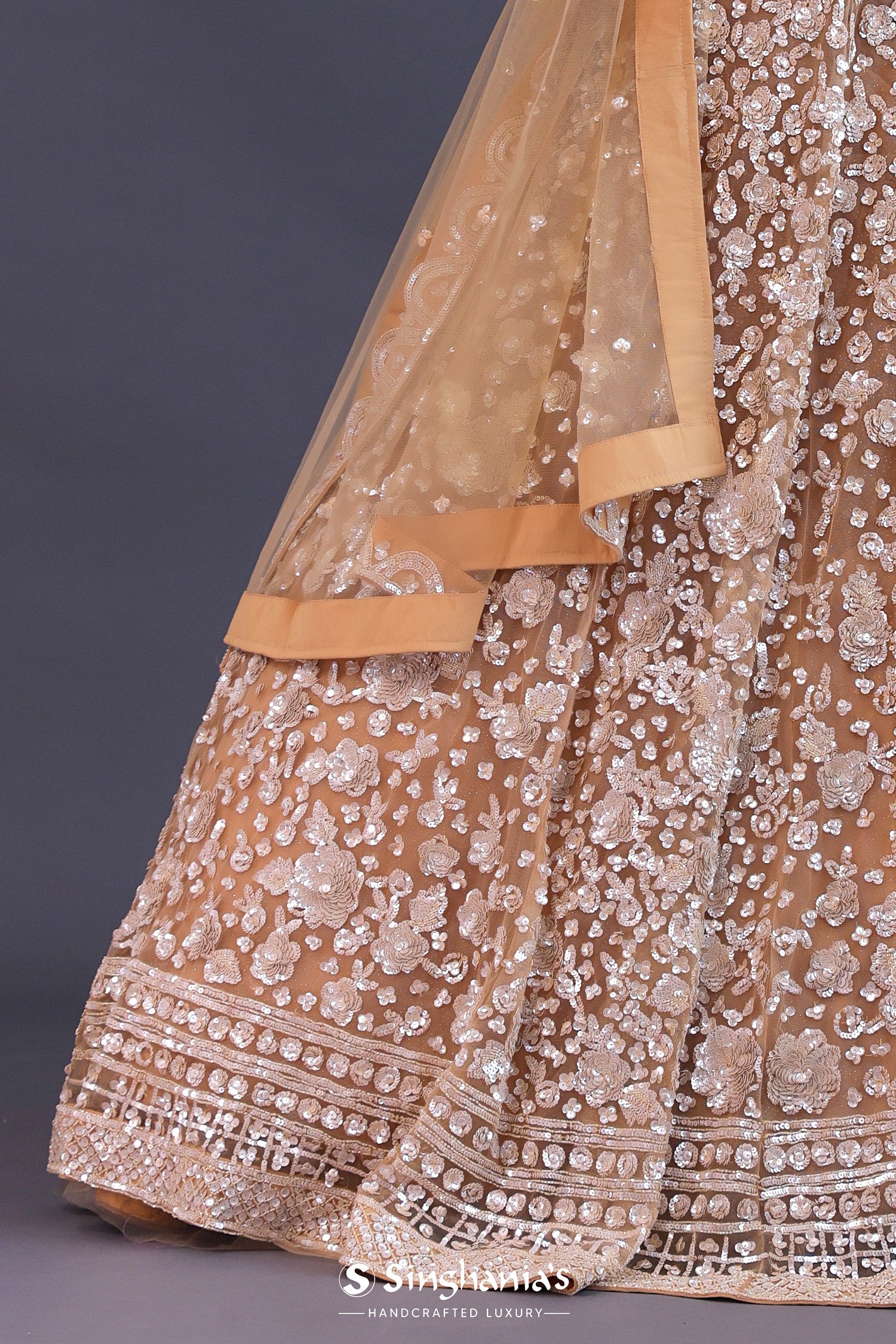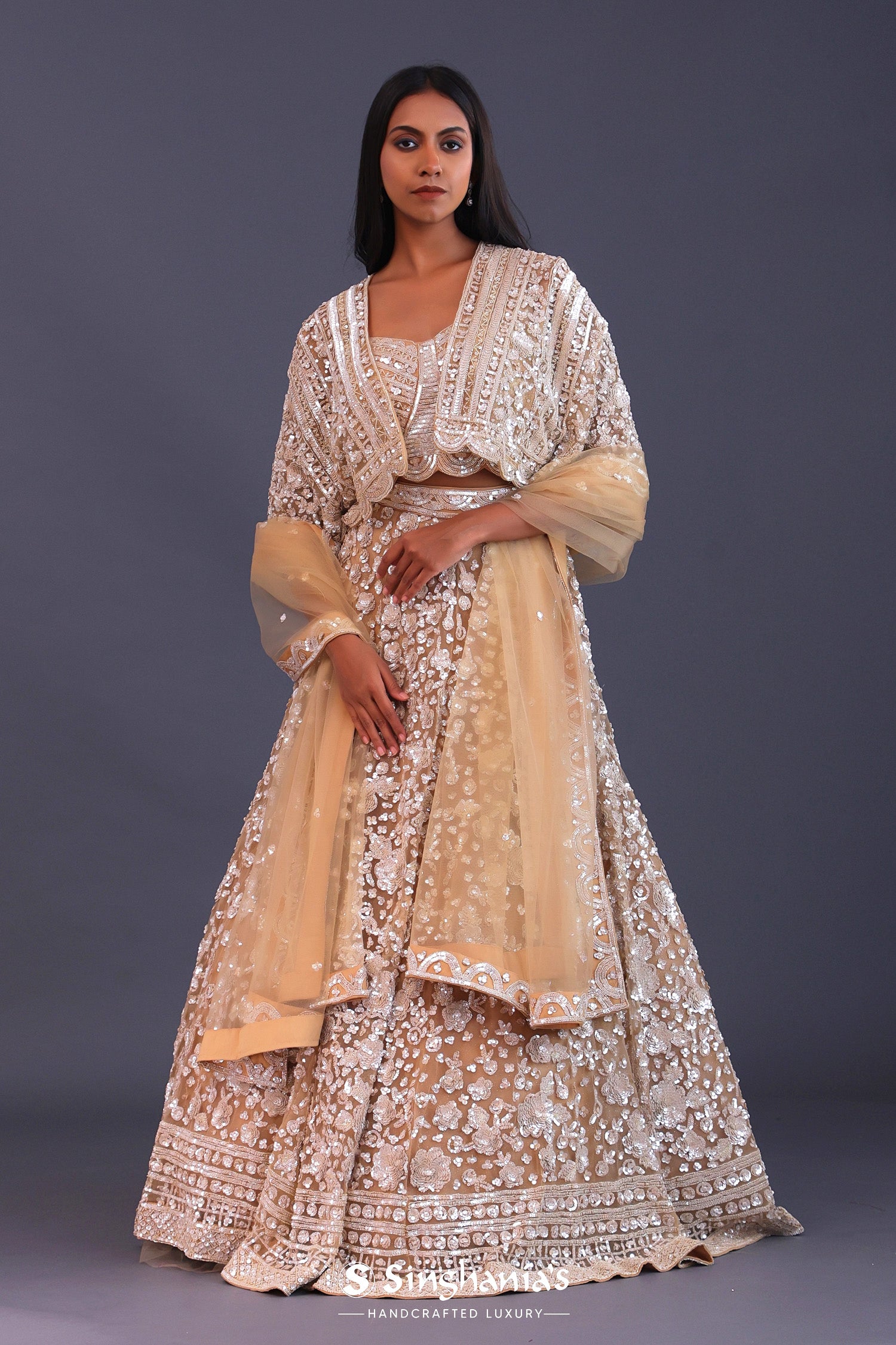 The gorgeous pastel beige net sequence work embroidered lehenga set for a beautiful look with elegance.