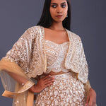 Pastel Beige Net Sequence Embroidered Lehenga Set