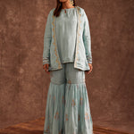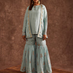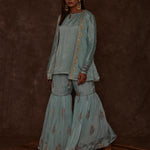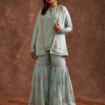 Pastel Blue Jacketed Pure Chinon Gharara Set