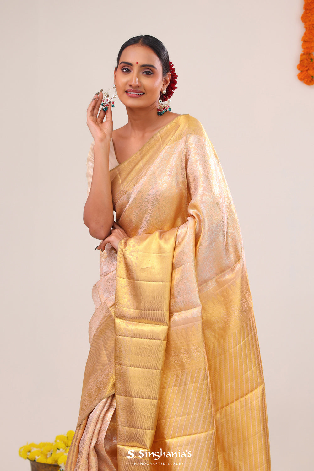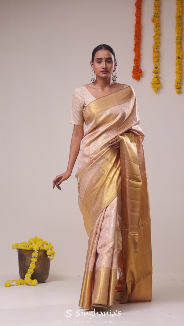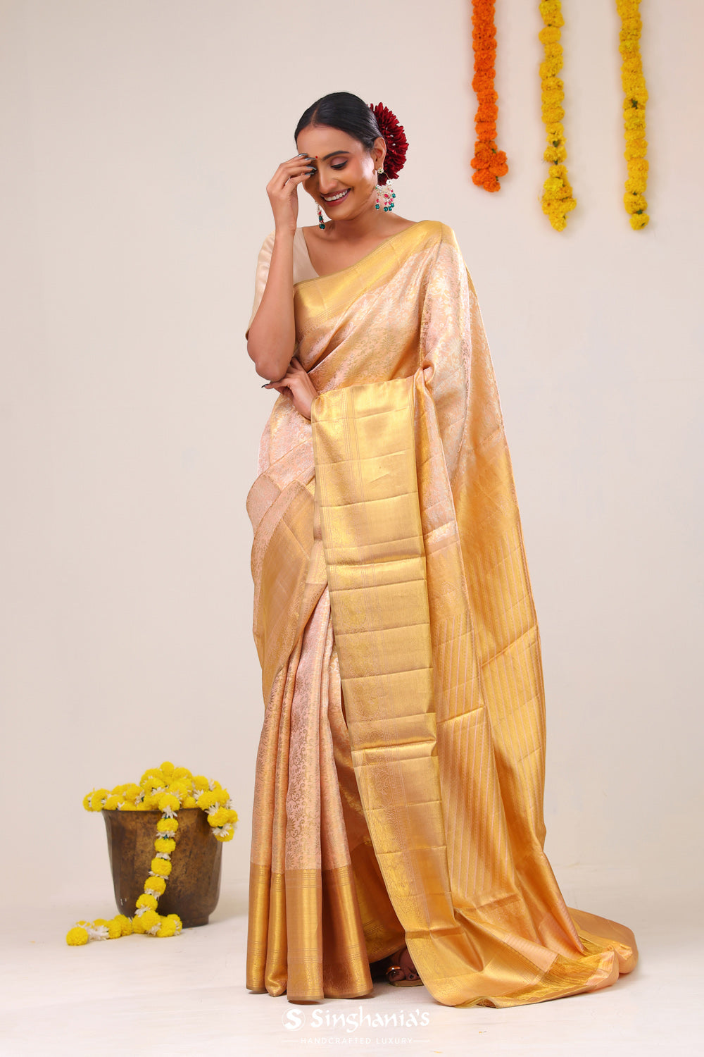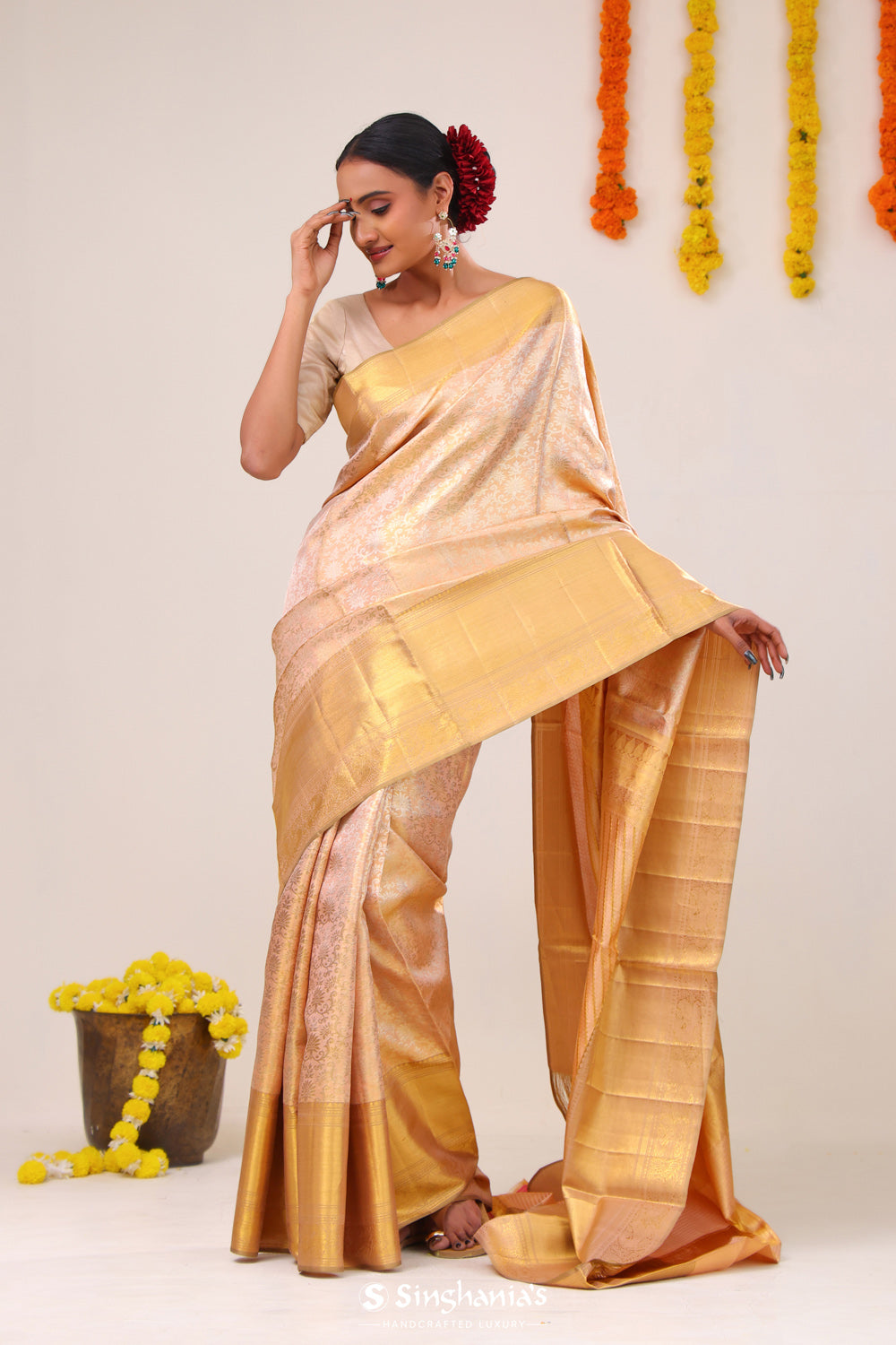 Pastel Peach Jaal Kanjivaram Silk Saree