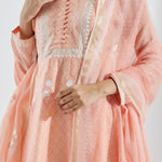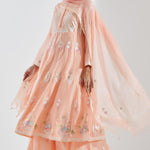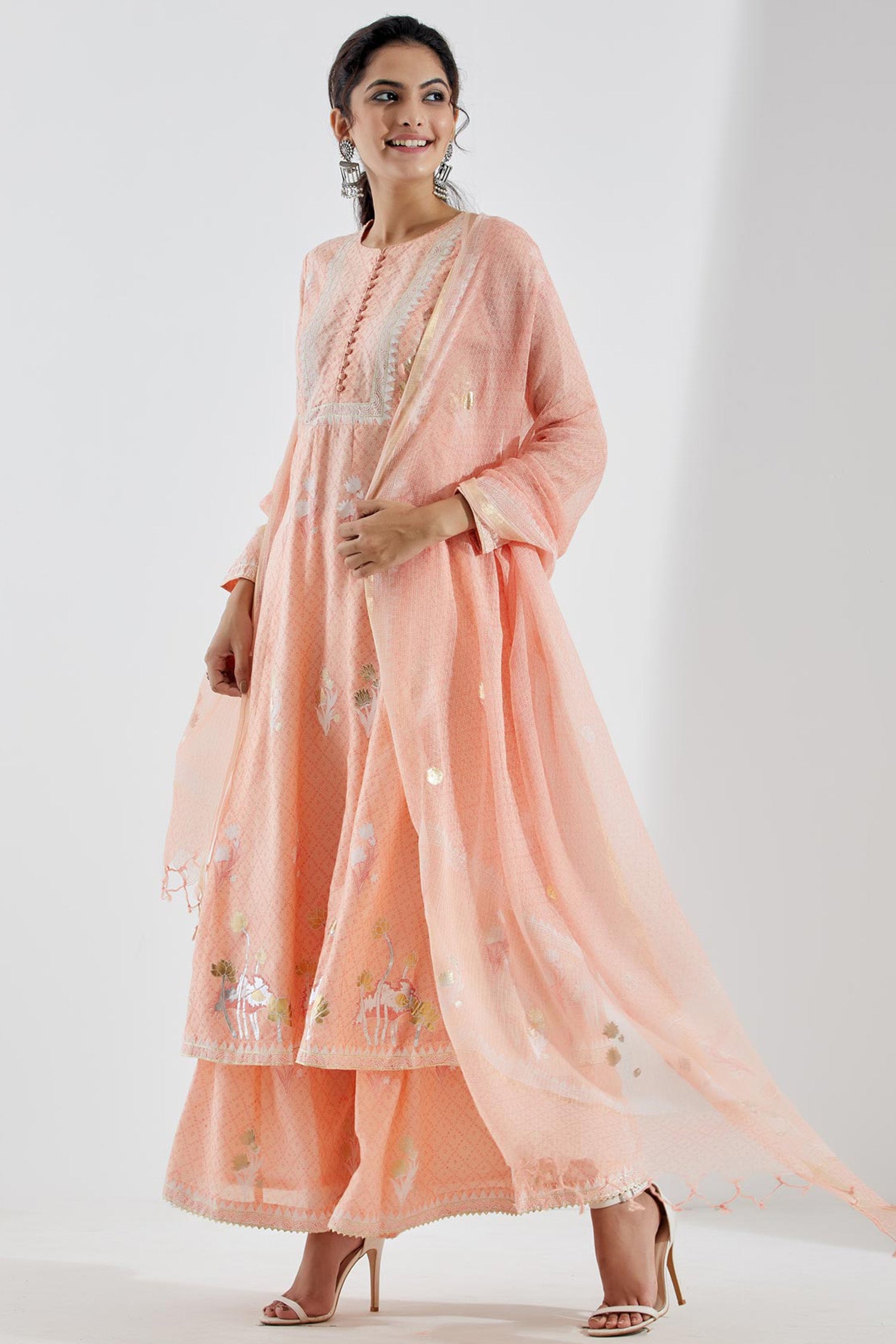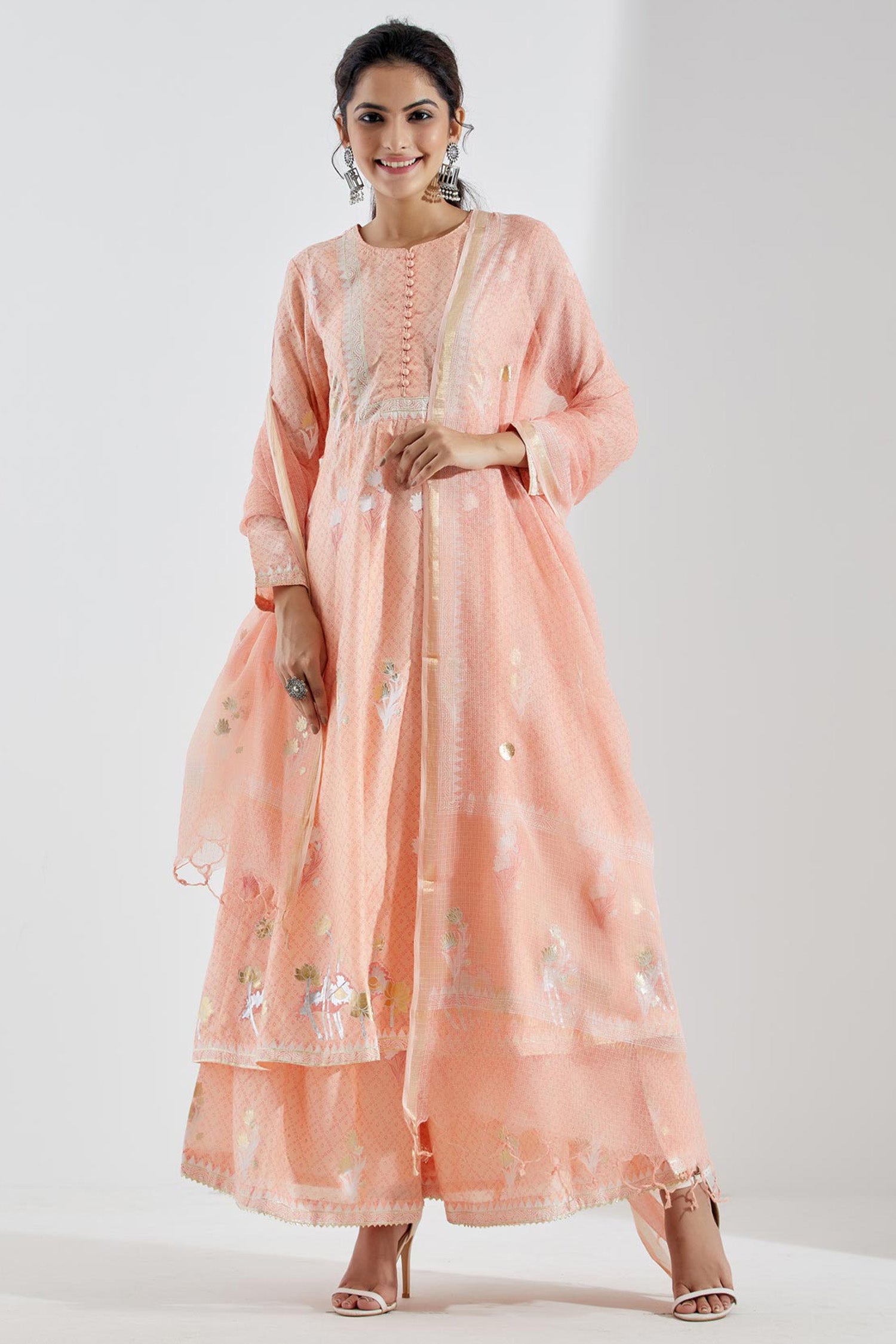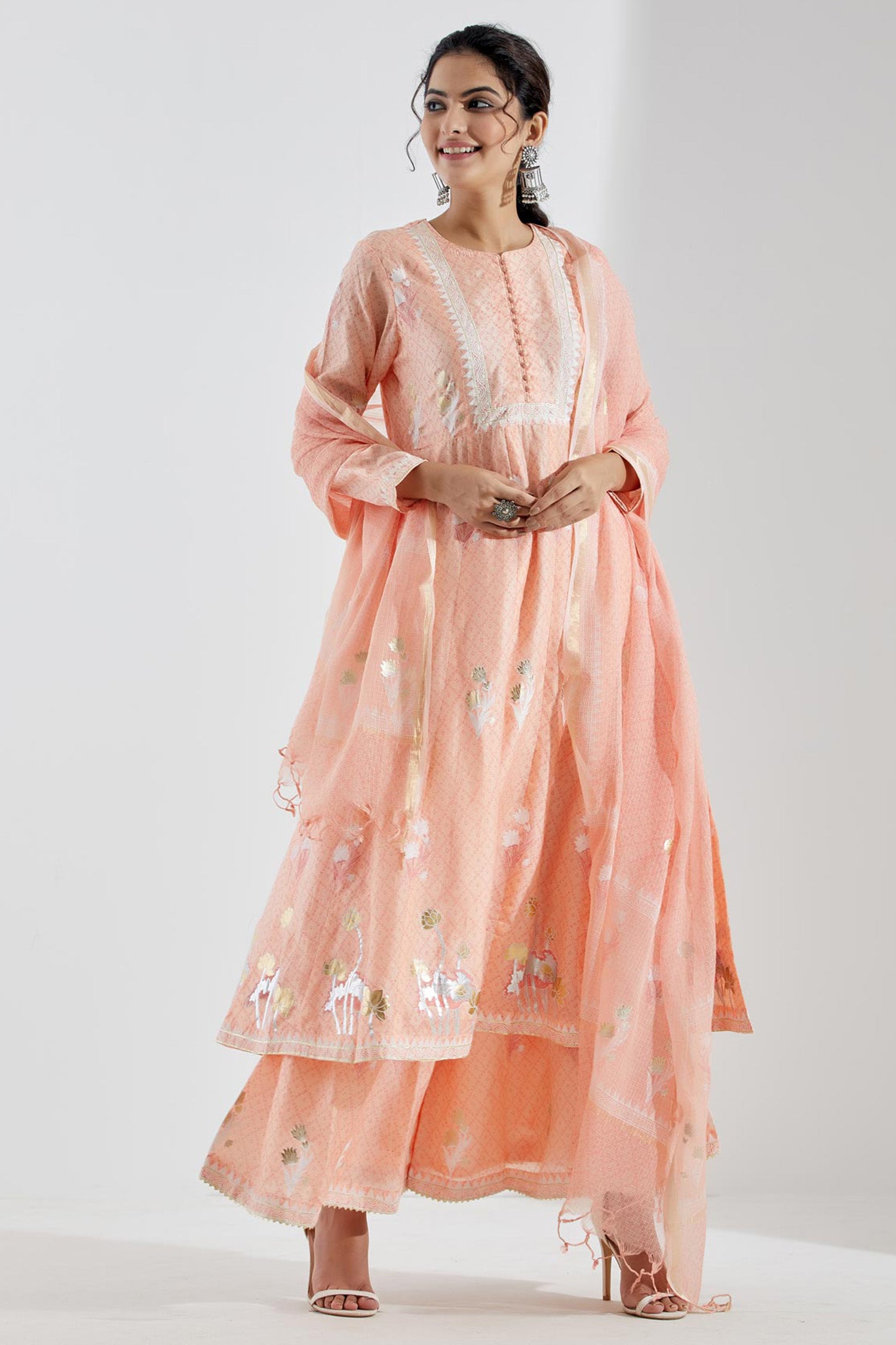 Printed Light Peach Floral Cotton Silk Anarkali Set