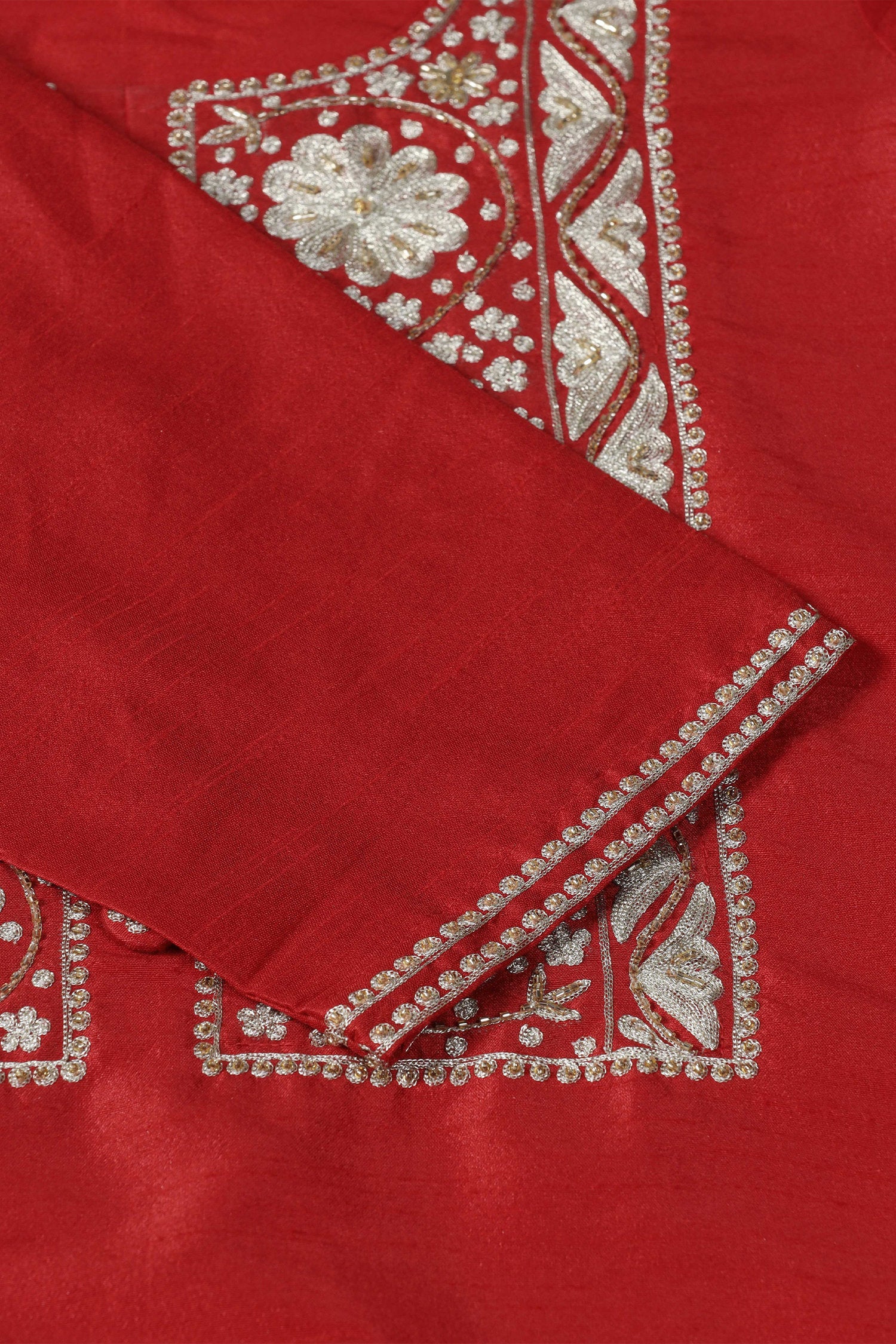 Purple Raw Silk Embroidered Kurti With Salwar And Dupatta