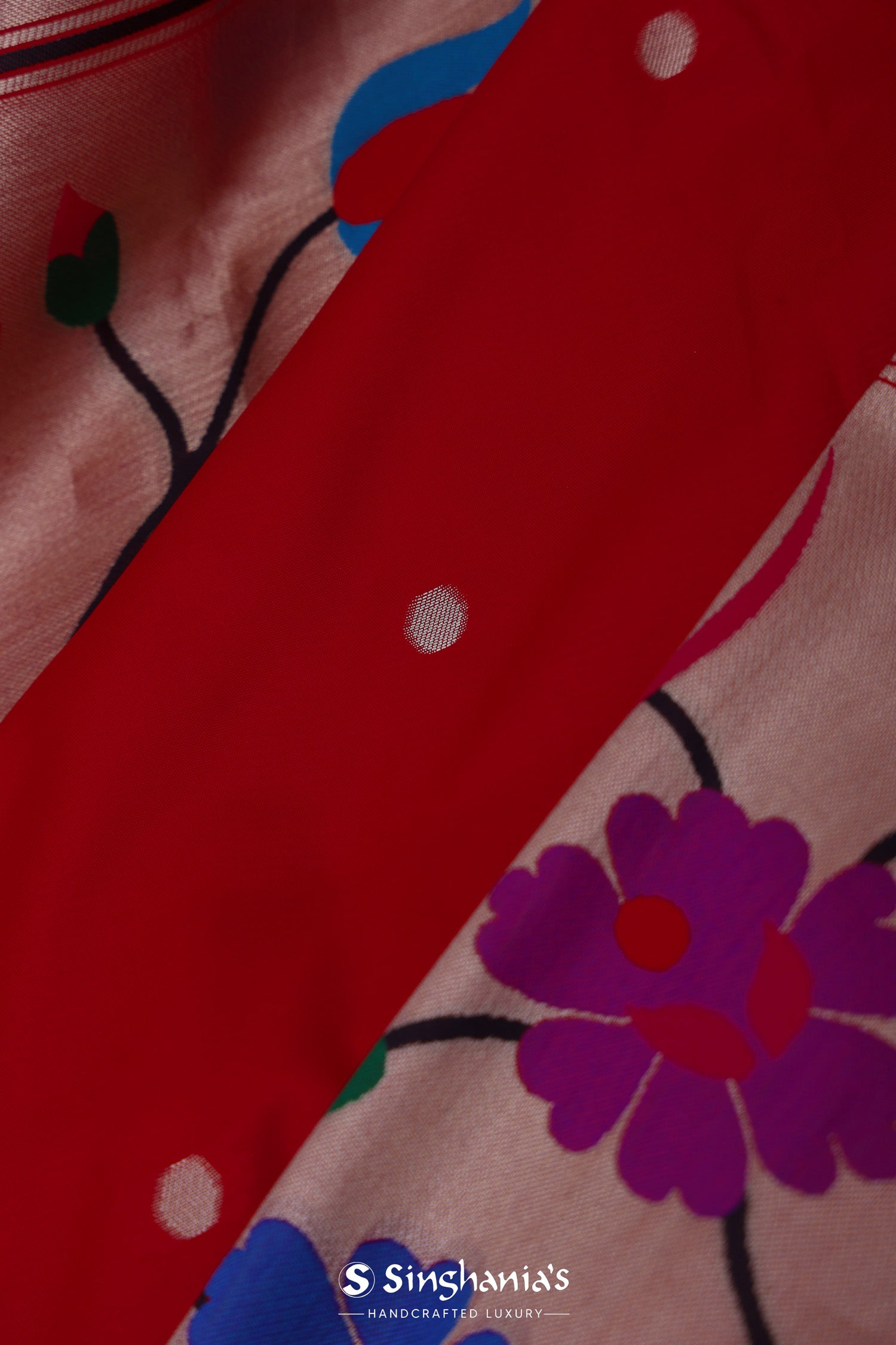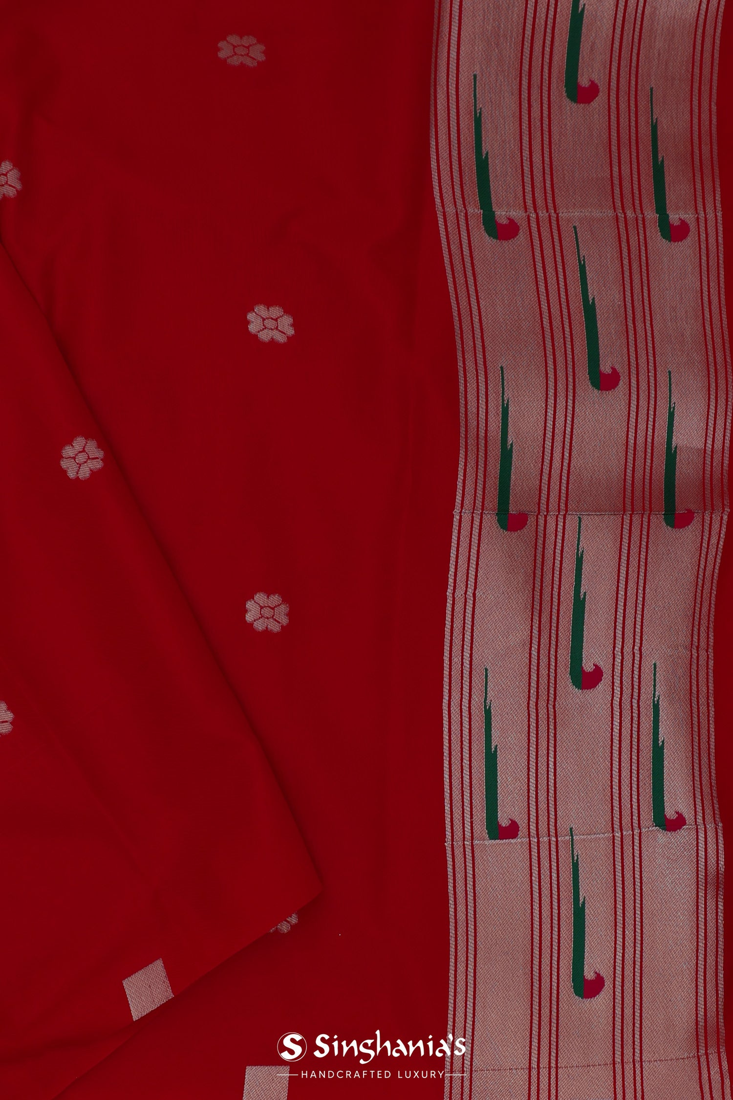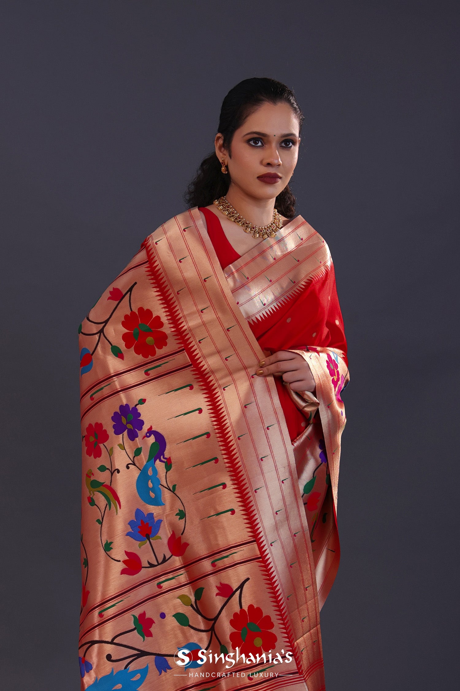 The Red berry paithani saree features butti's woven with gold zari complemented with paithani border and unstitched blouse