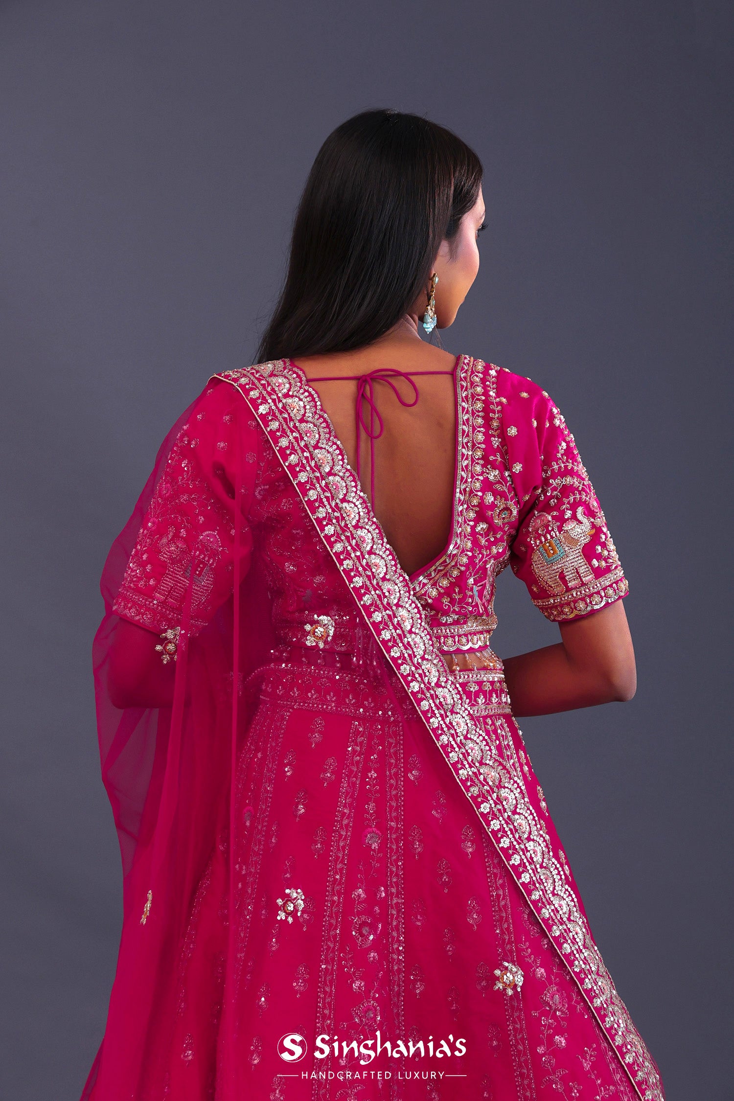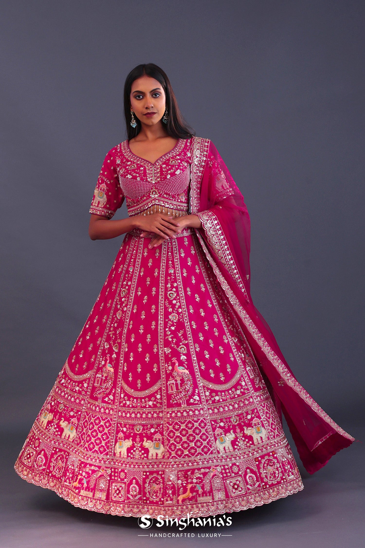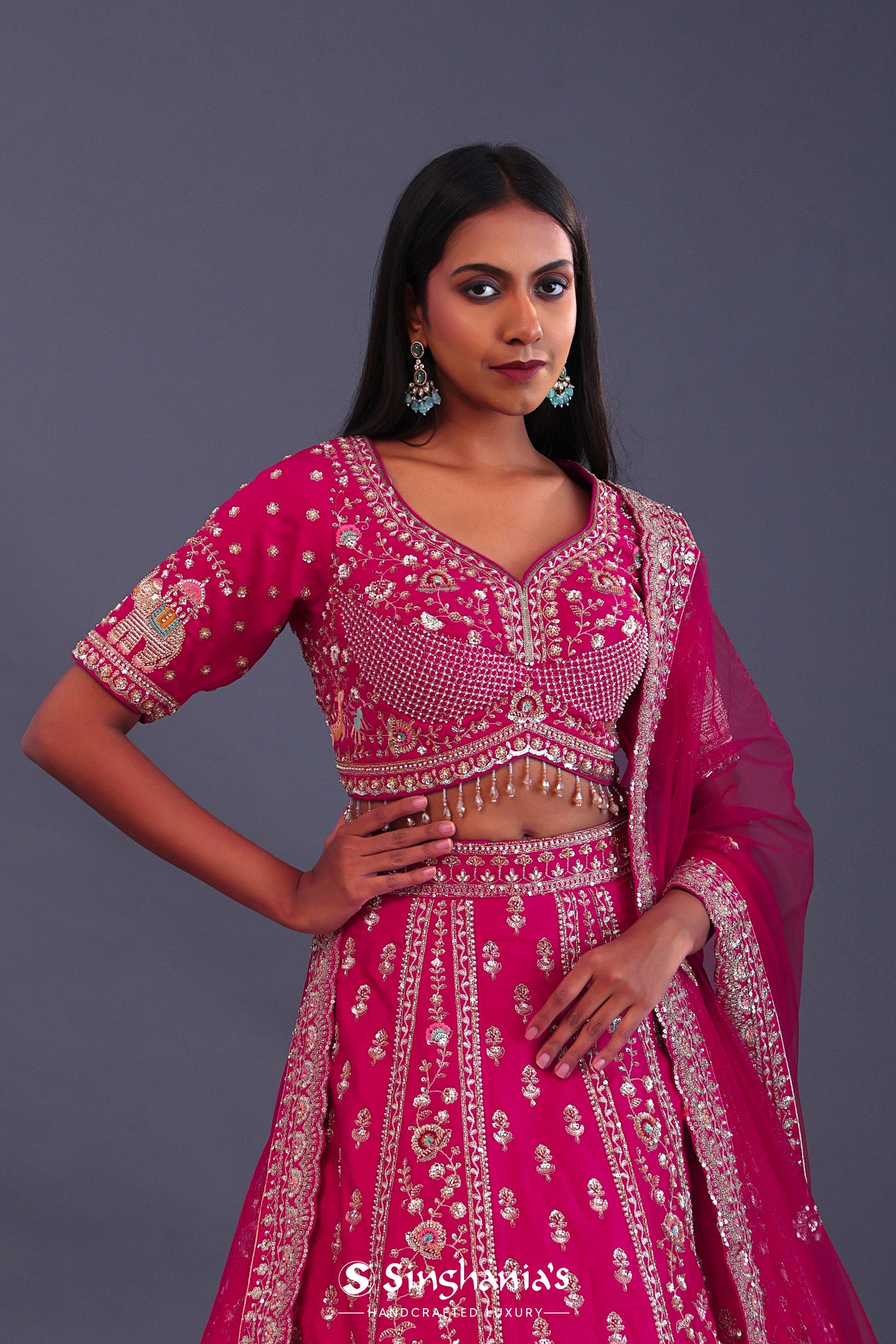 Royal Bright Pink Raw Silk Embroidered Lehenga Set