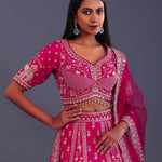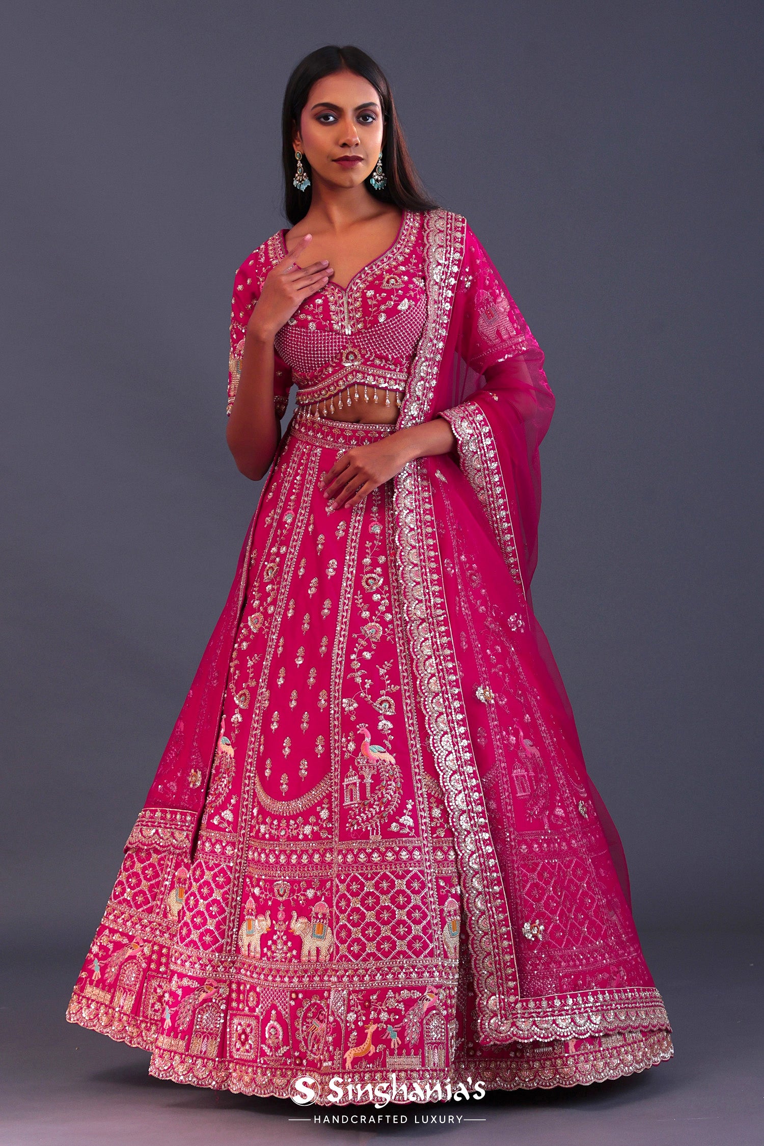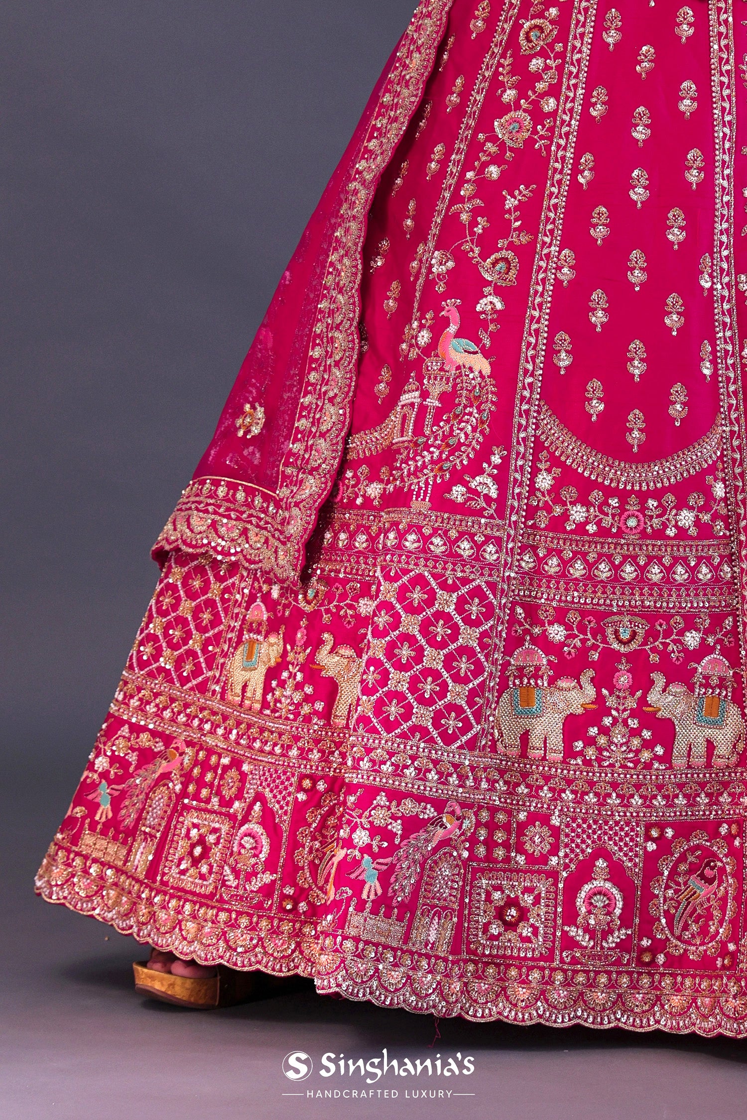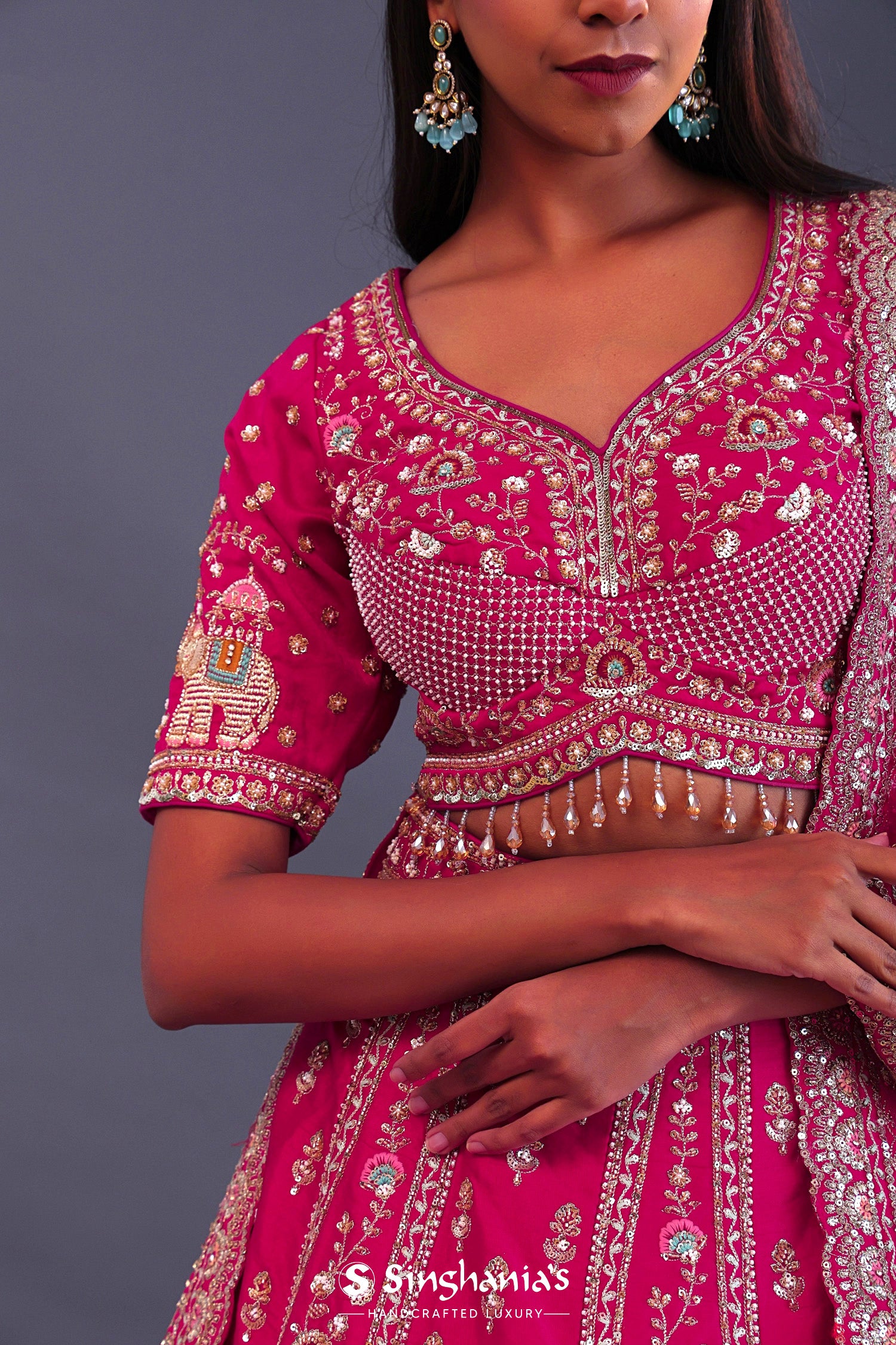 Royal Bright Pink Raw Silk Embroidered Lehenga Set