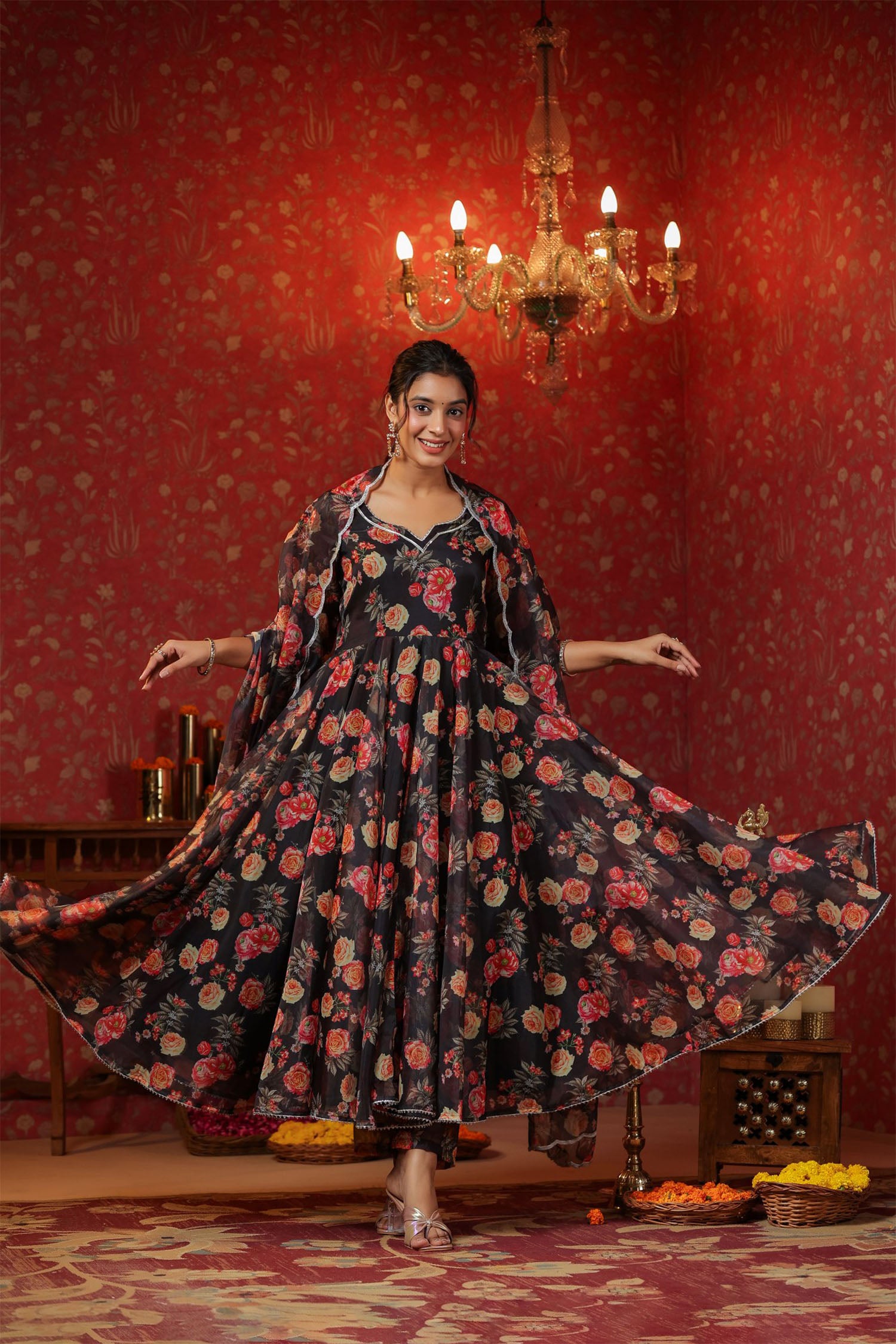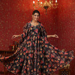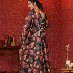Woodsmoke Black Organza Floral Printed Anarkali Set