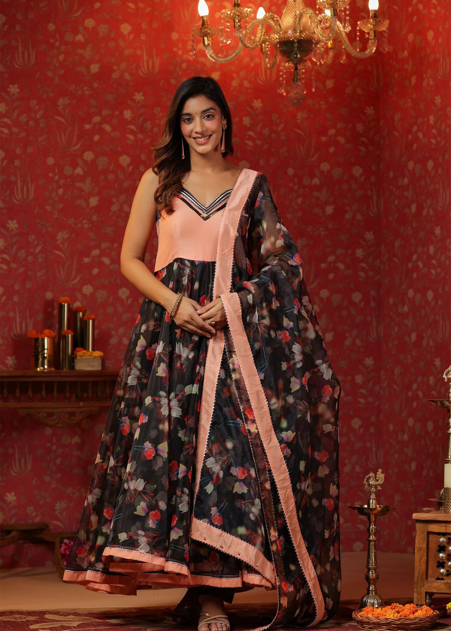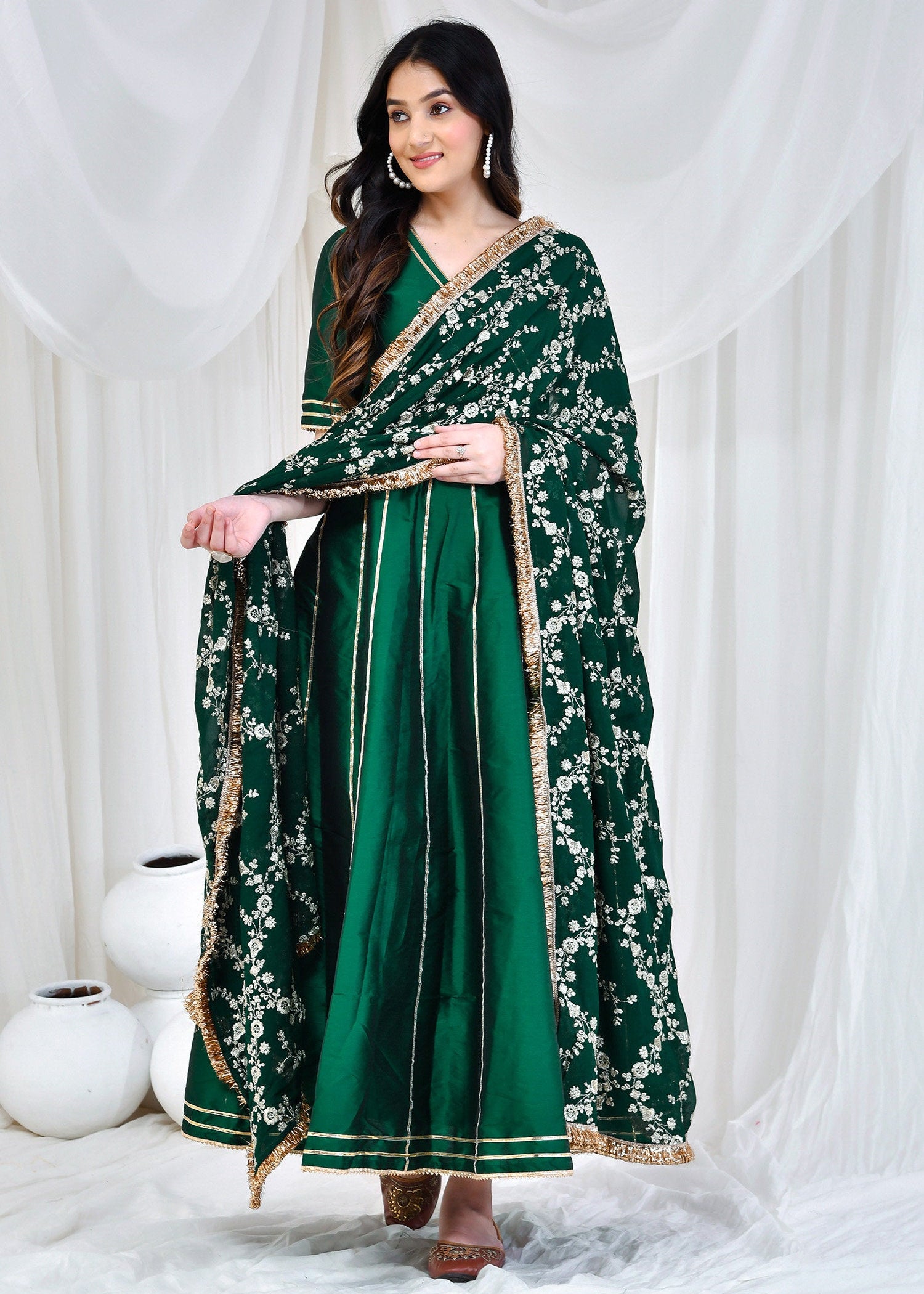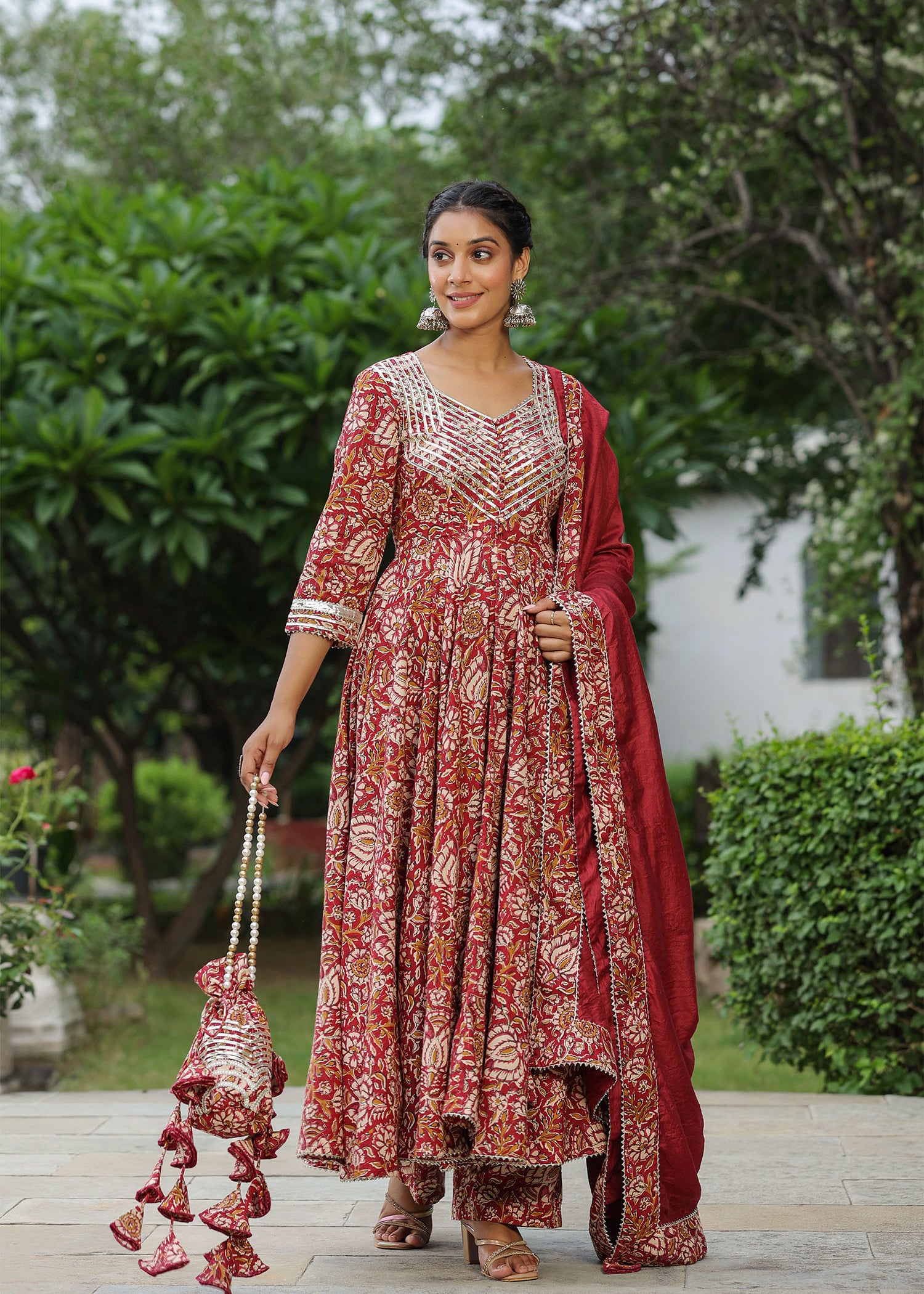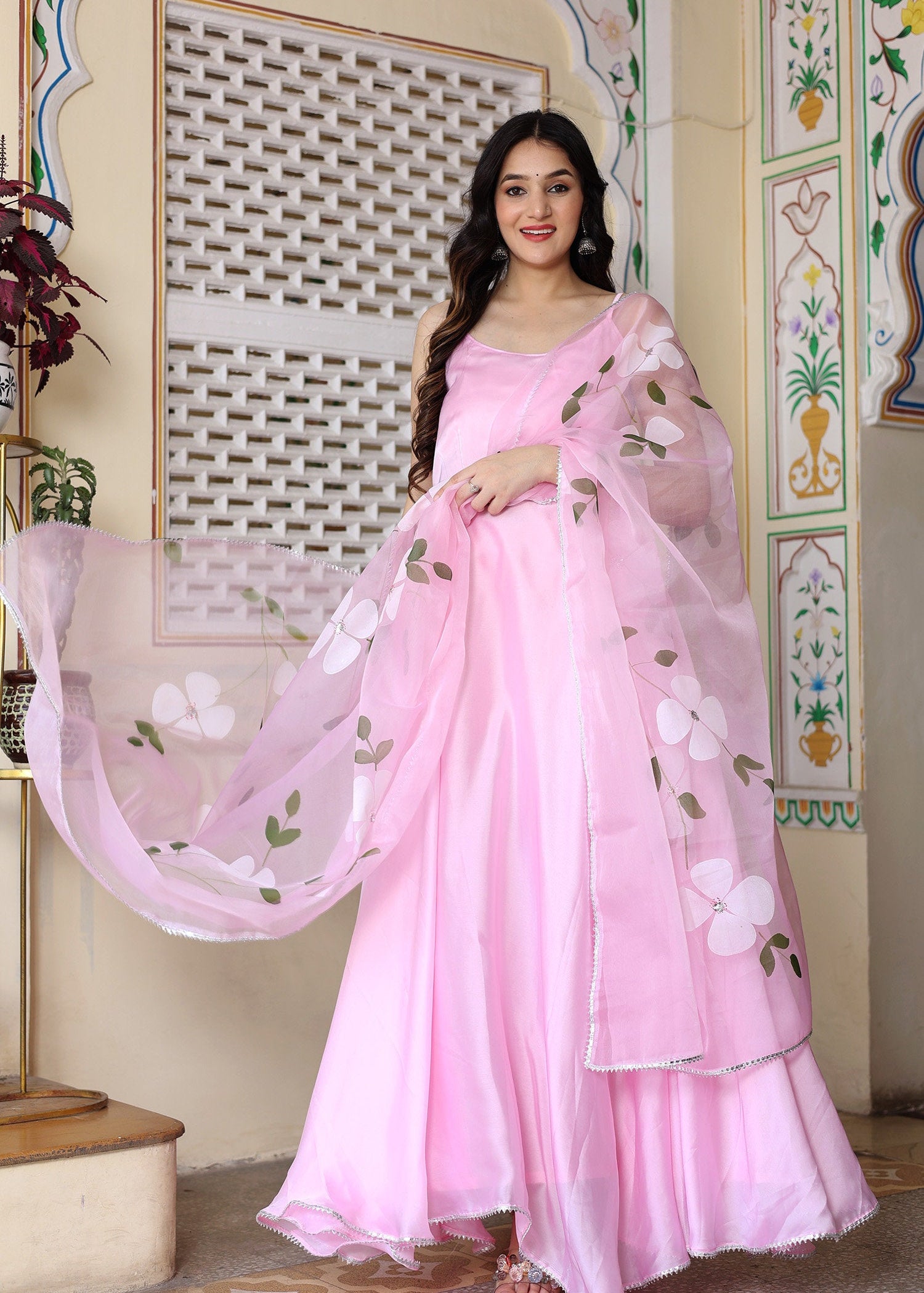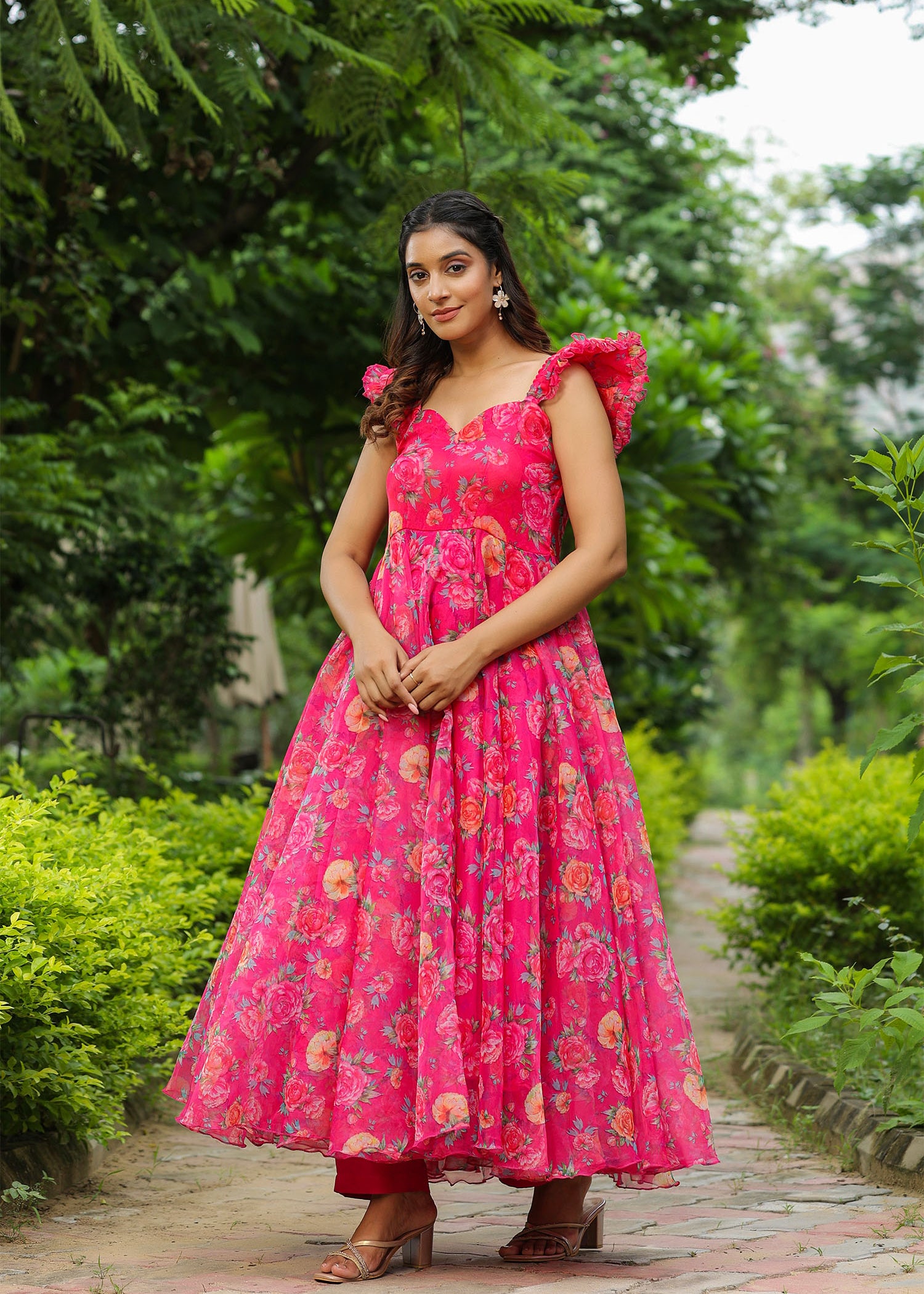 Bright Pink Chanderi Bandhani Printed Anarkali Set