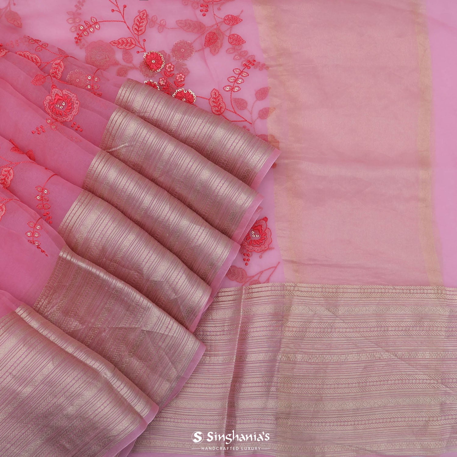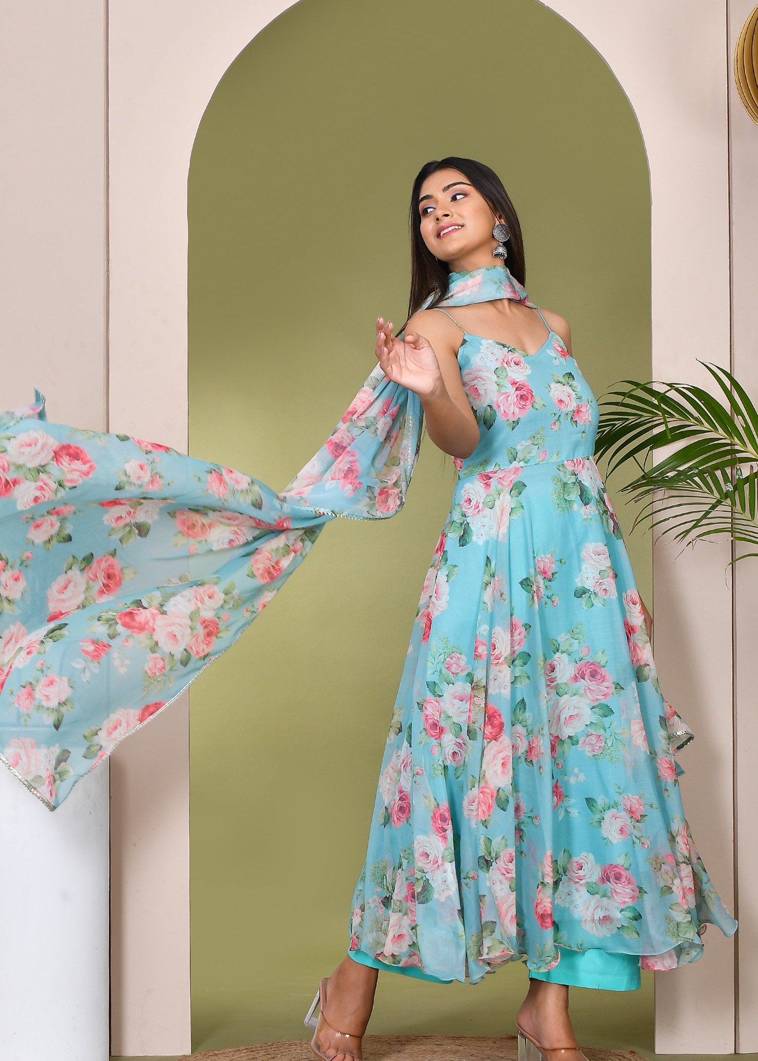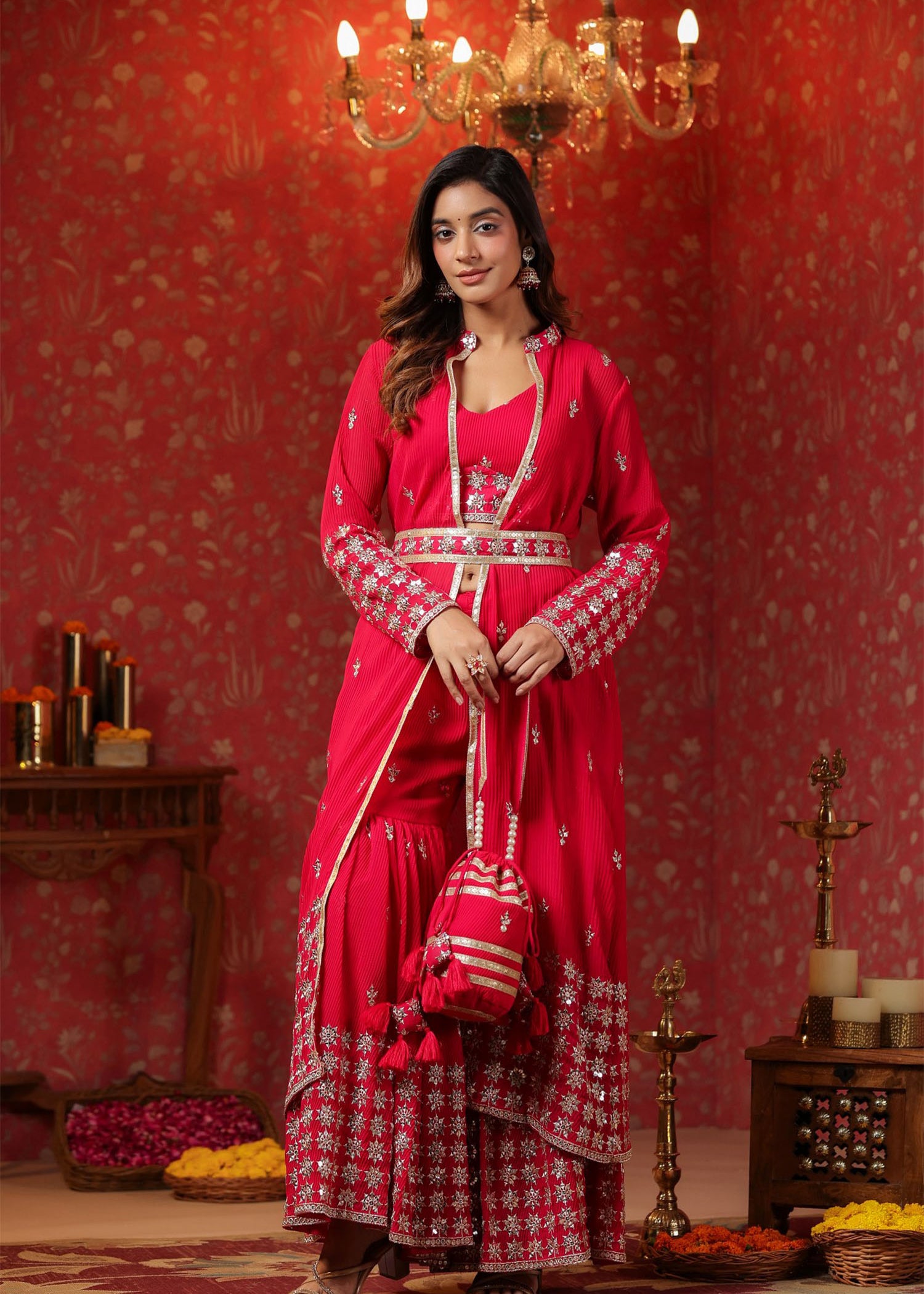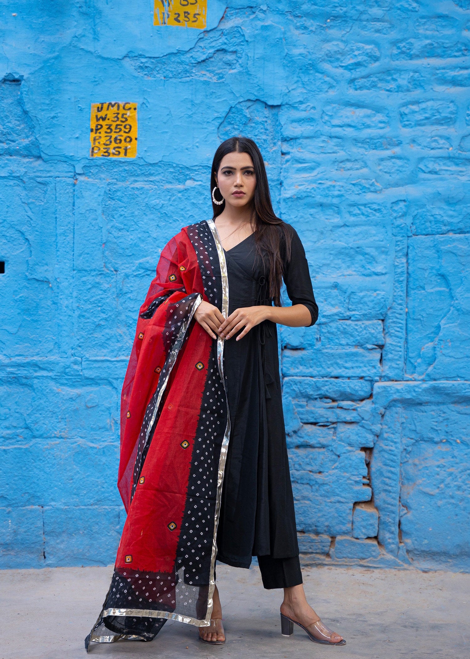 Bright Pink Chanderi Bandhani Printed Anarkali Set