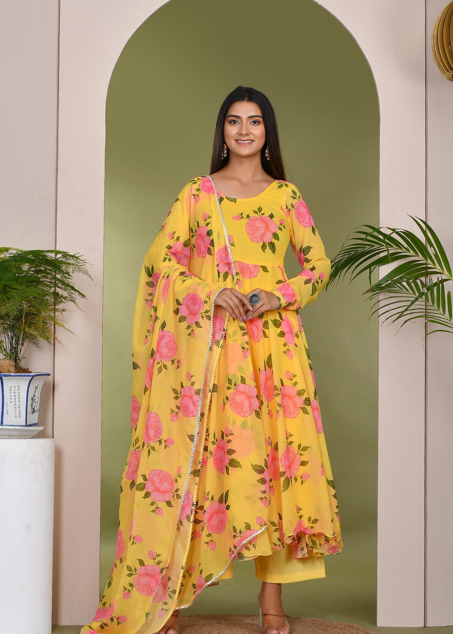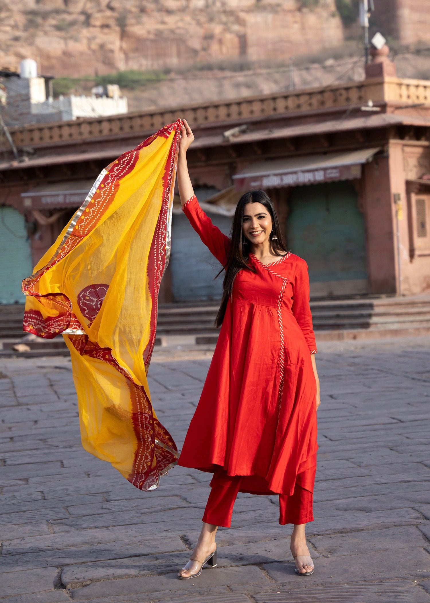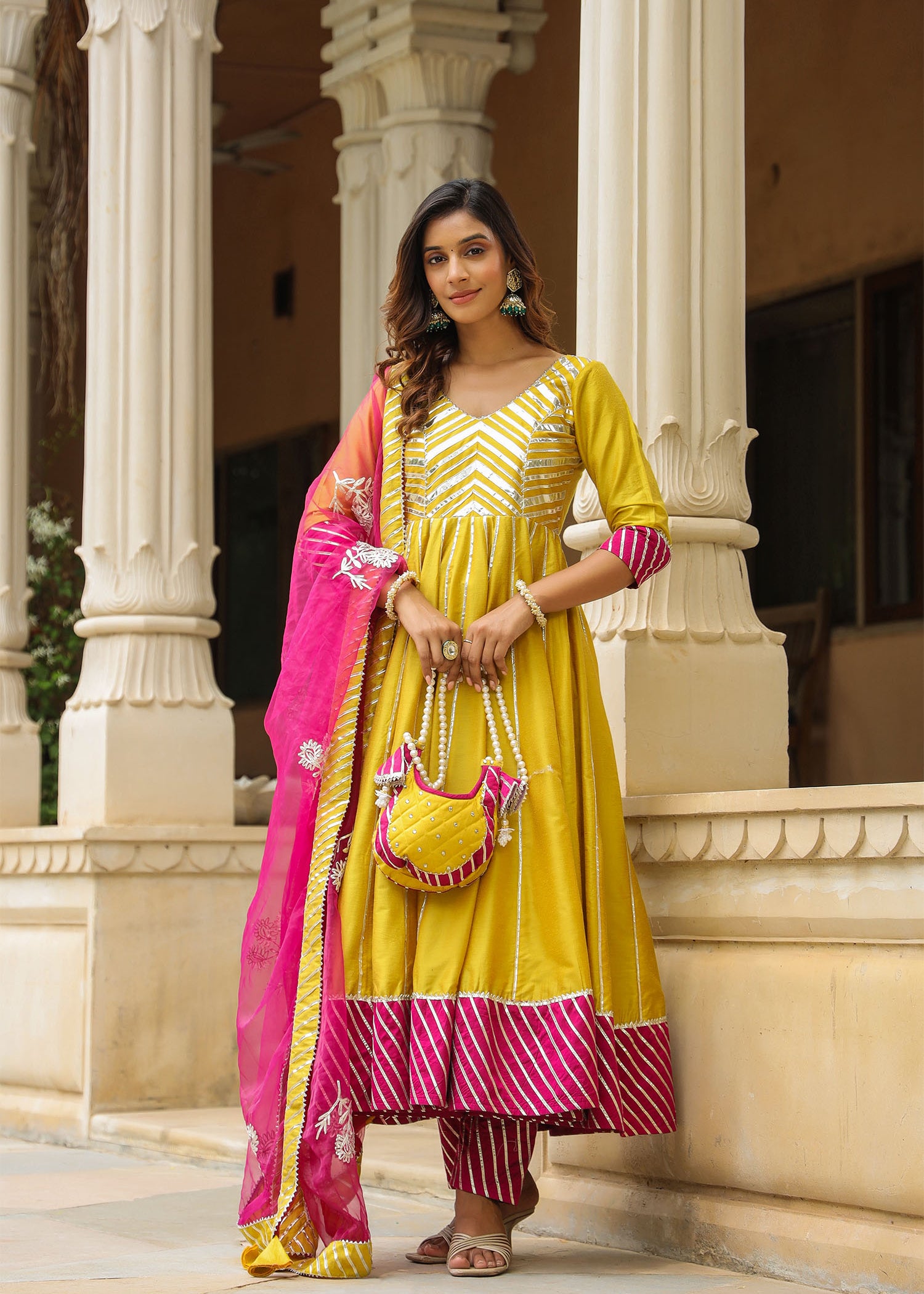 Old Golden Yellow Cotton Silk Gotta Work Anarkali Set