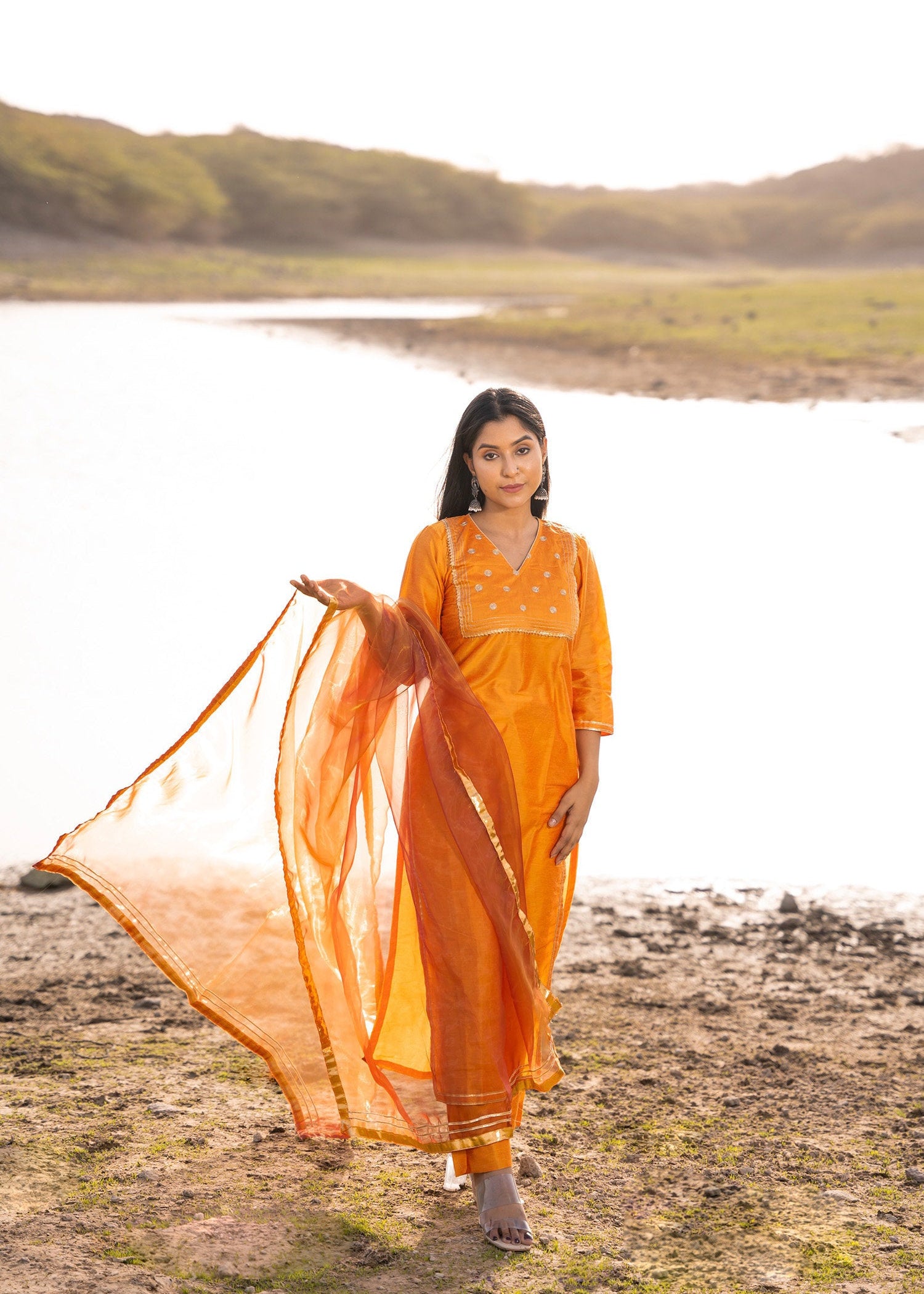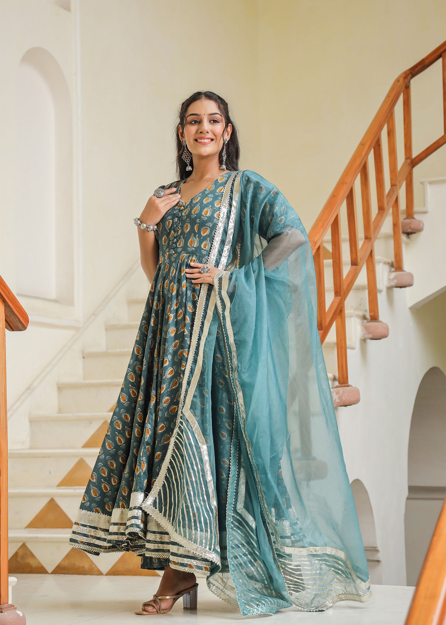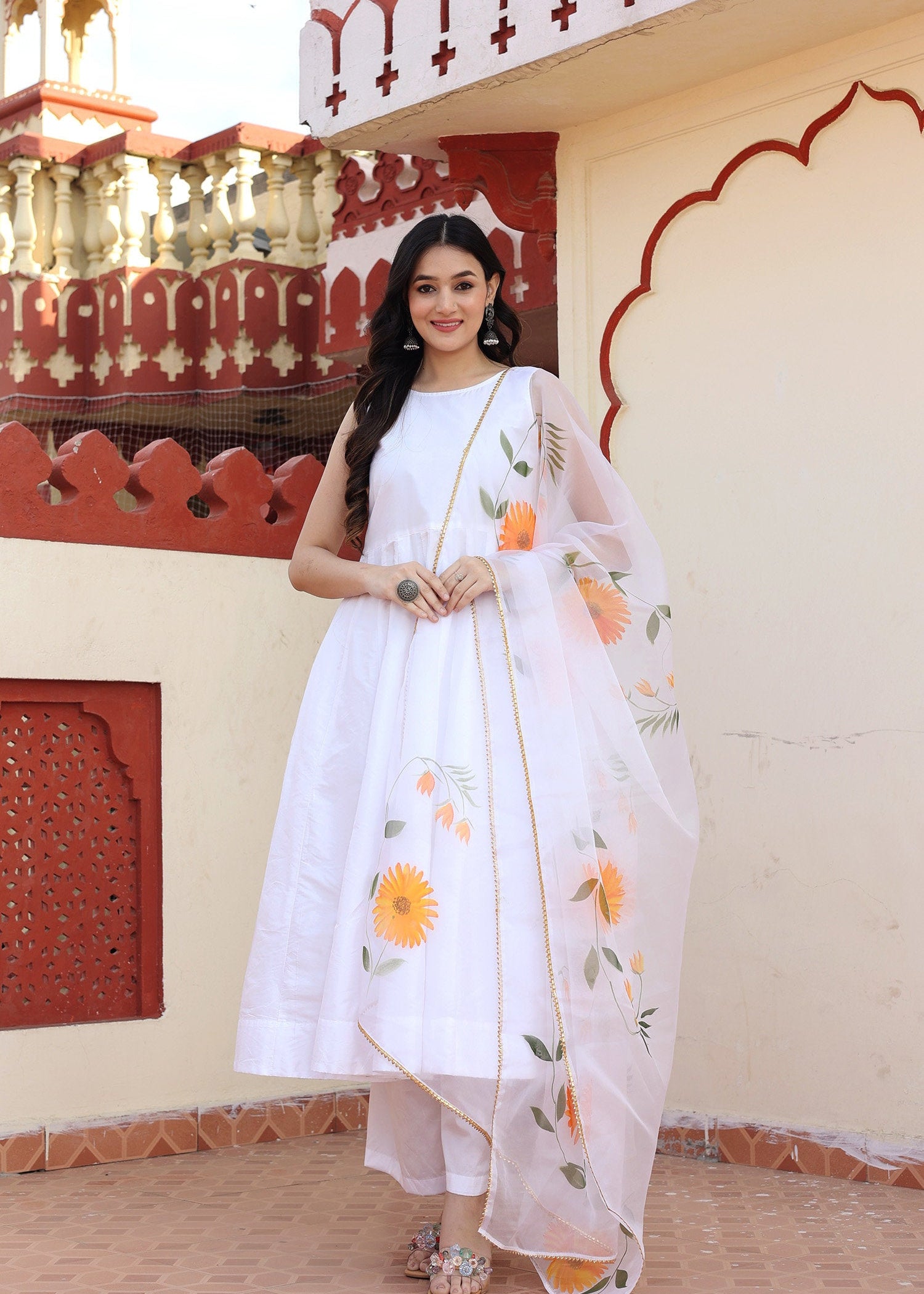 Old Golden Yellow Cotton Silk Gotta Work Anarkali Set