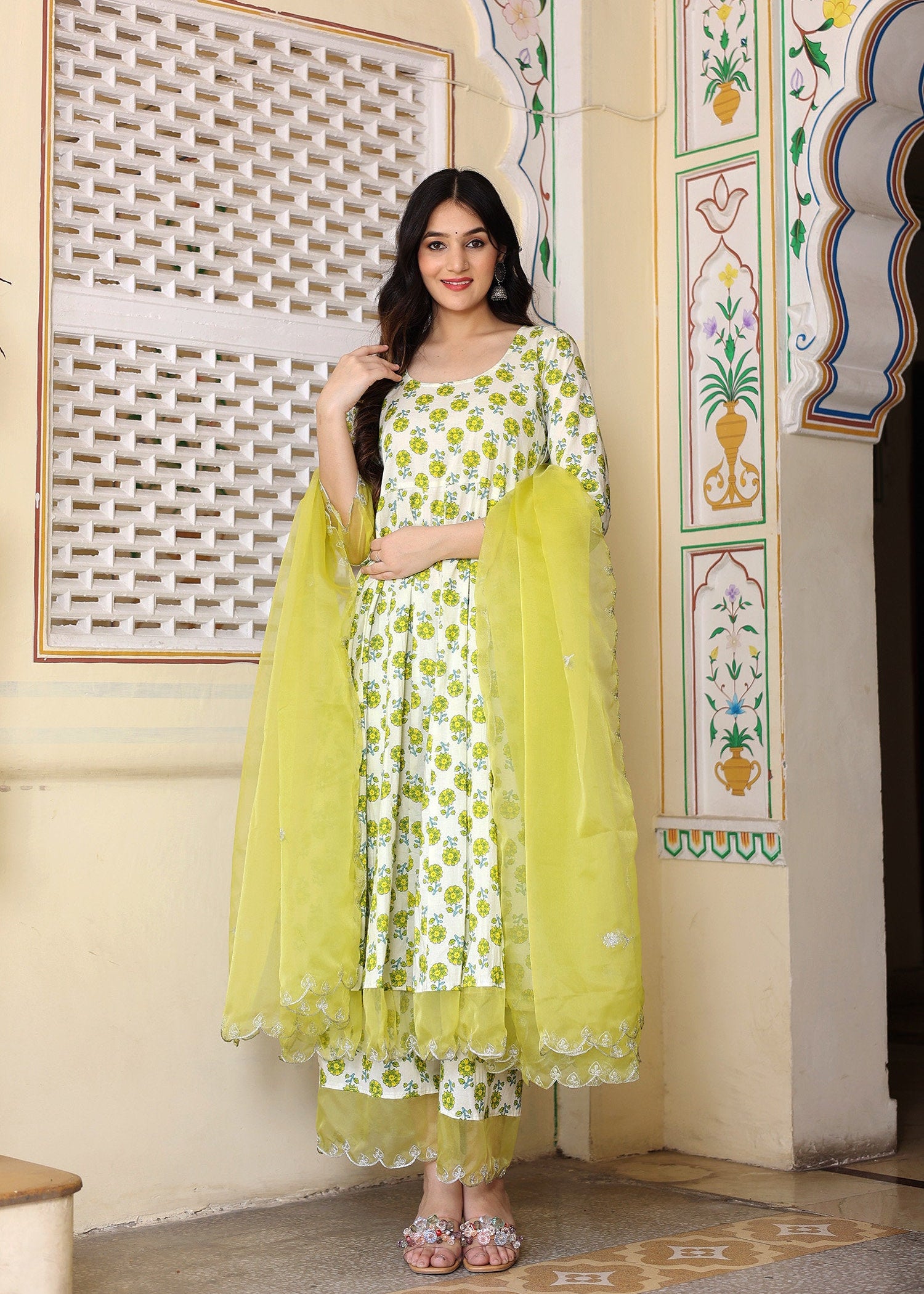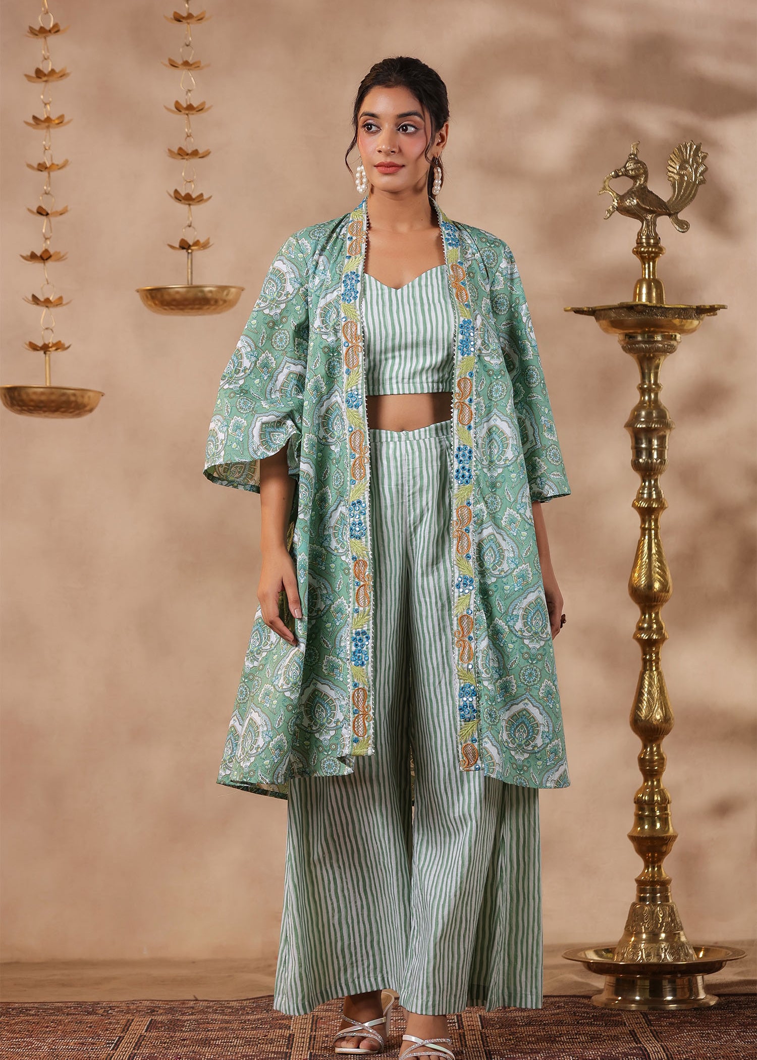 Light Green Cotton Printed Indo-Western Co-Ord Set