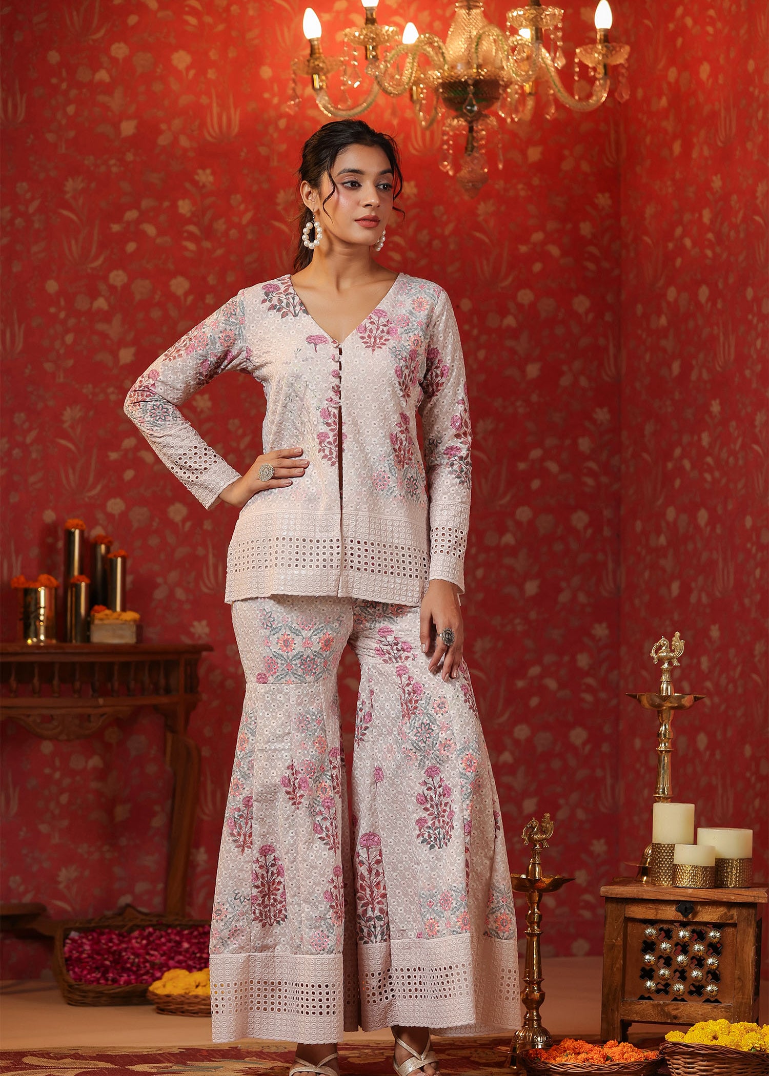 Pinkish Cream Cotton Floral Printed Co-Ord Set