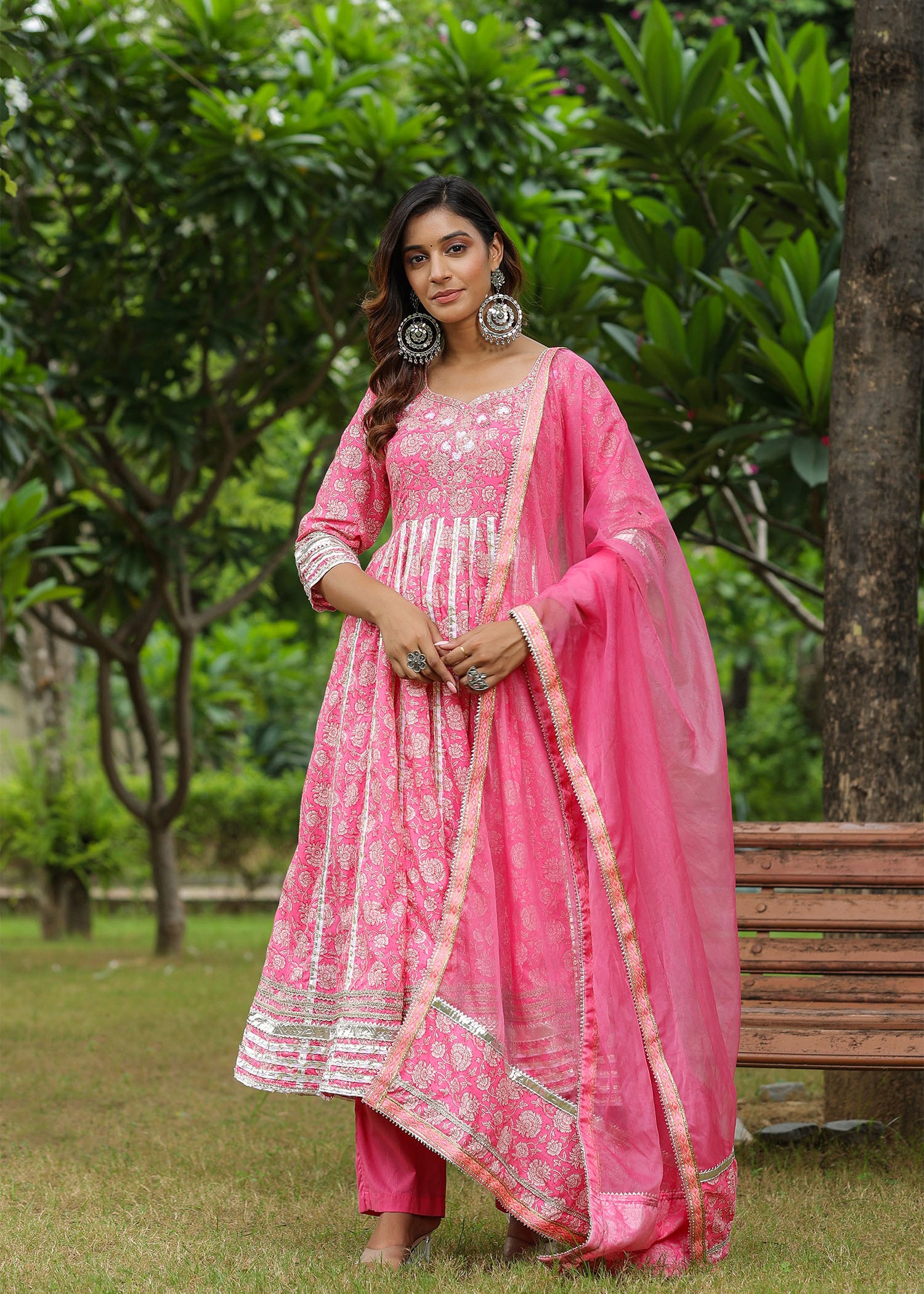 Persian Pink Cotton Bandhani Printed Anarkali Set
