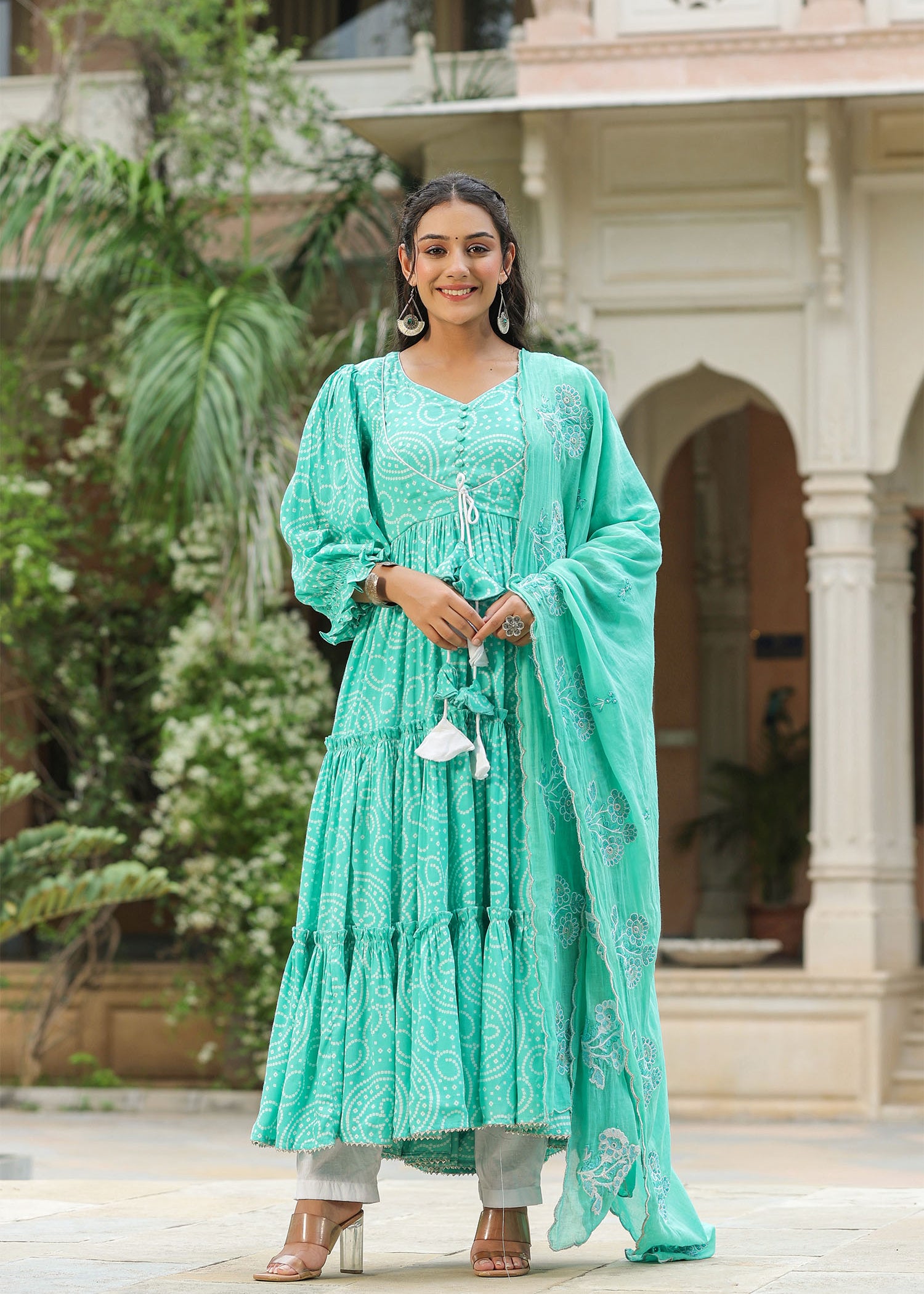 Mint Blue Silk Bandhani Printed Anarkali Set