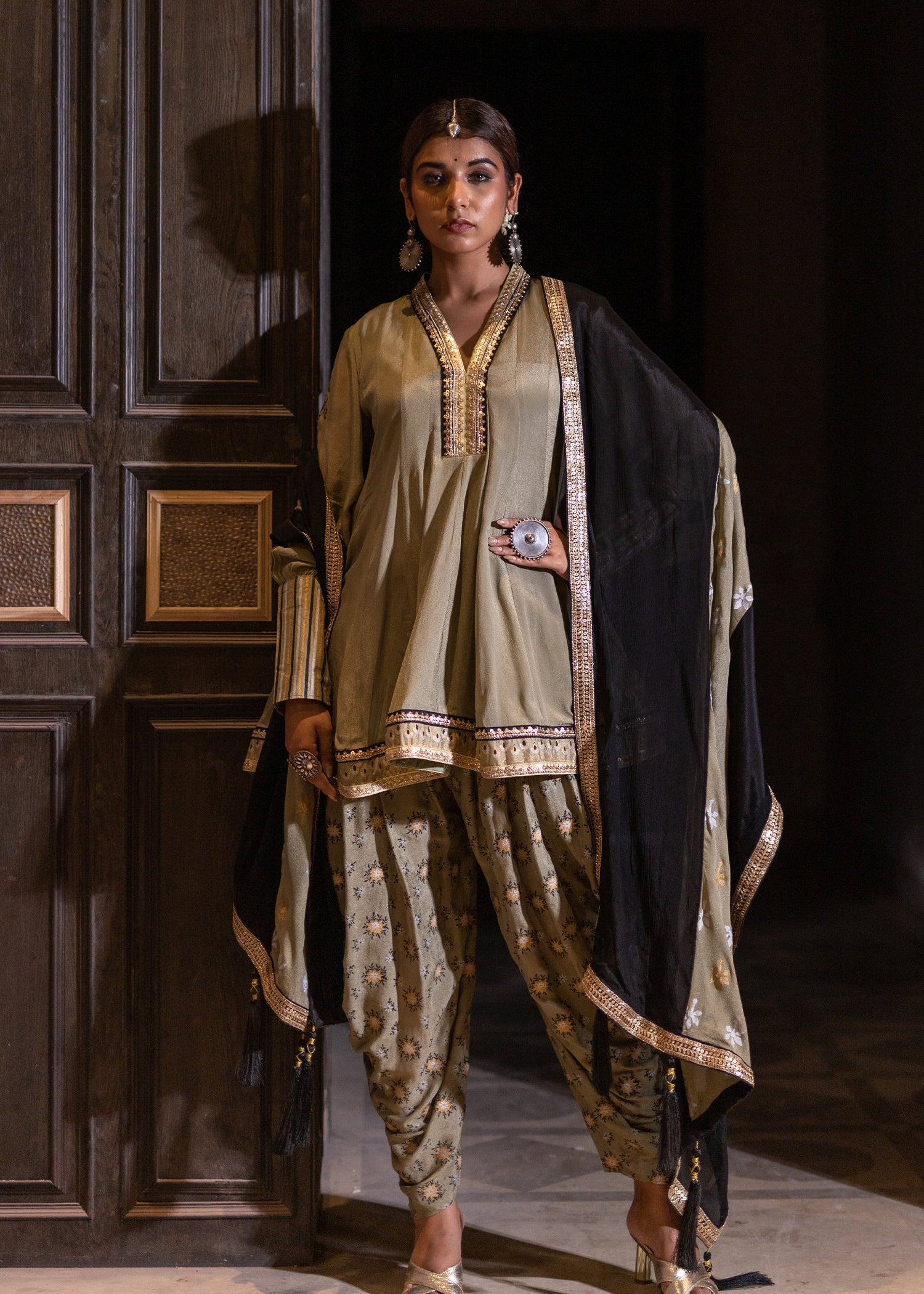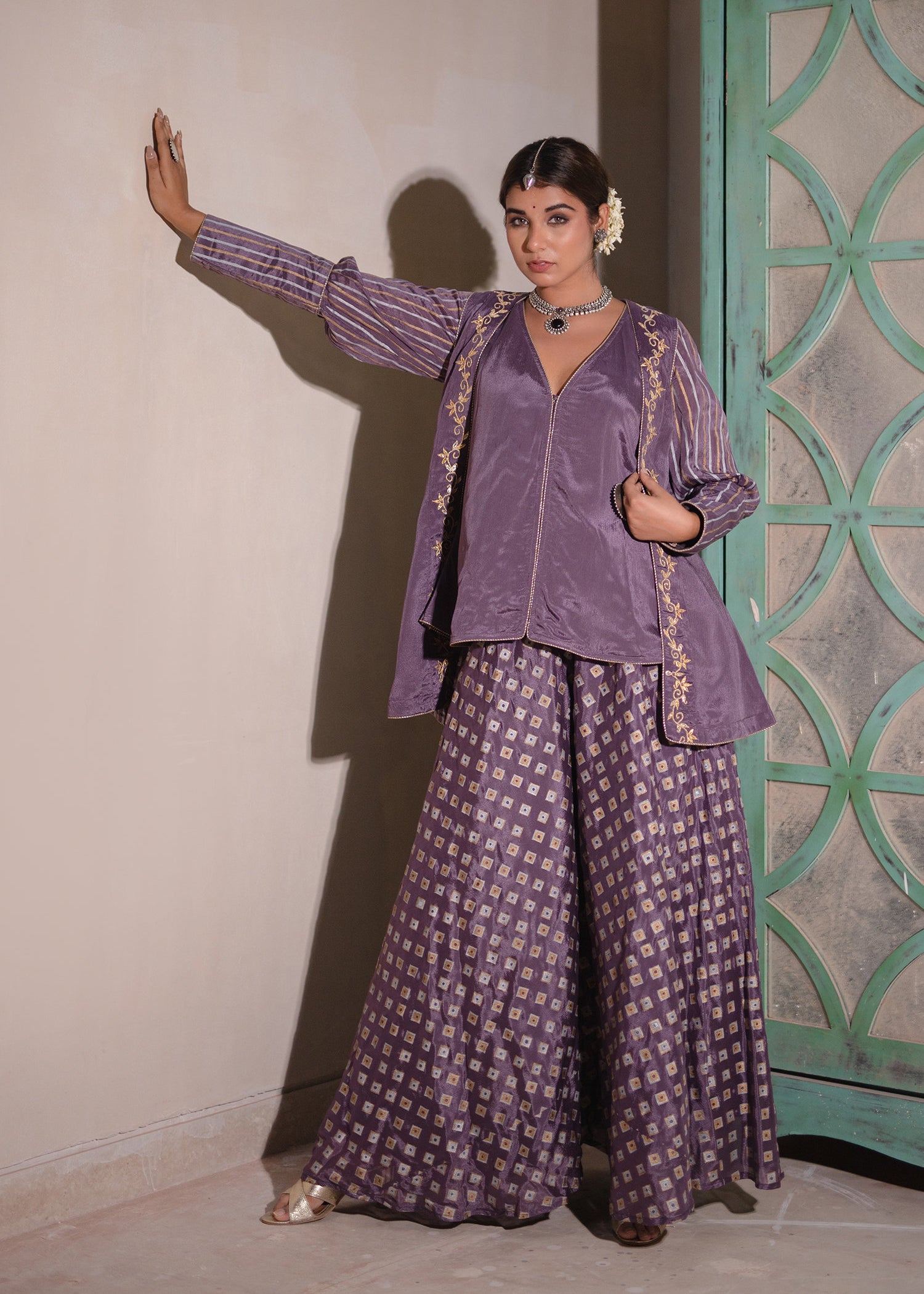 Sea Green And Multicolour Chinon Suit And Palazzo Set