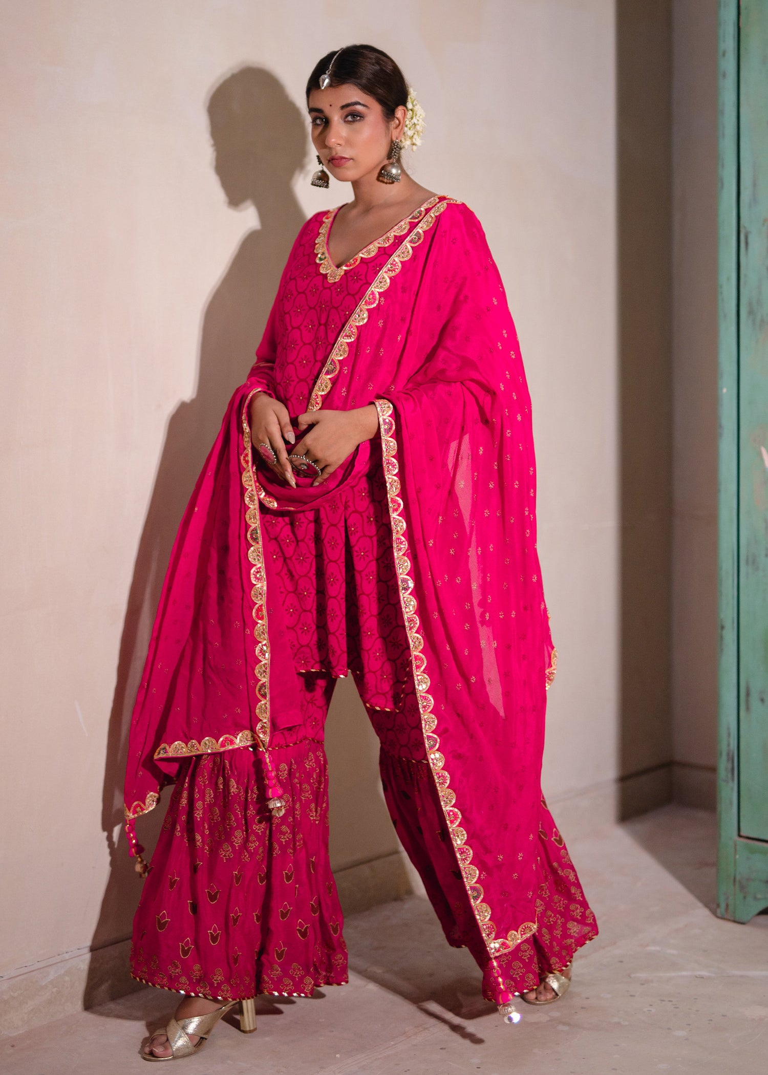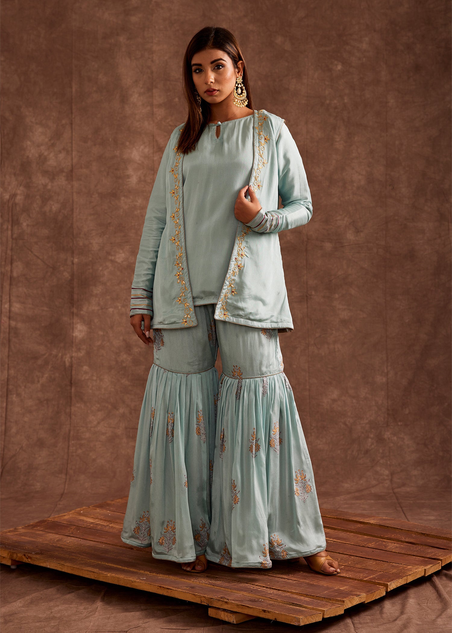 Pastel Blue Jacketed Pure Chinon Gharara Set