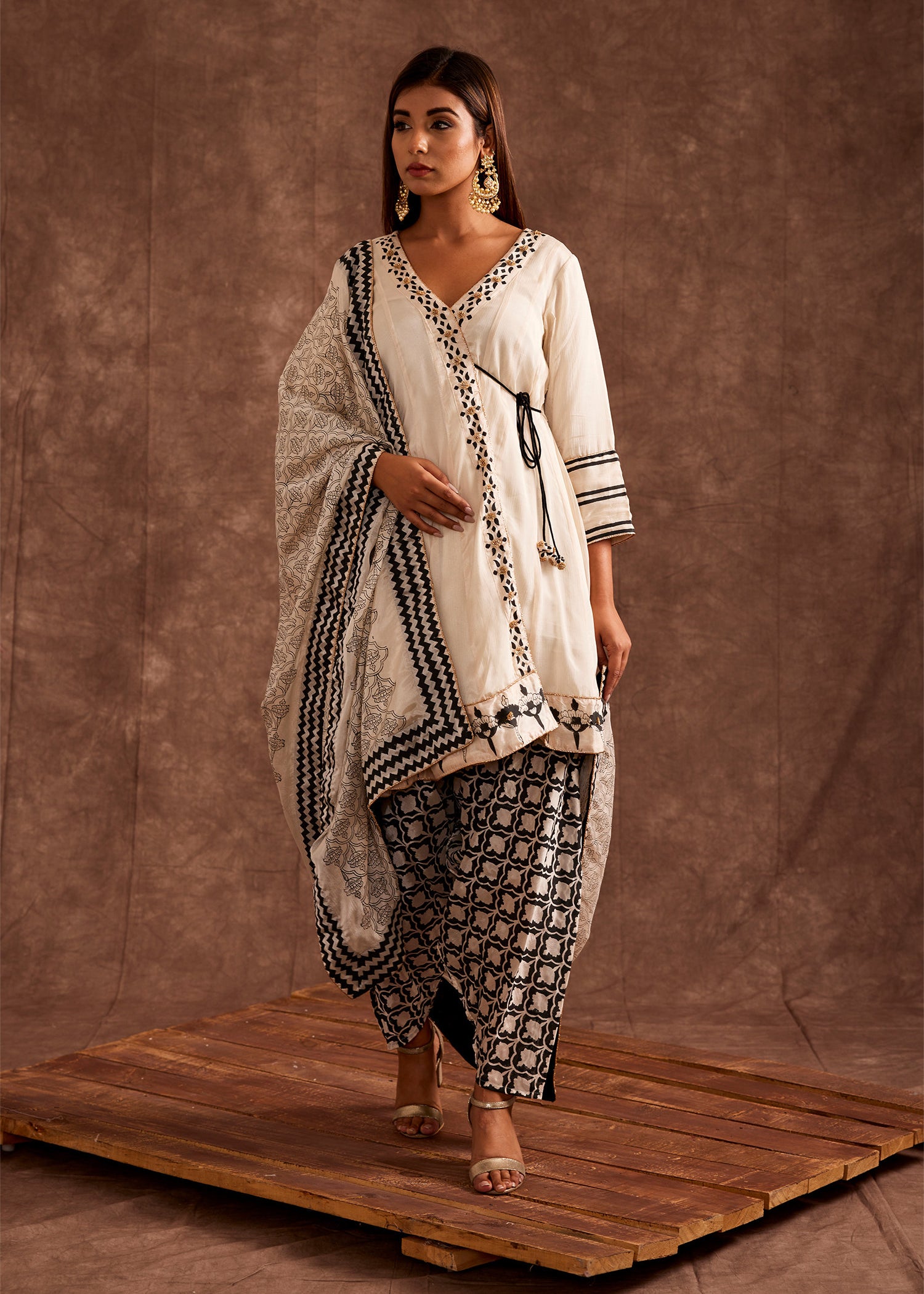 Beige Gota Patti Chinon Saree With Black Cotton Silk Blouse