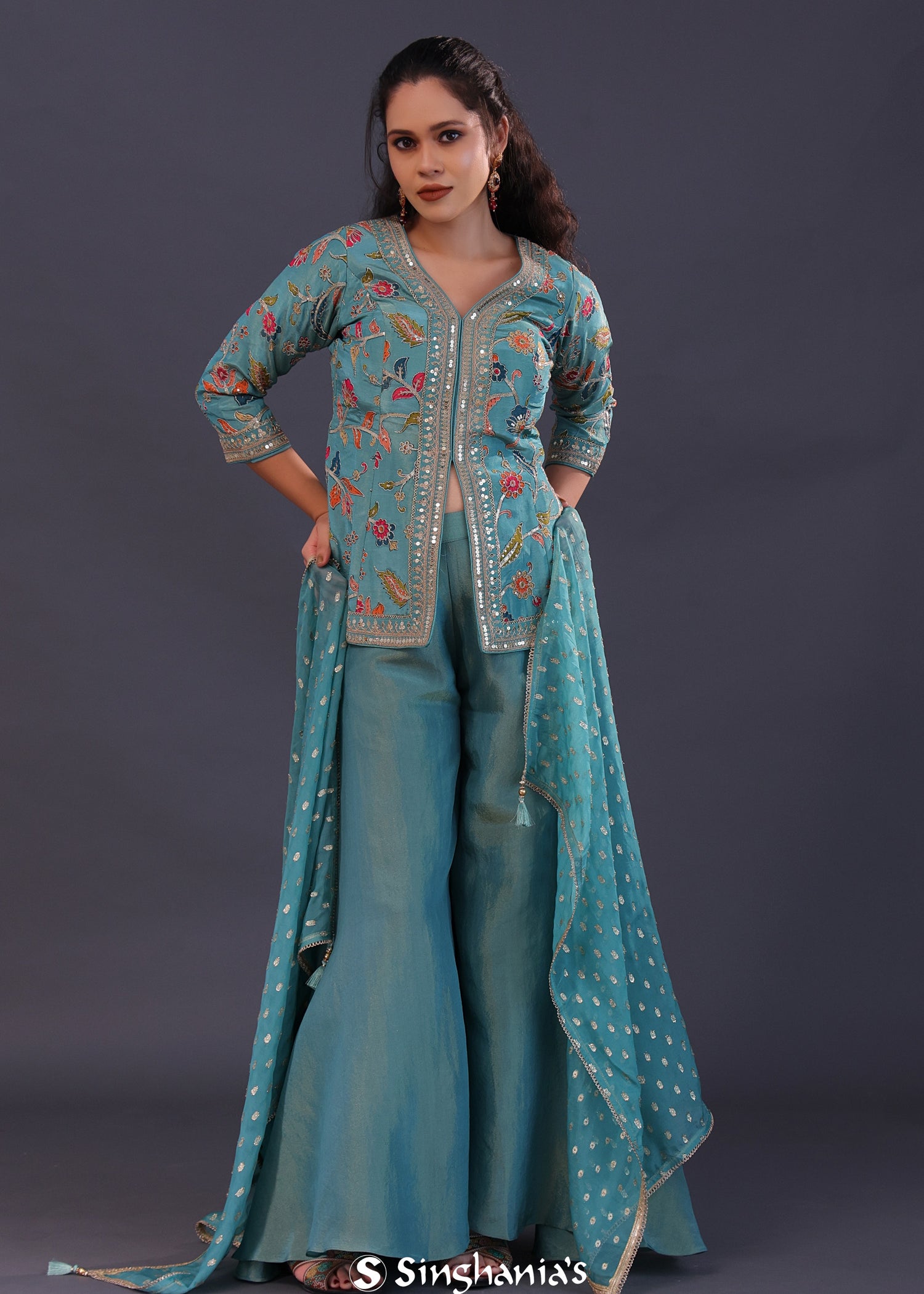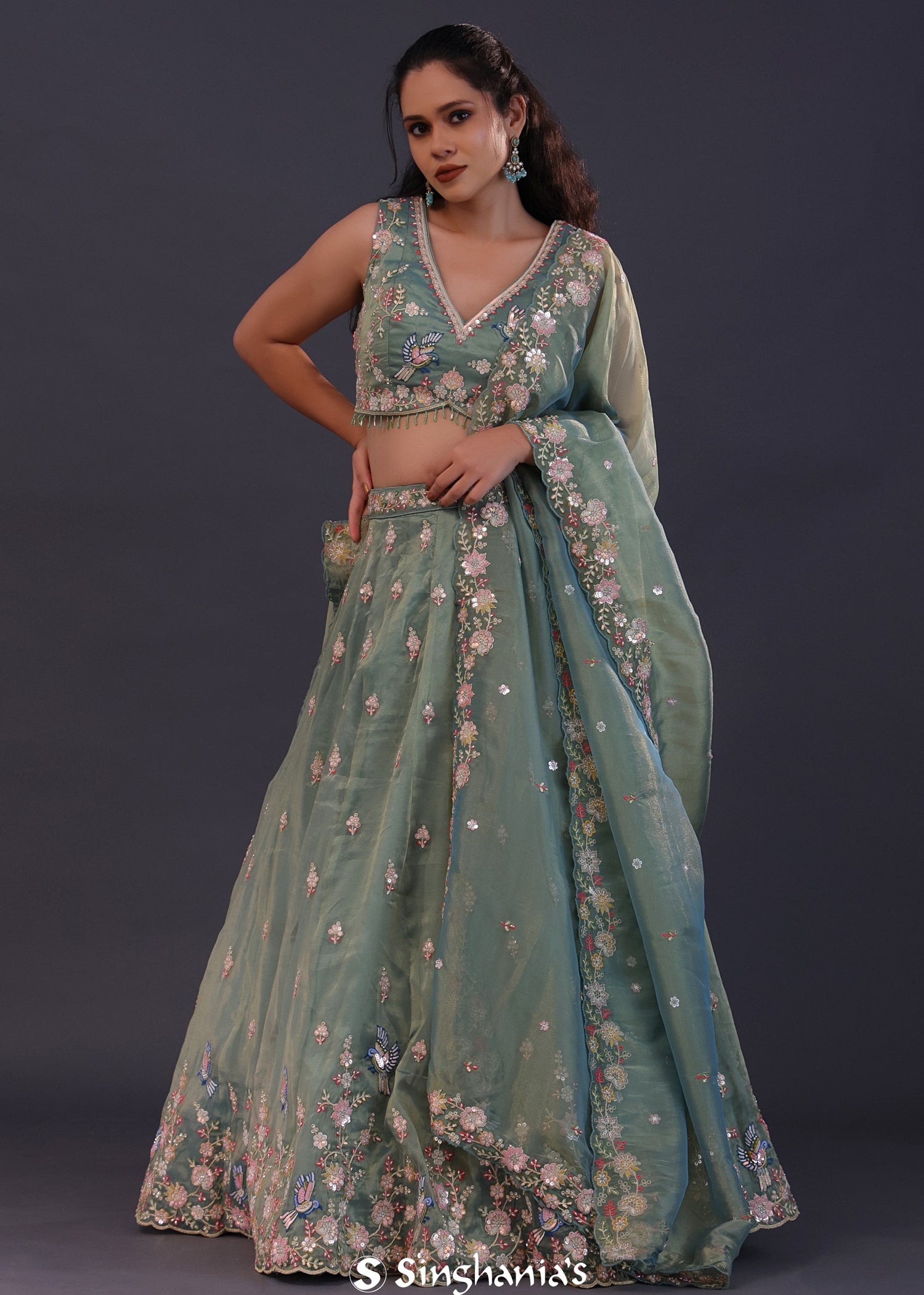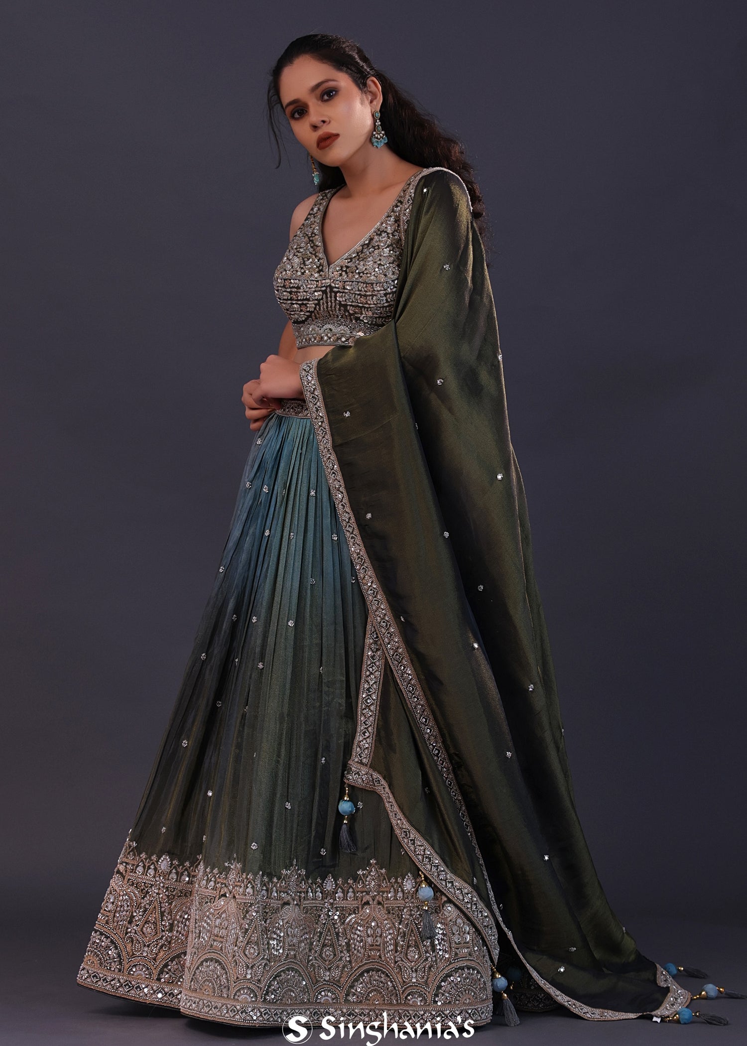 Ombre Green Shimmer Tissue Embroidered Lehenga Set