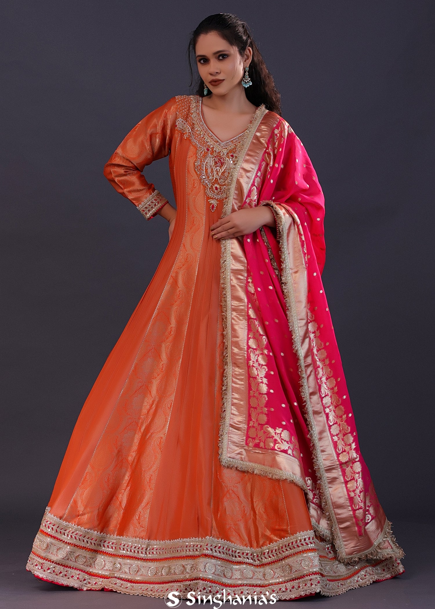 Bright Orange Tissue Organza Embroidered Lehenga Set