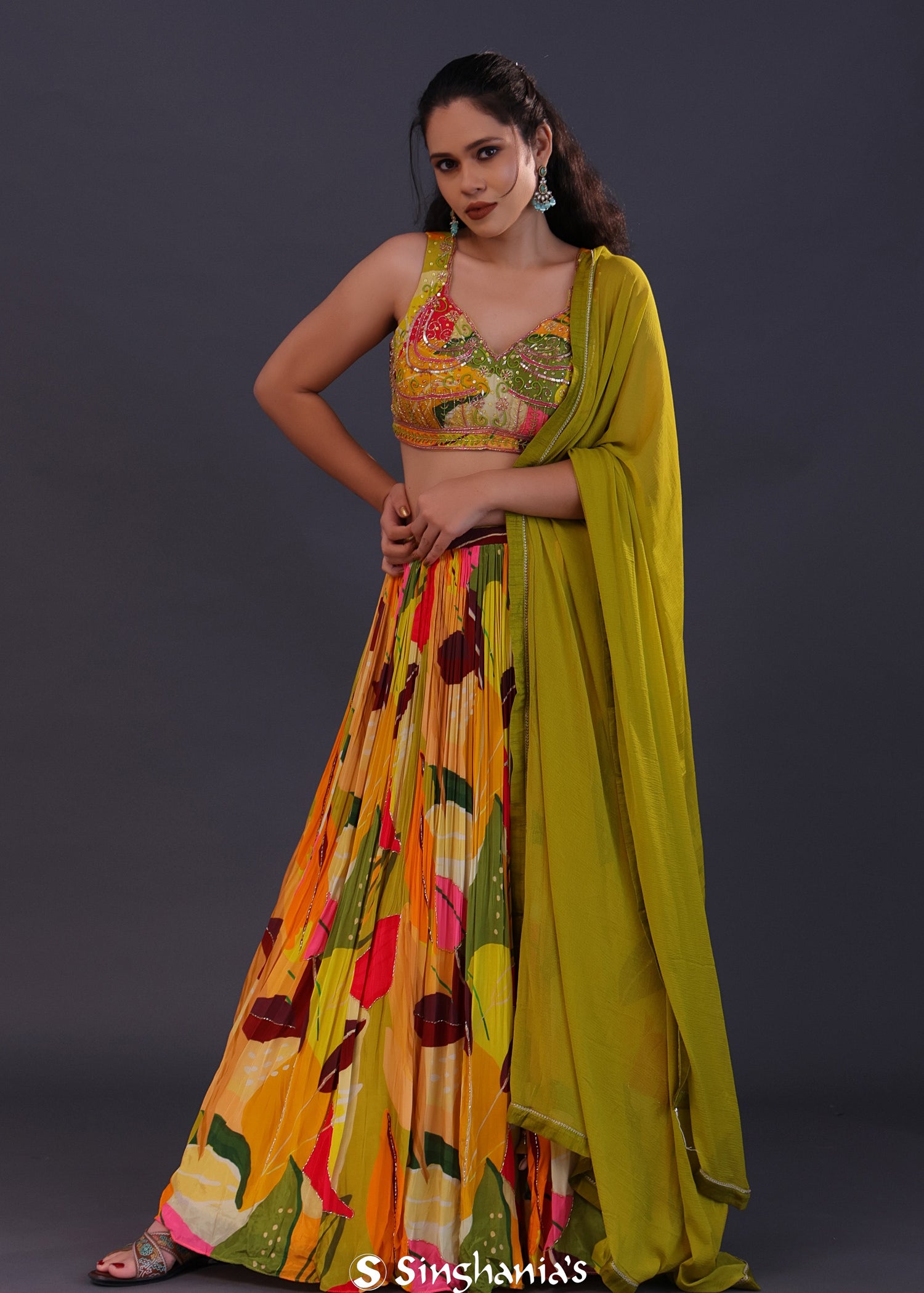 Mehendi Green Tissue Banarasi Embroidered Lehenga Set