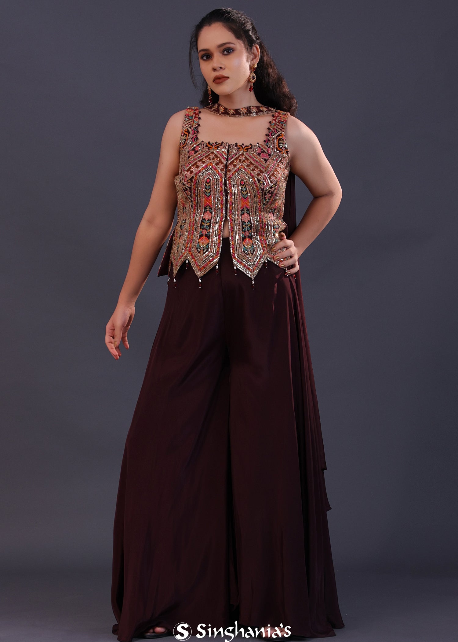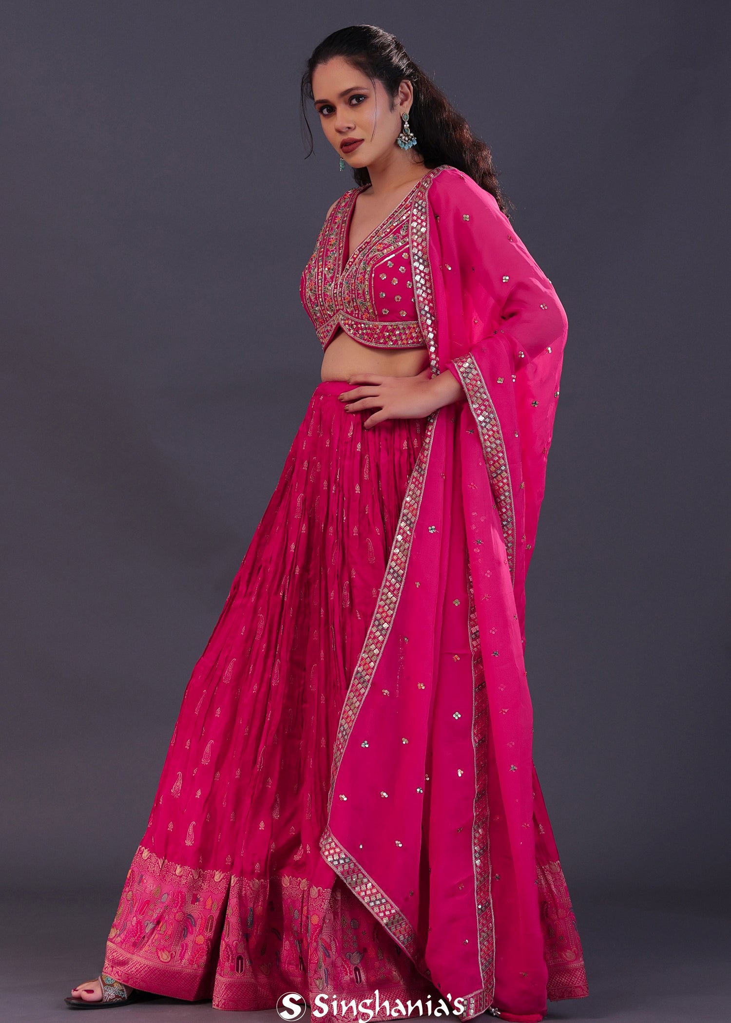 Dark Pink Banarsi Silk Embroidered Lehenga Set