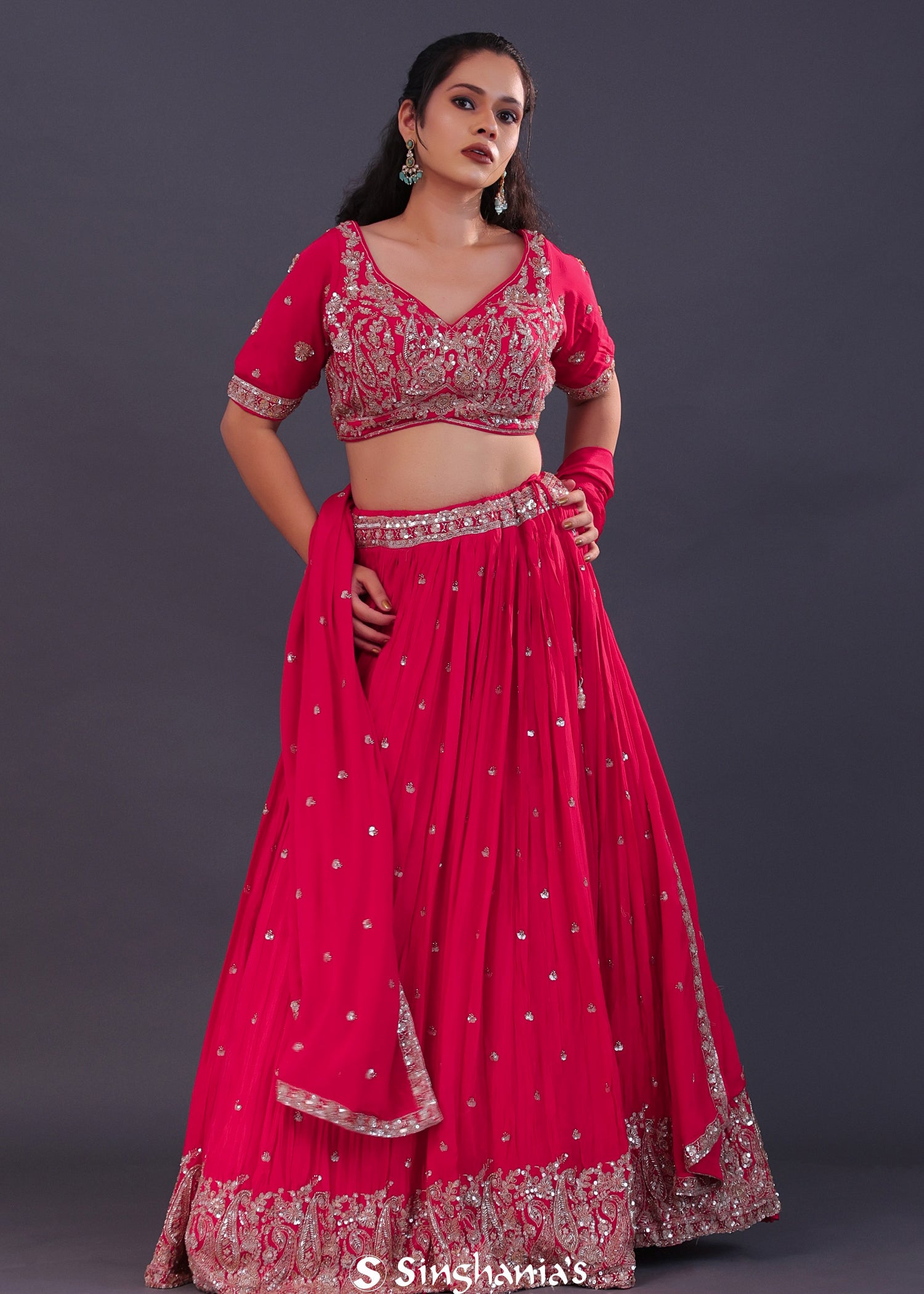 Fuchsia Pink Chinon Georgette Embroidered Lehenga Set