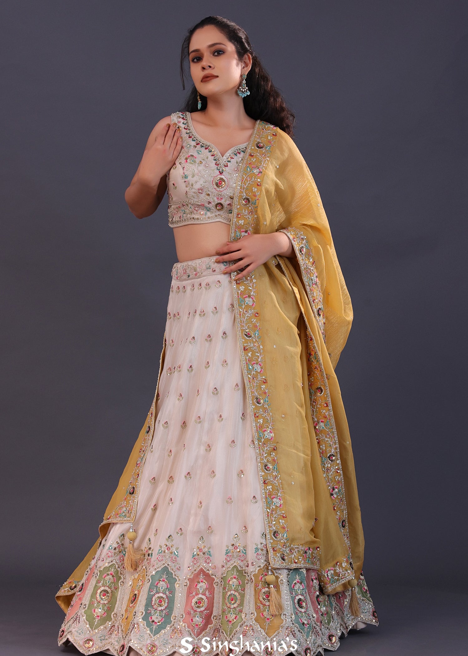 Pastel White Chinon Georgette Embroidered Lehenga Set