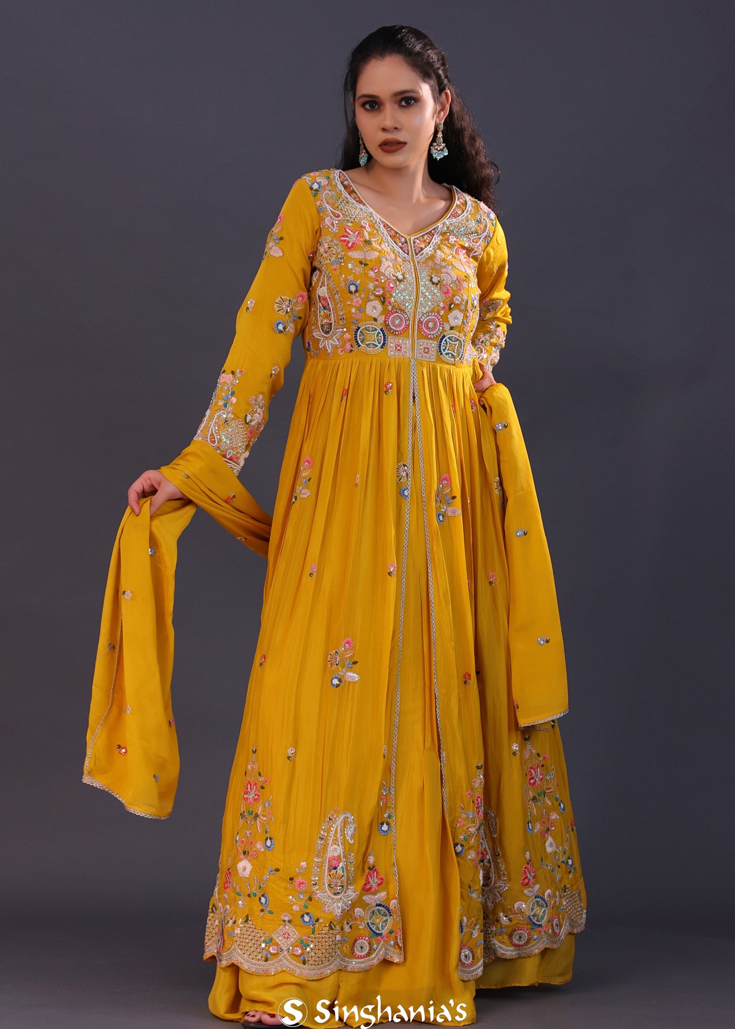 Mustard Yellow Chinon Georgette Embroidered Anarkali Set