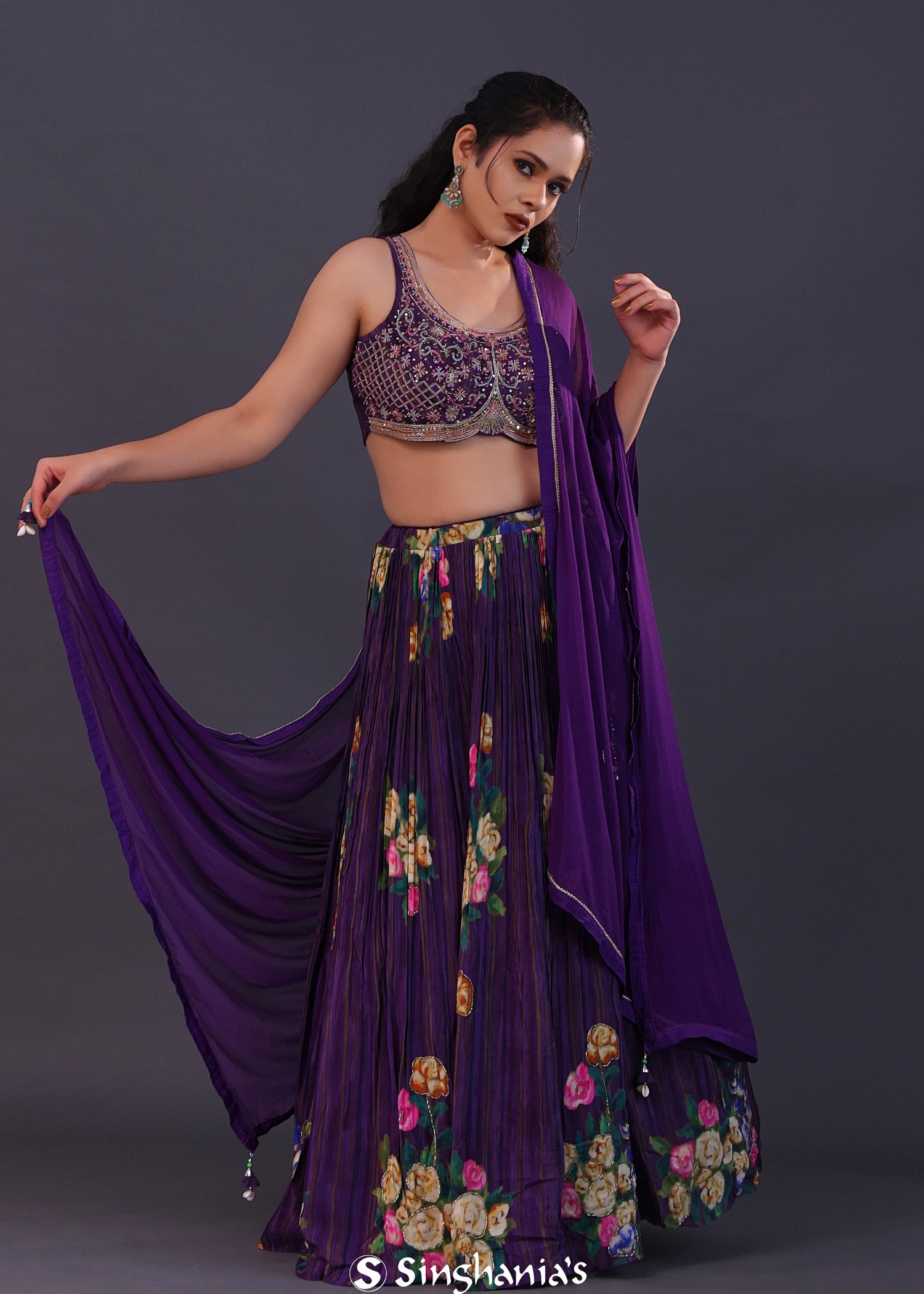 Dusty Pink Chinon Georgette Embroidered Lehenga Set