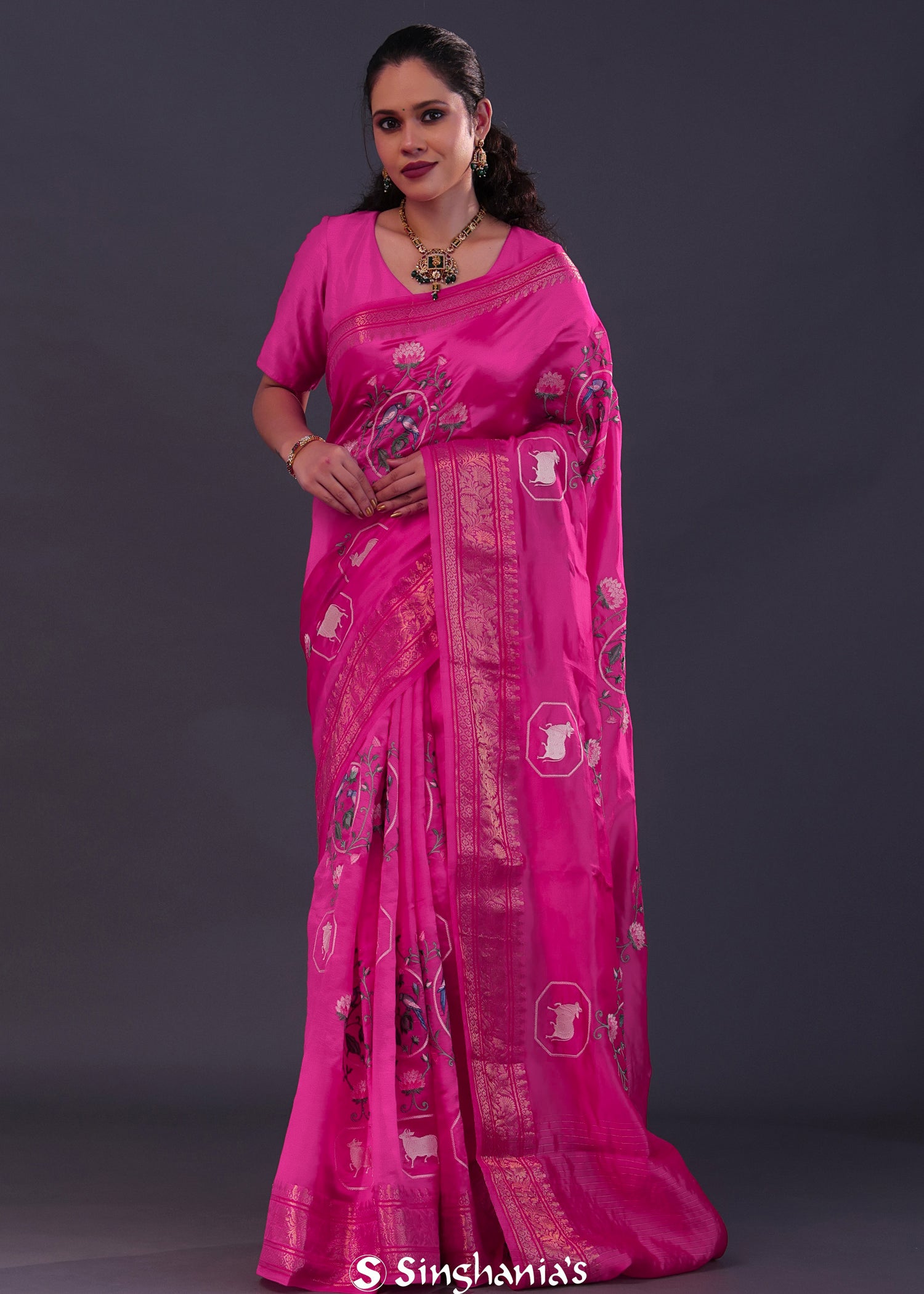 Hopbush Pink Paithani Saree With Floral Butti'S