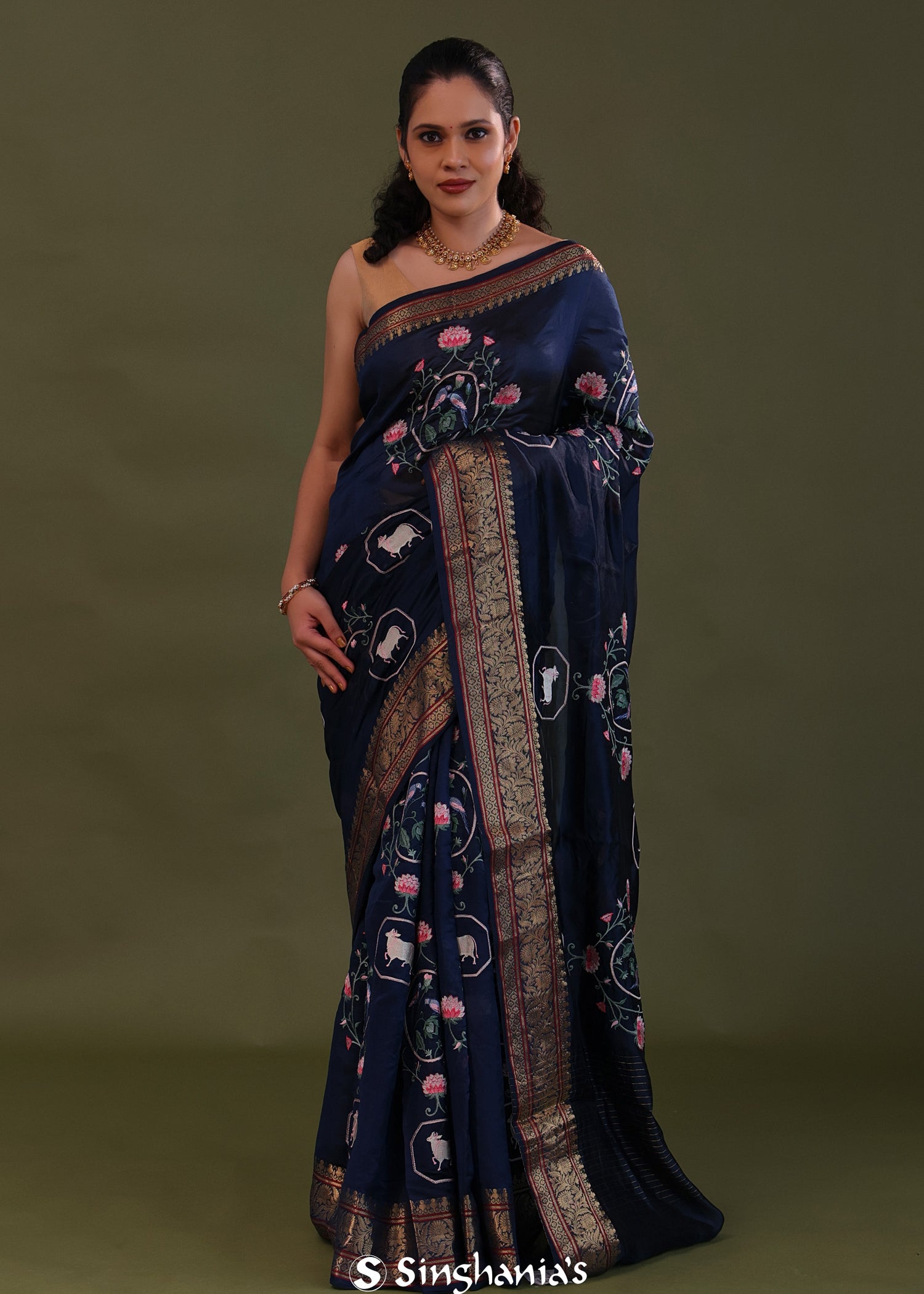 Cobalt Blue Paithani Saree With Floral Butti'S